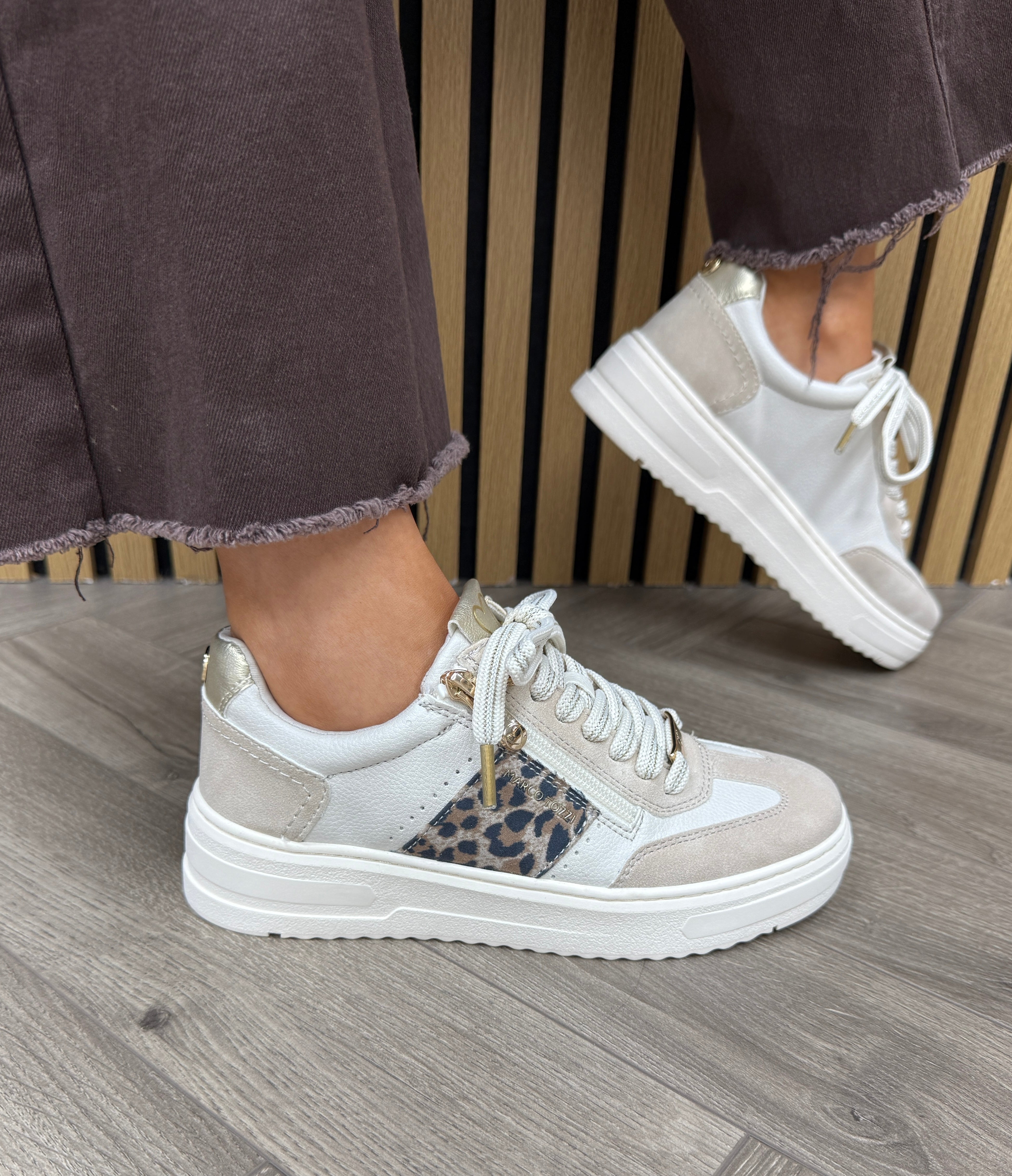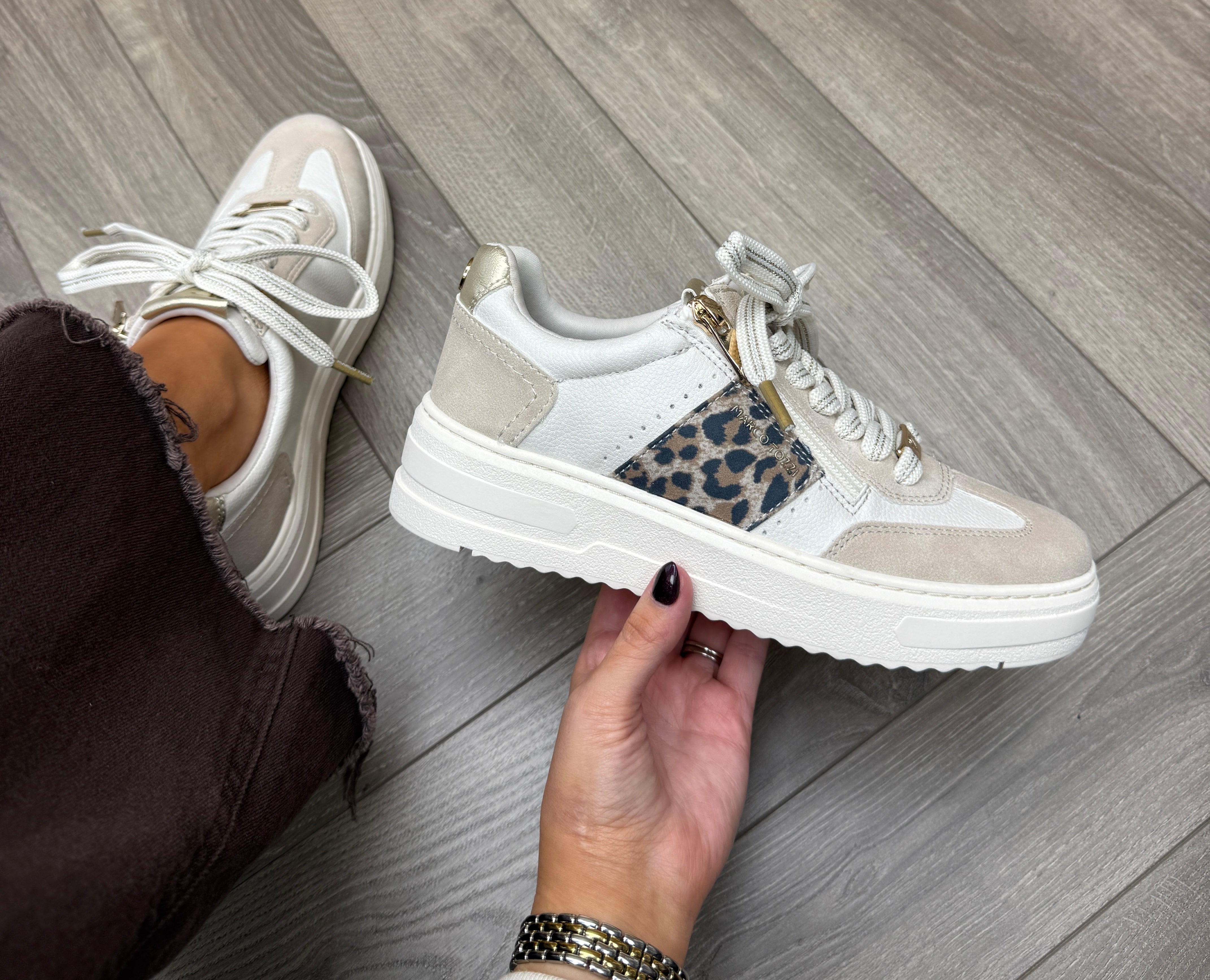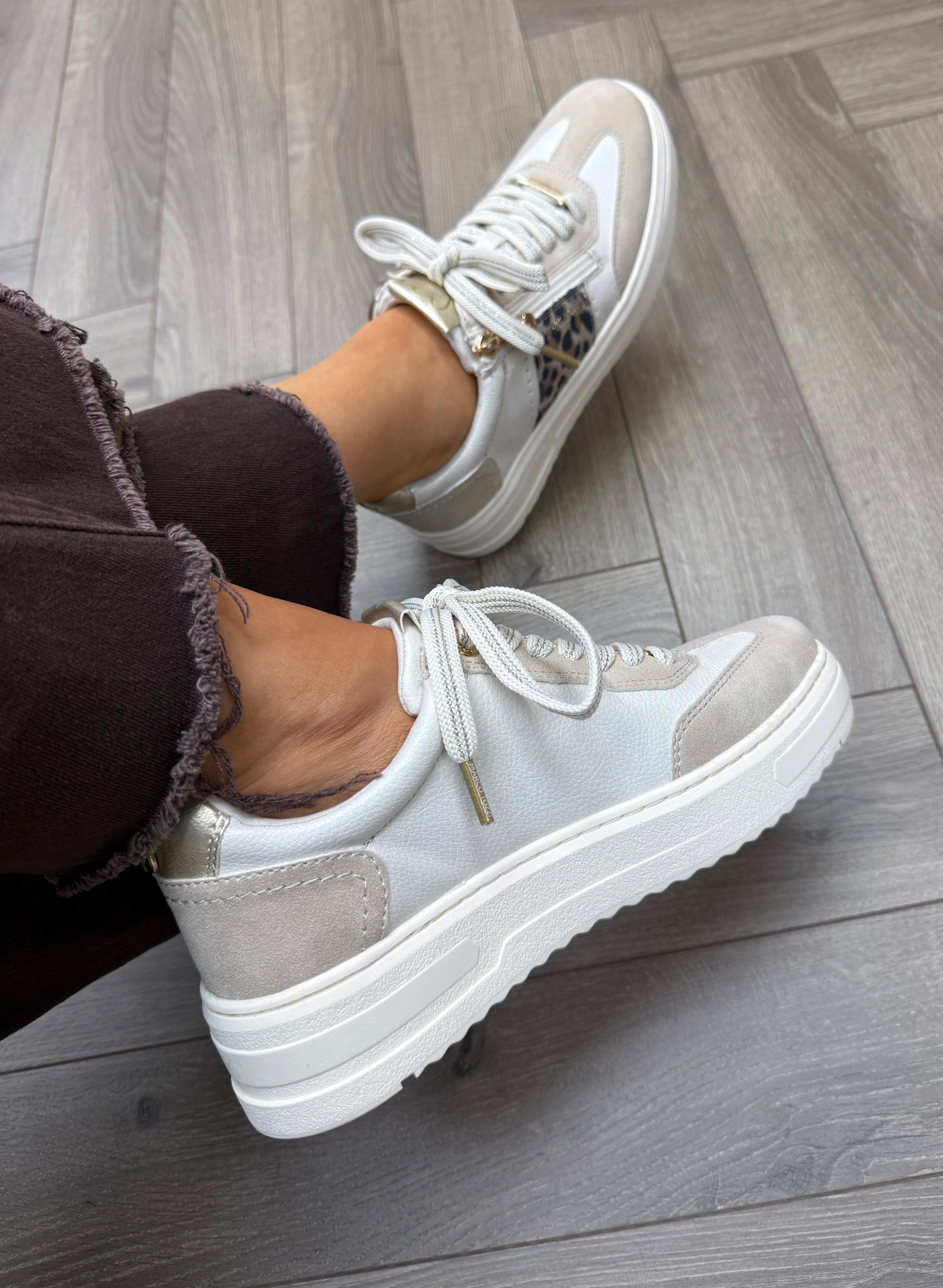 Marco Tozzi (SS26) 2-23766-46 Platform Trainer With Leopard Print - Cream Comb (MT16)