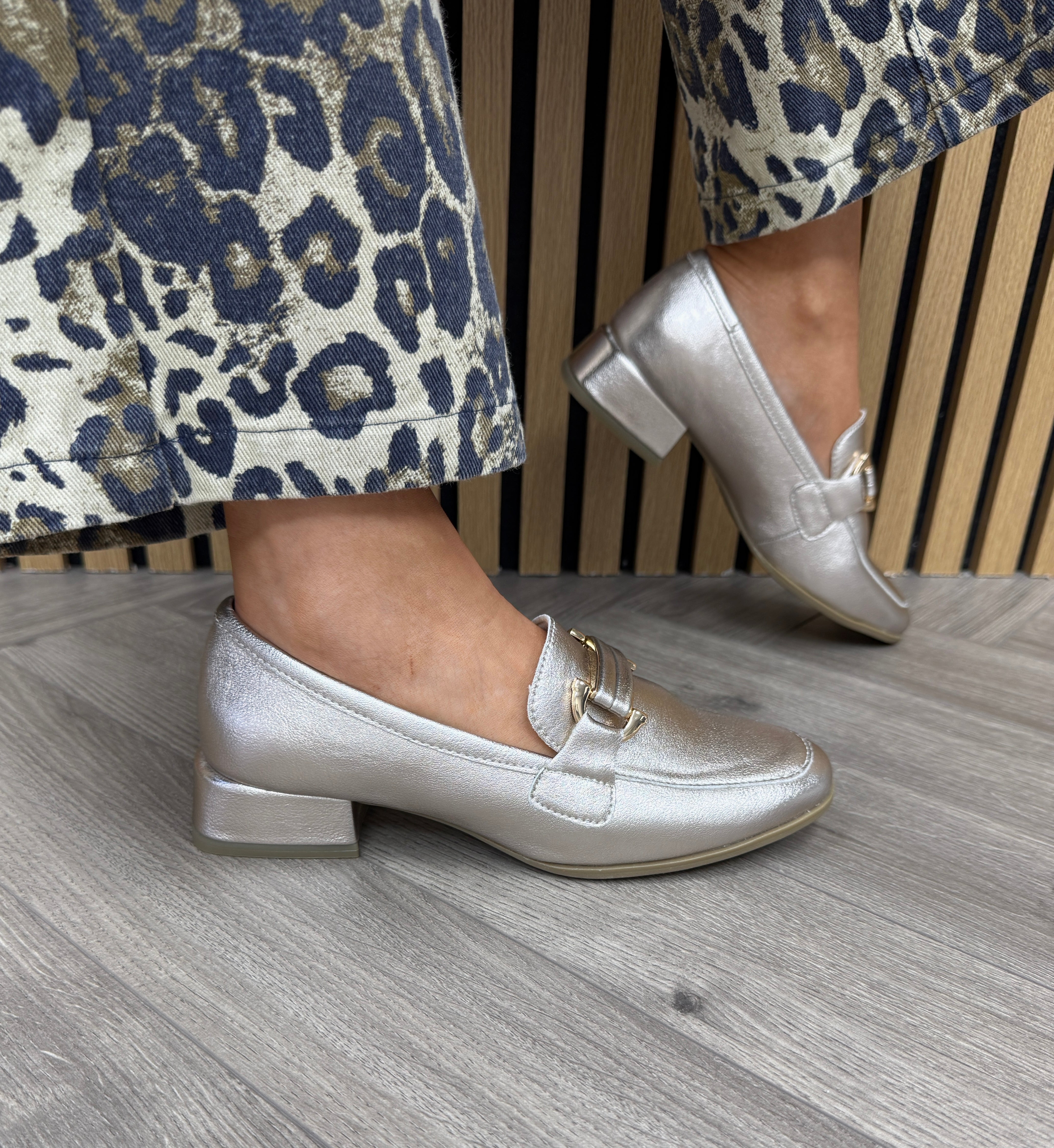 Marco Tozzi (SS26) 2-24250-45 Heeled Metallic Loafer - Platinum (MT20)