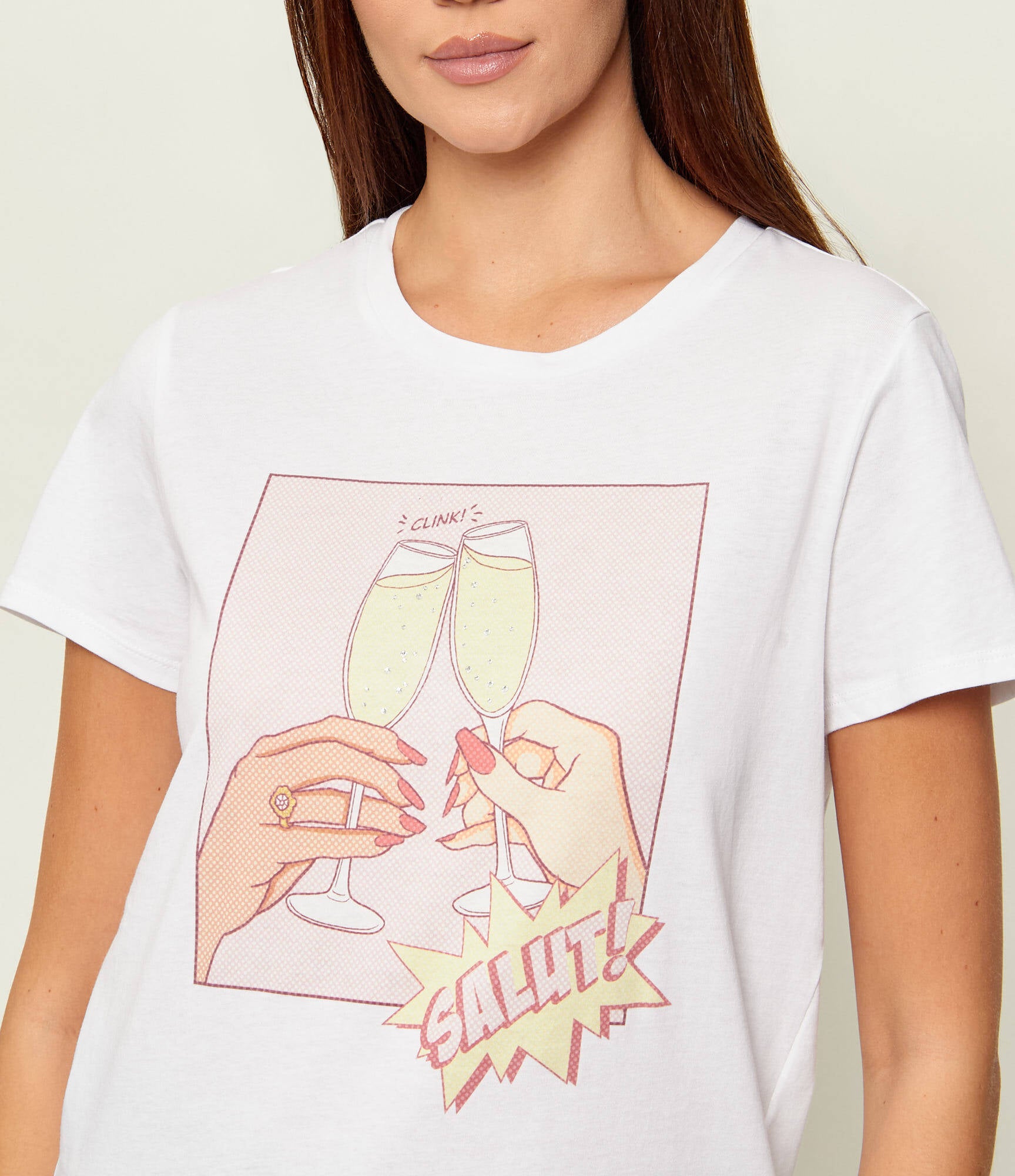 Guess W6GI32K3301 T-Shirt with Champagne Glasses - G011 (GC39)