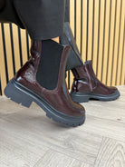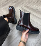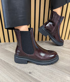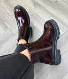 Heavenly Feet Zeta Patent Biker Boot (HF1)- Claret Patent