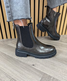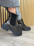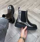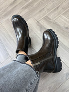 Heavenly Feet Zeta Patent Biker Boot (HF8)- Pewter Patent