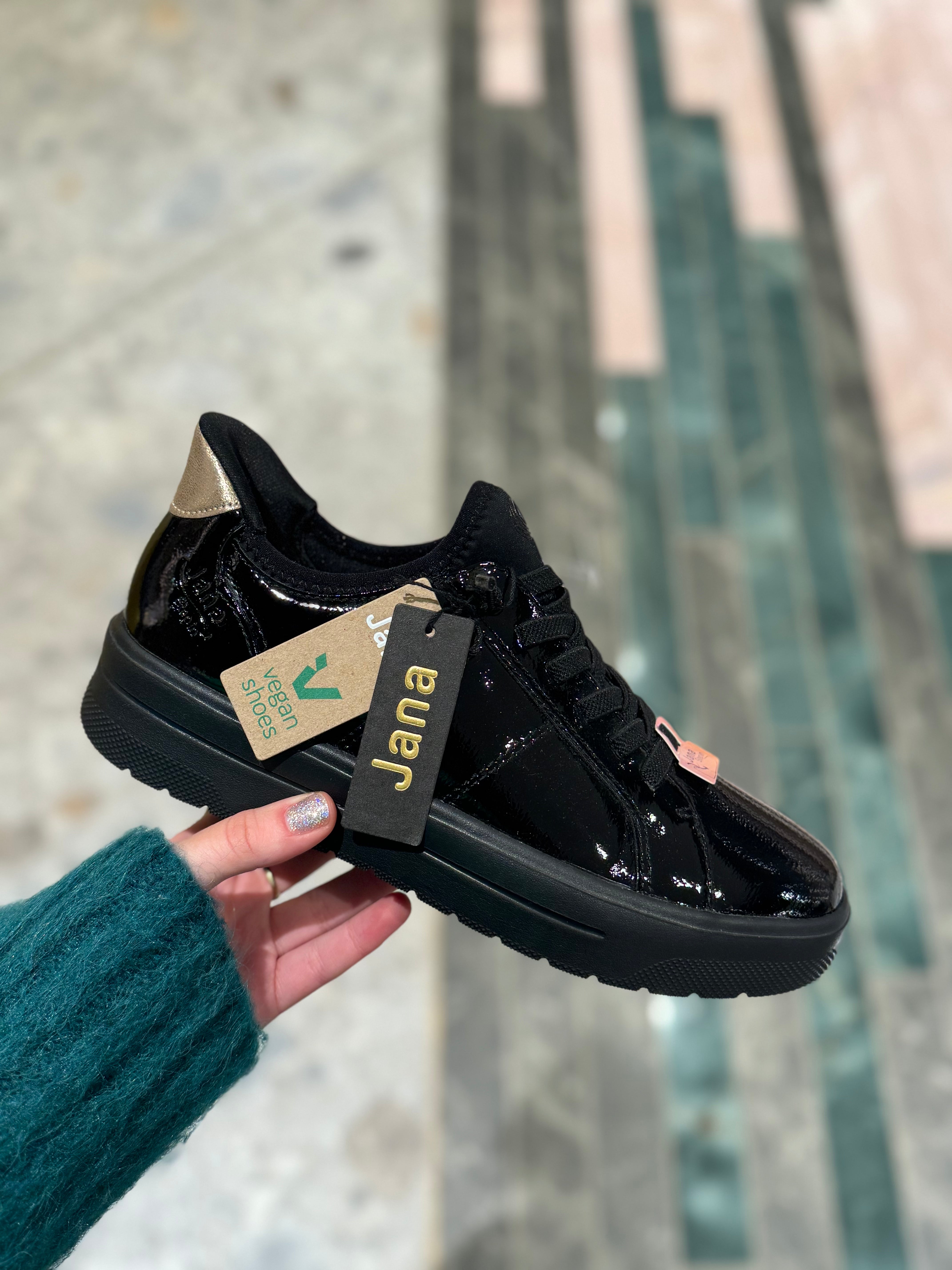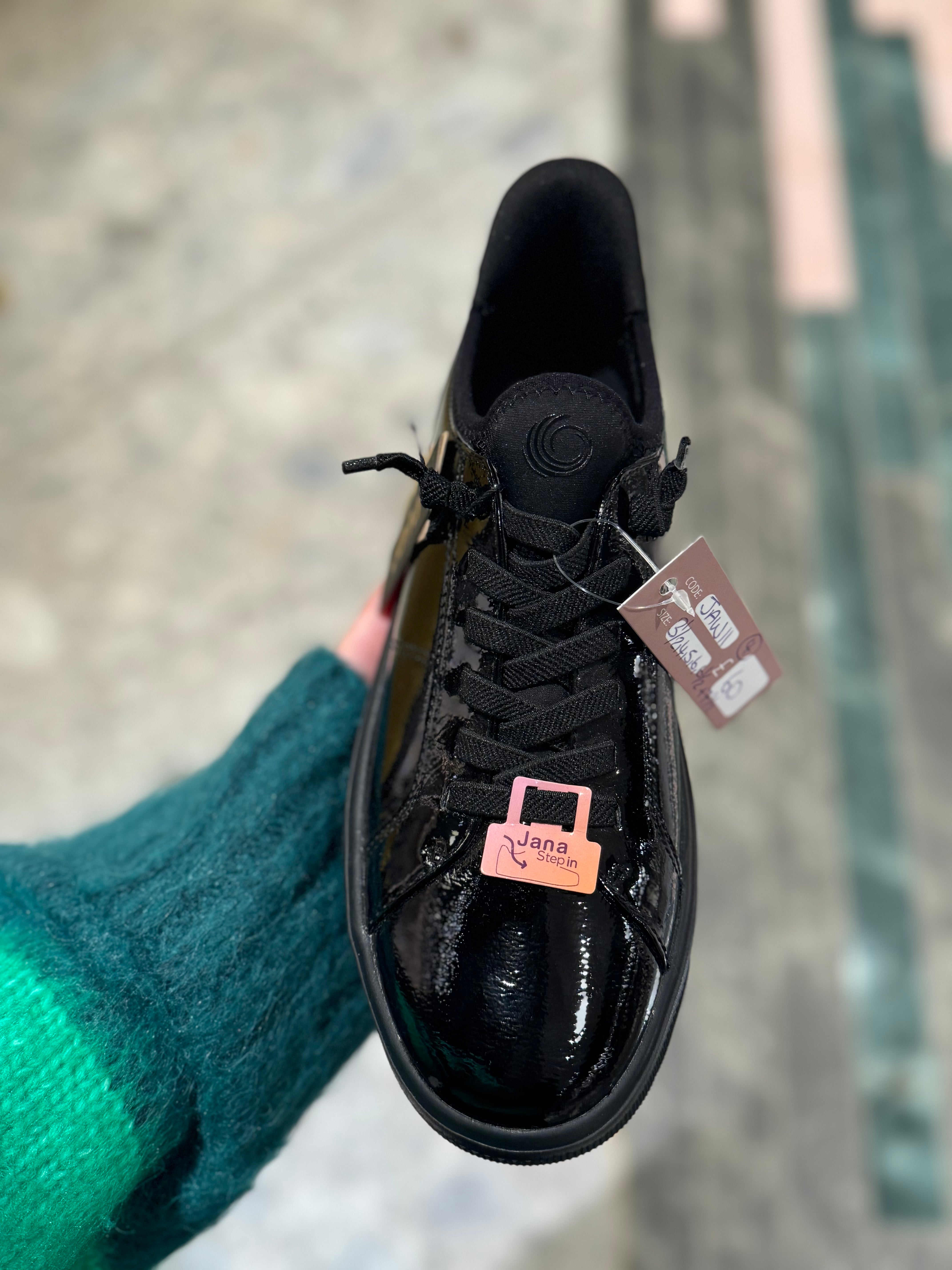Jana (JAW11) Patent Slip On Trainer 23764 - Black Patent