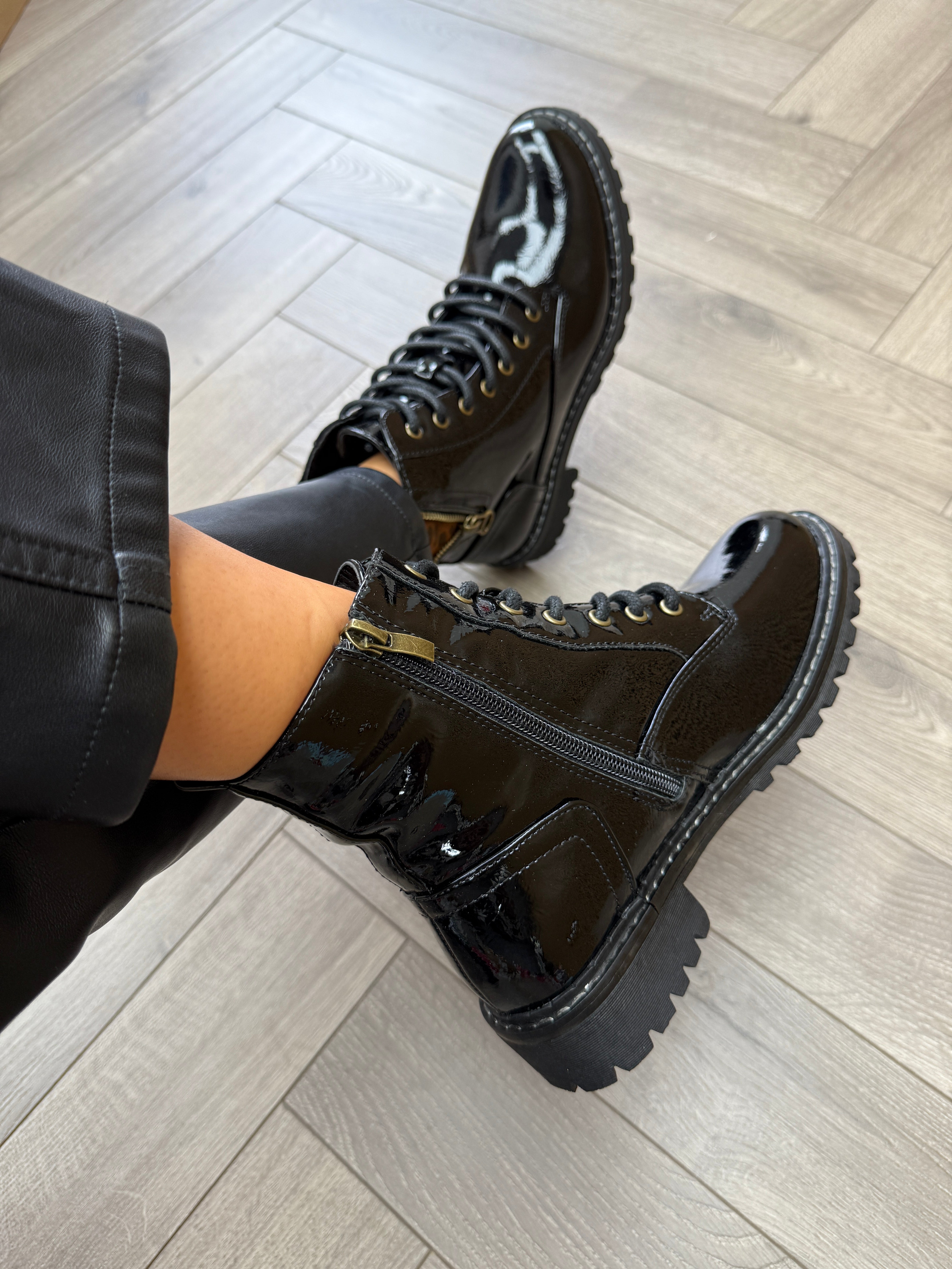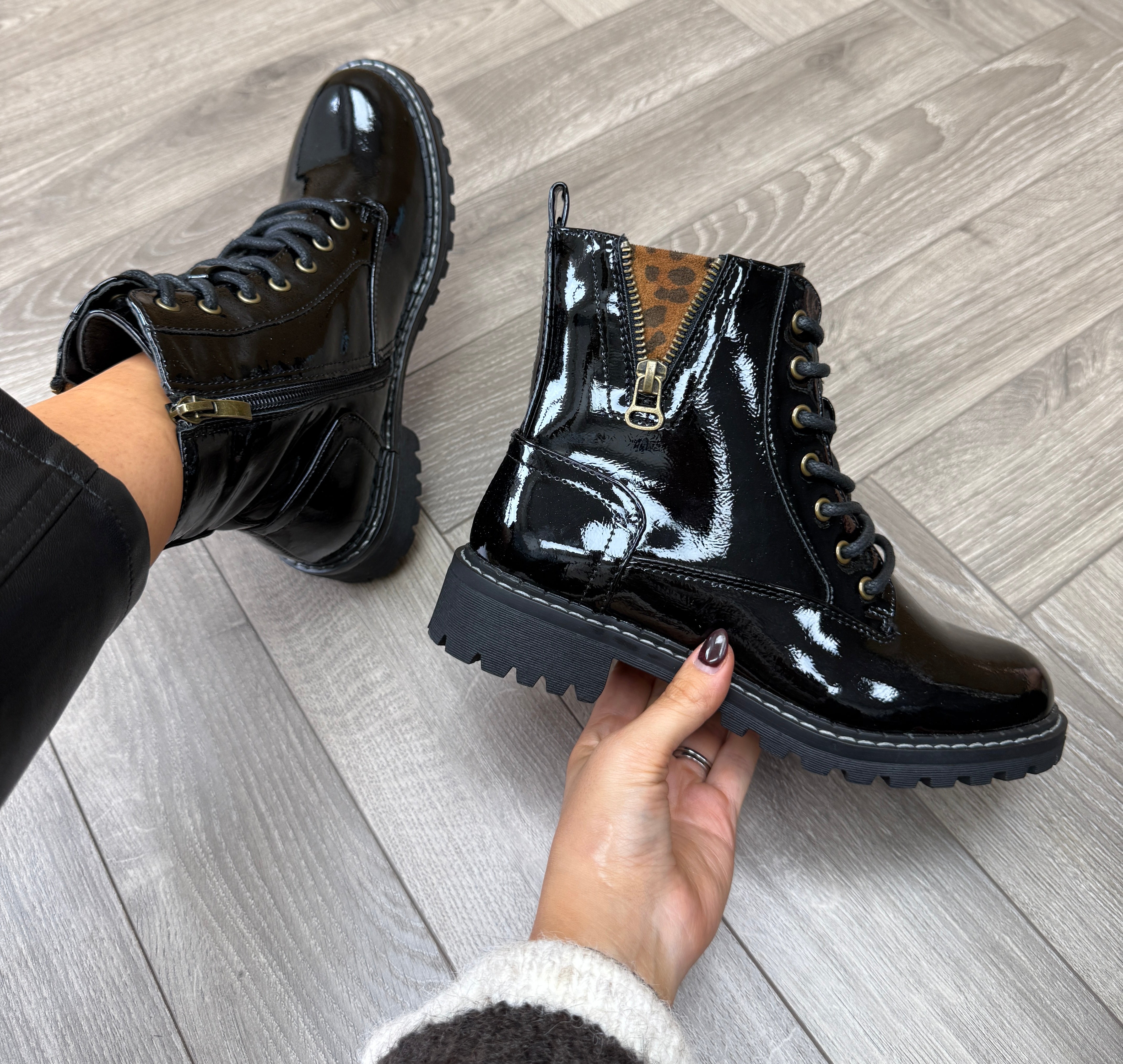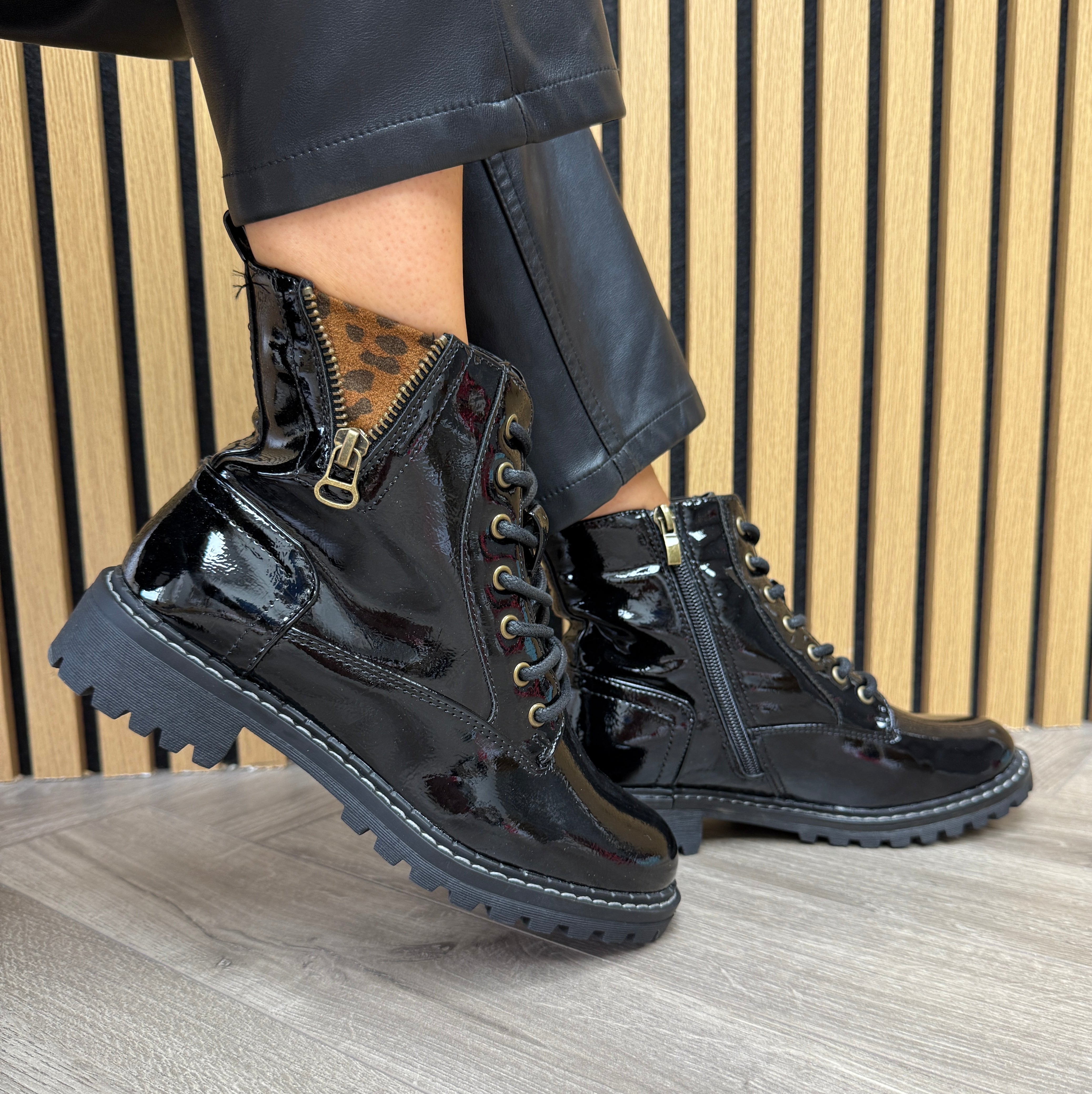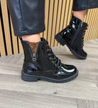 Lunar ‘Nevada’ GLW006 Patent Boot With Leopard Print - Black Patent (L46AW)