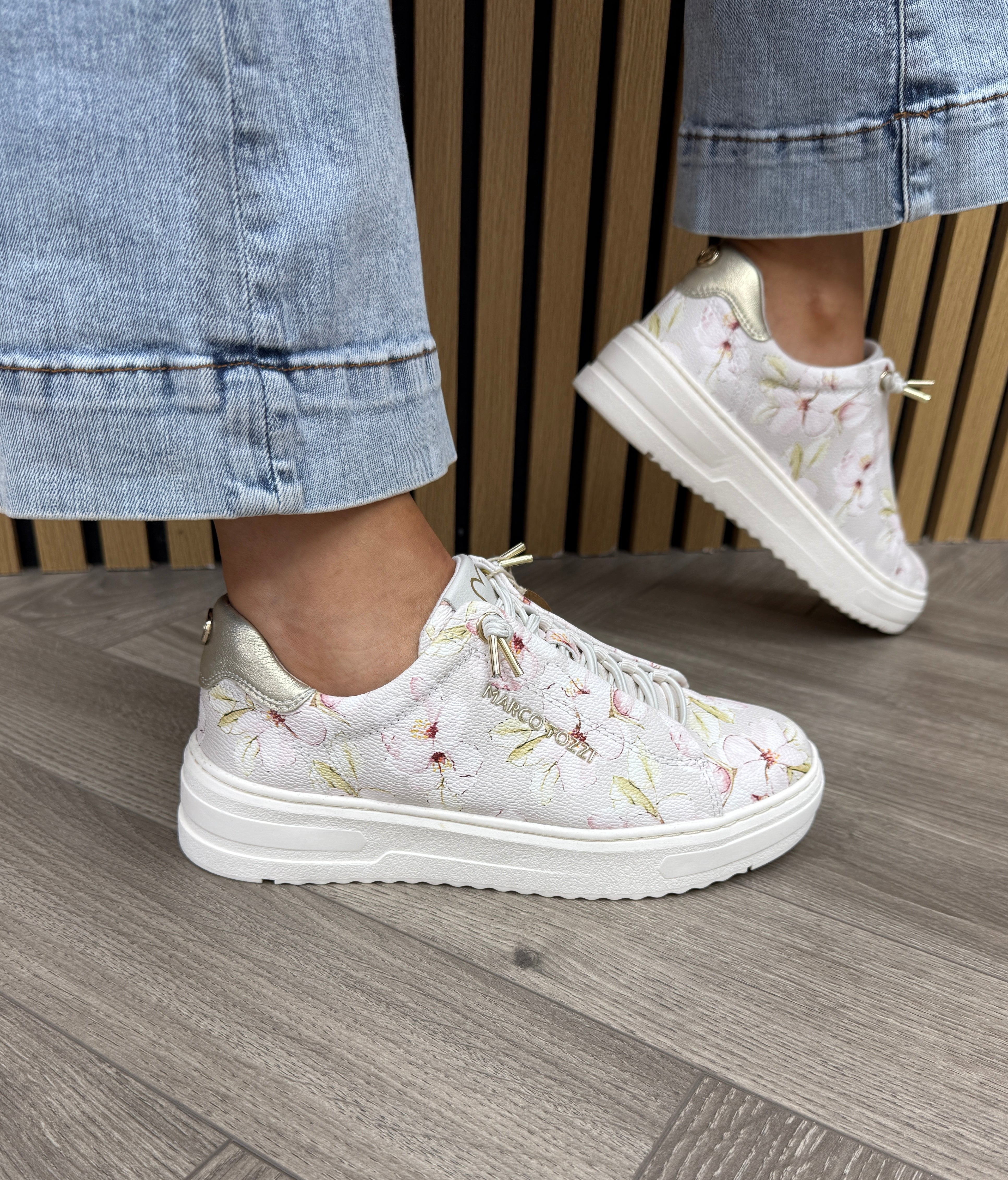 Marco Tozzi (SS26) Floral Print Trainer 23718 - Cream Comb (MT2)