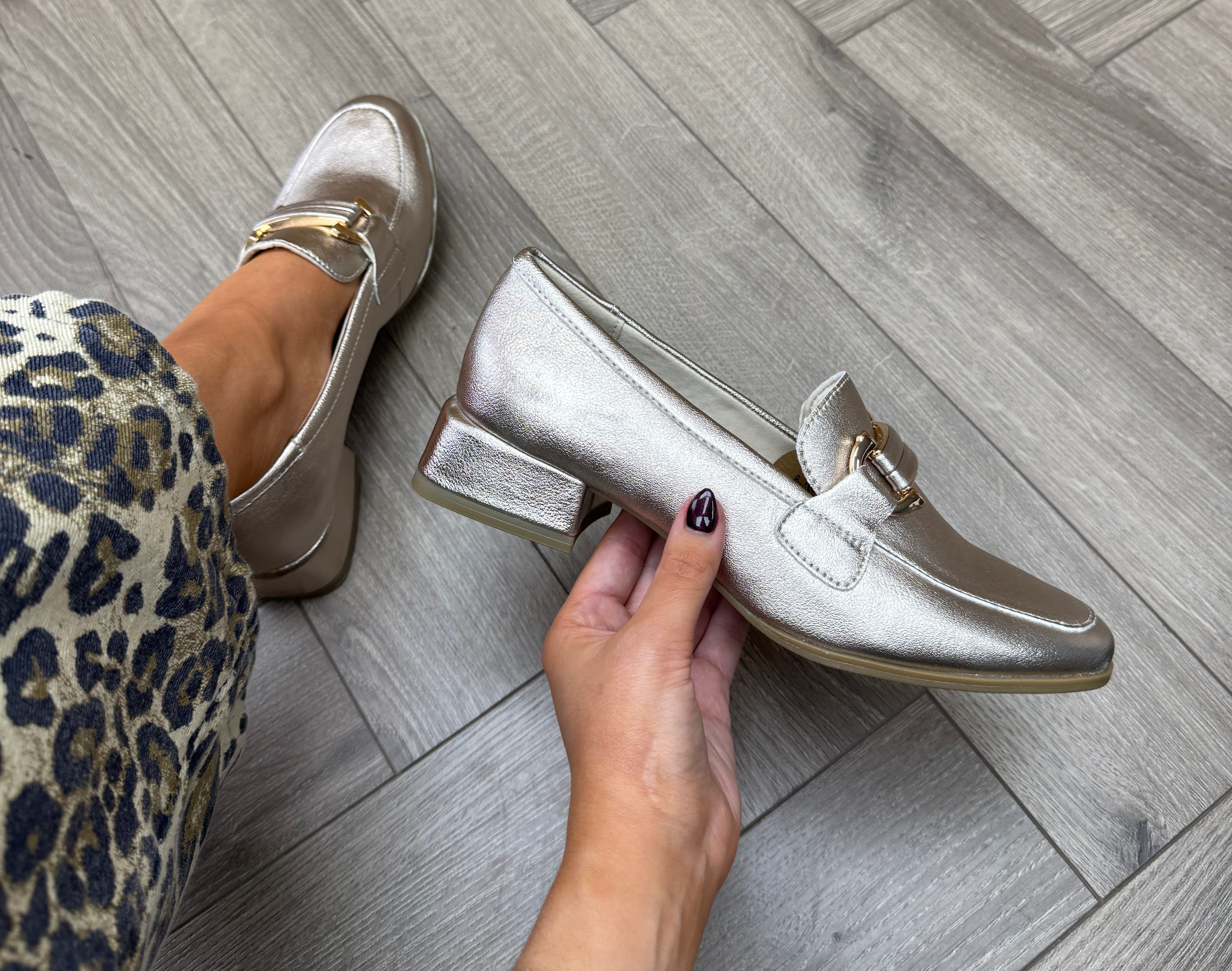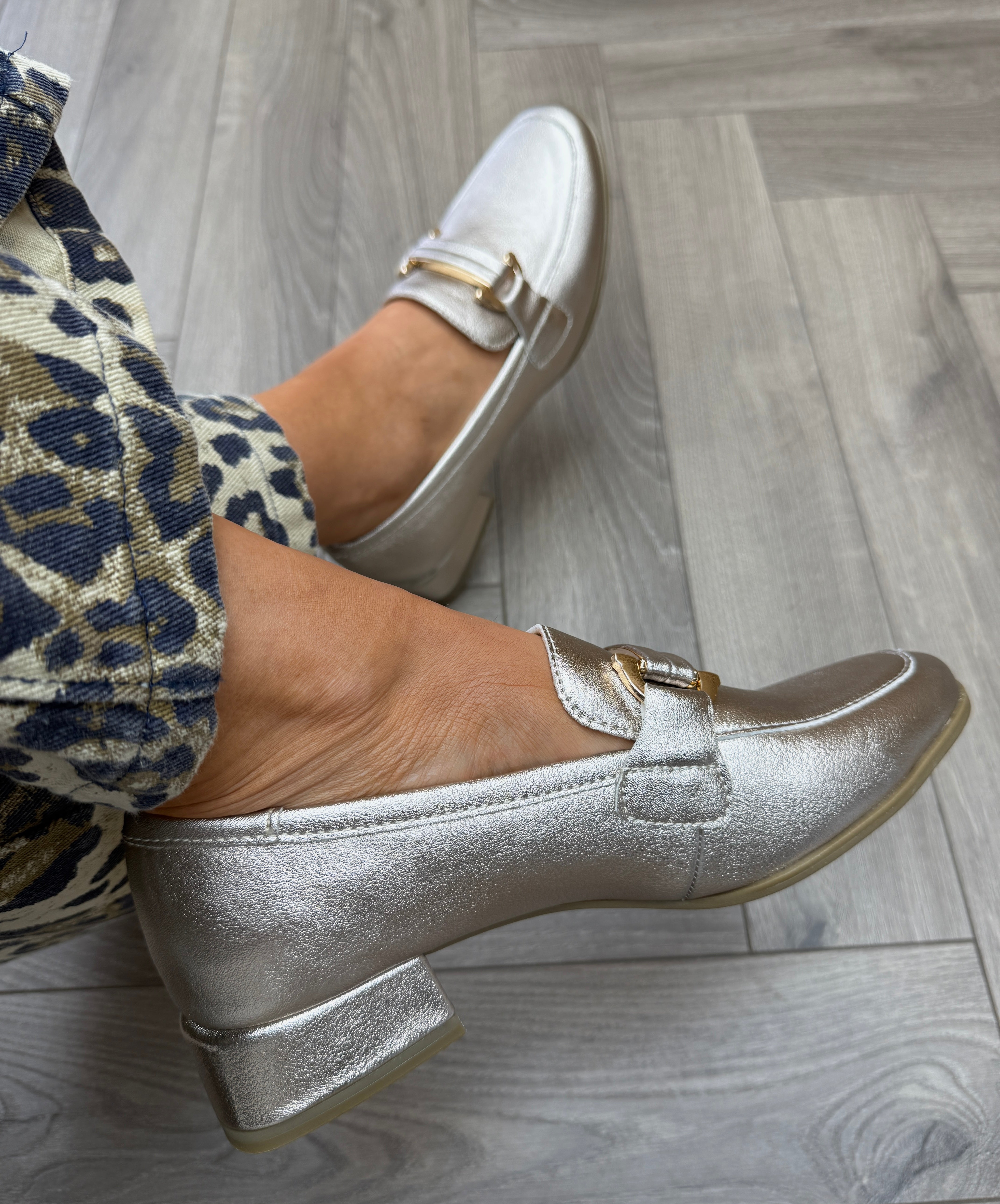 Marco Tozzi (SS26) 2-24250-45 Heeled Metallic Loafer - Platinum (MT20)