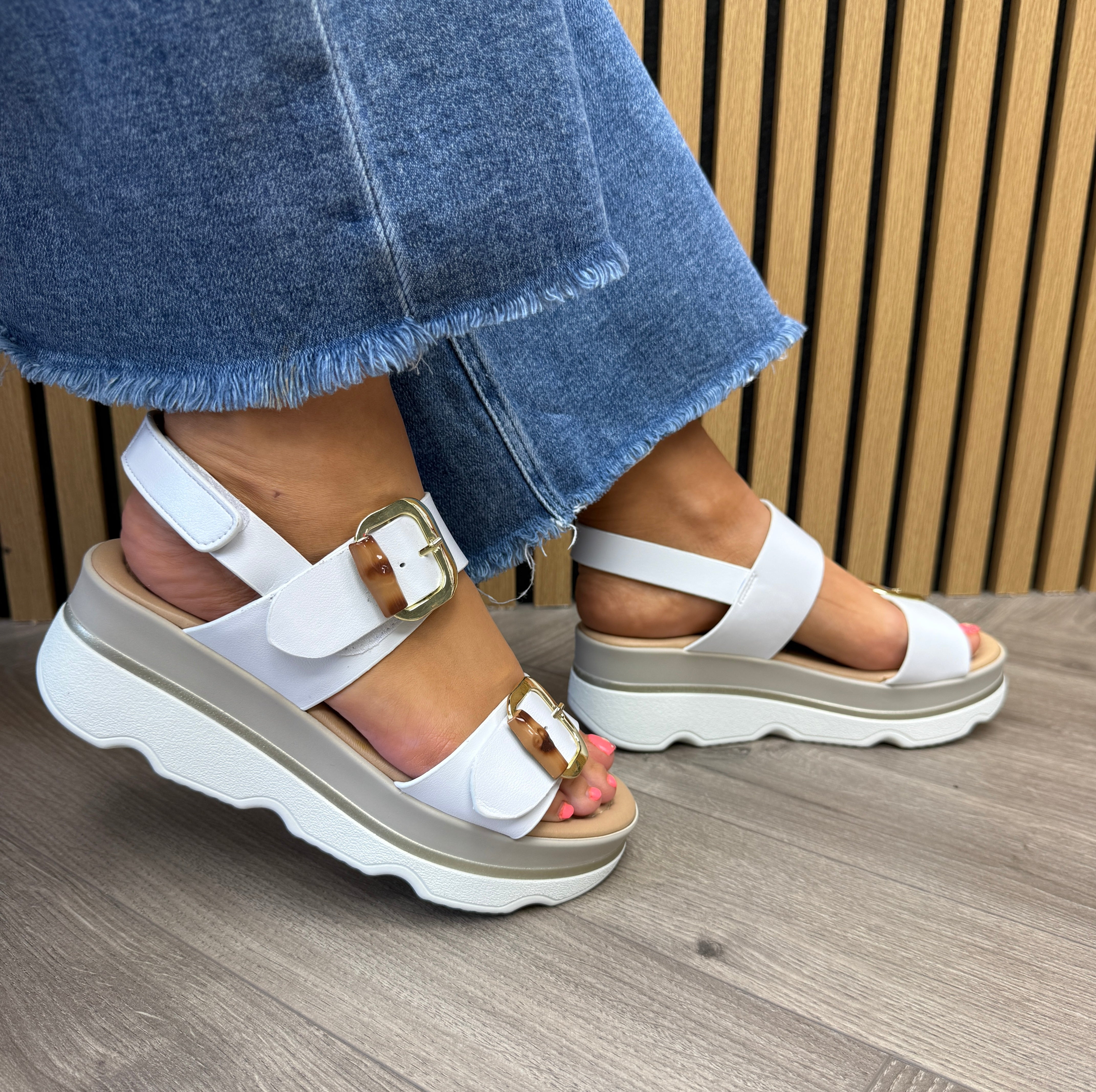 Donna Serena 66595DM Platform Double Strap Sandal - Blanco (DS10)