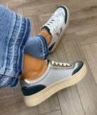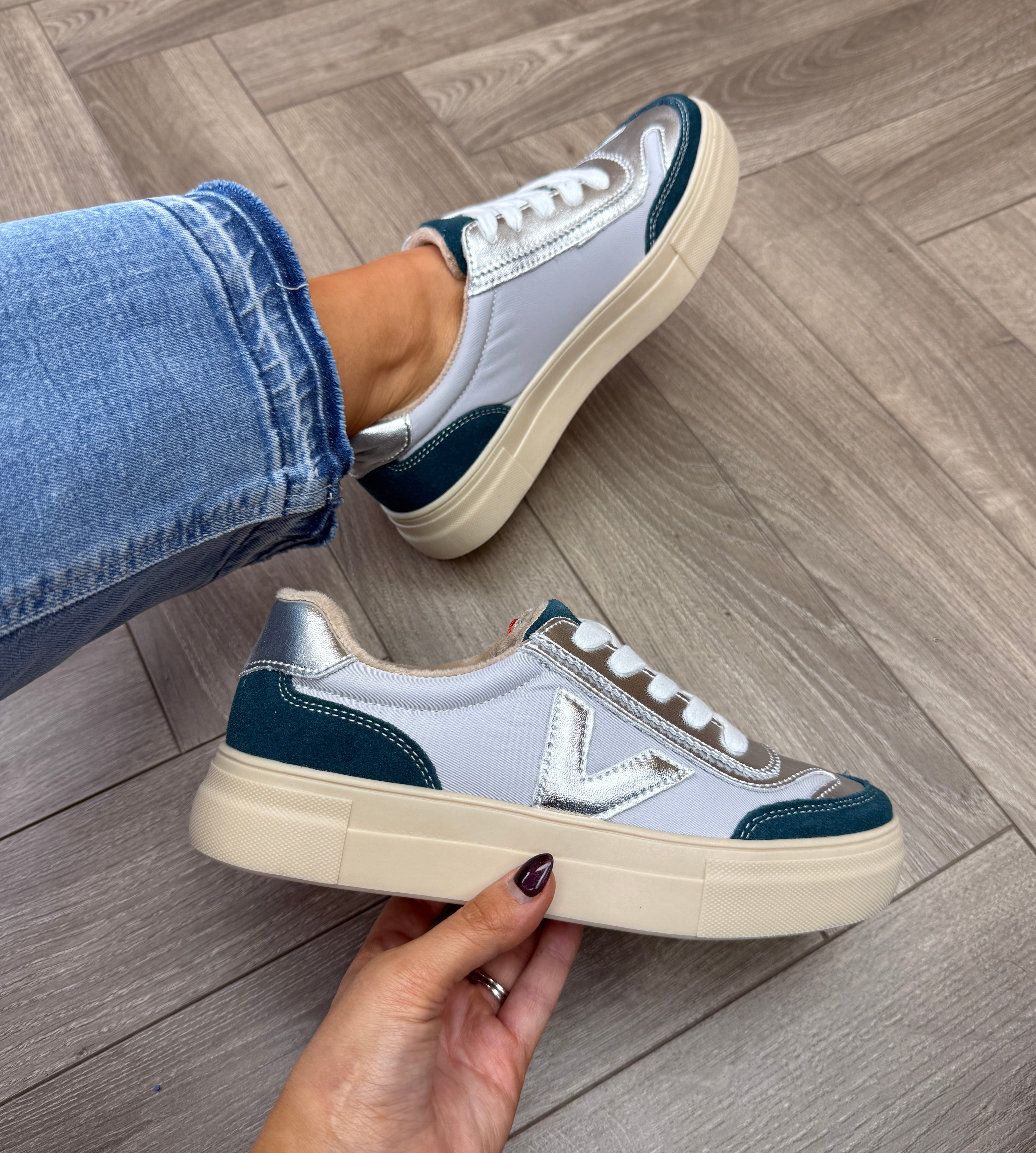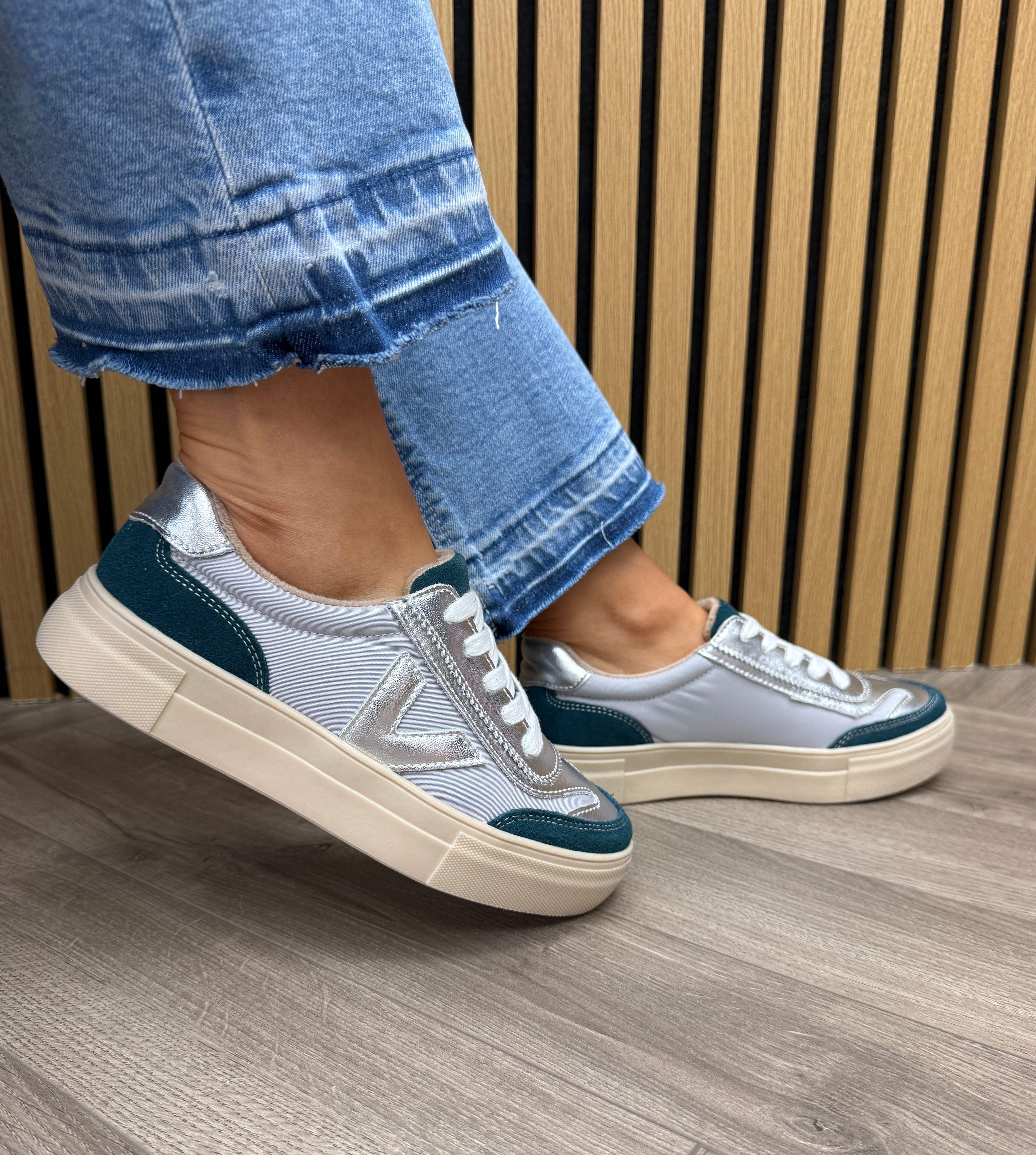 Drilleys (D28) Trainer with Metallic ‘Eighty’ - Aqua Blush