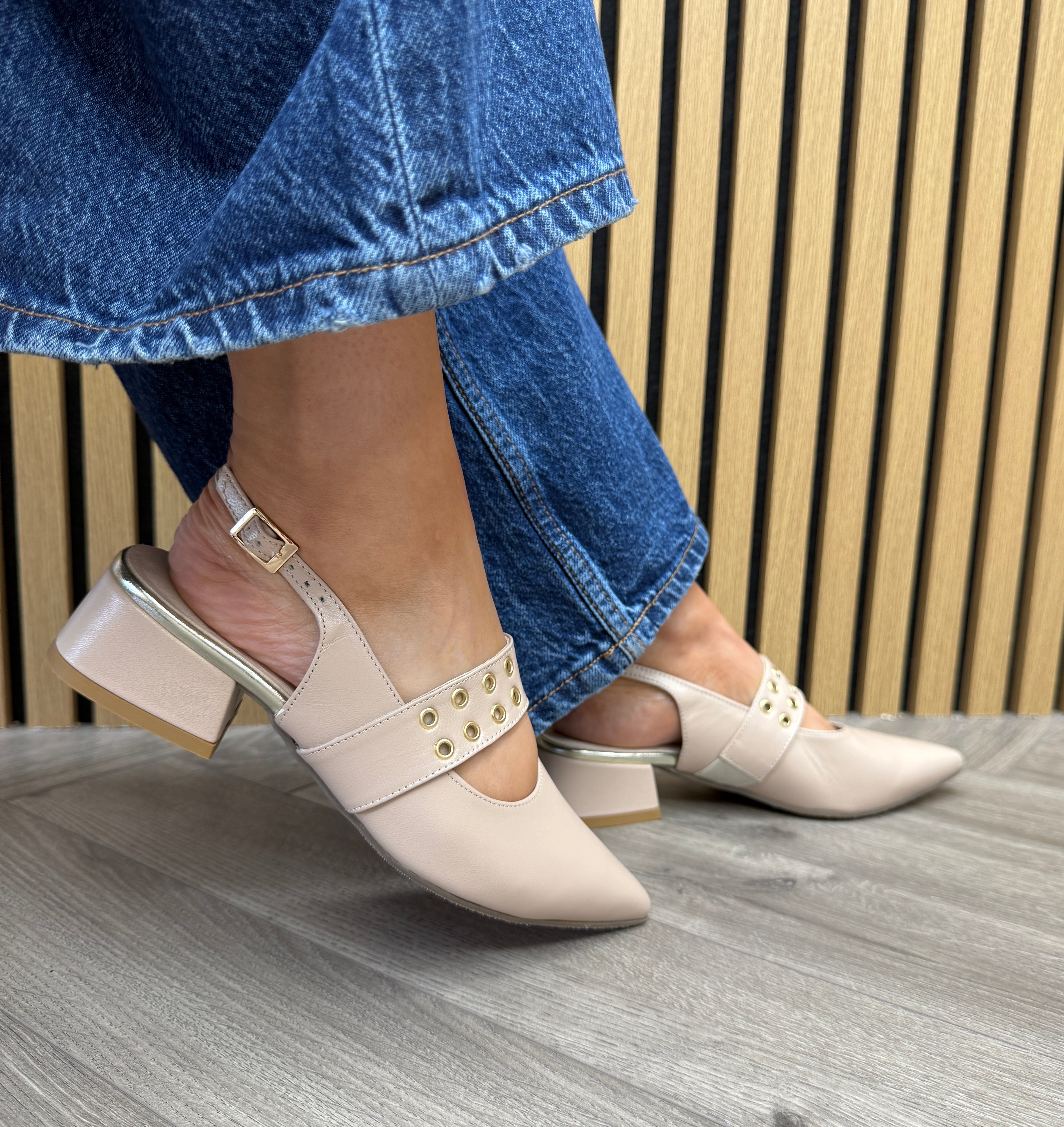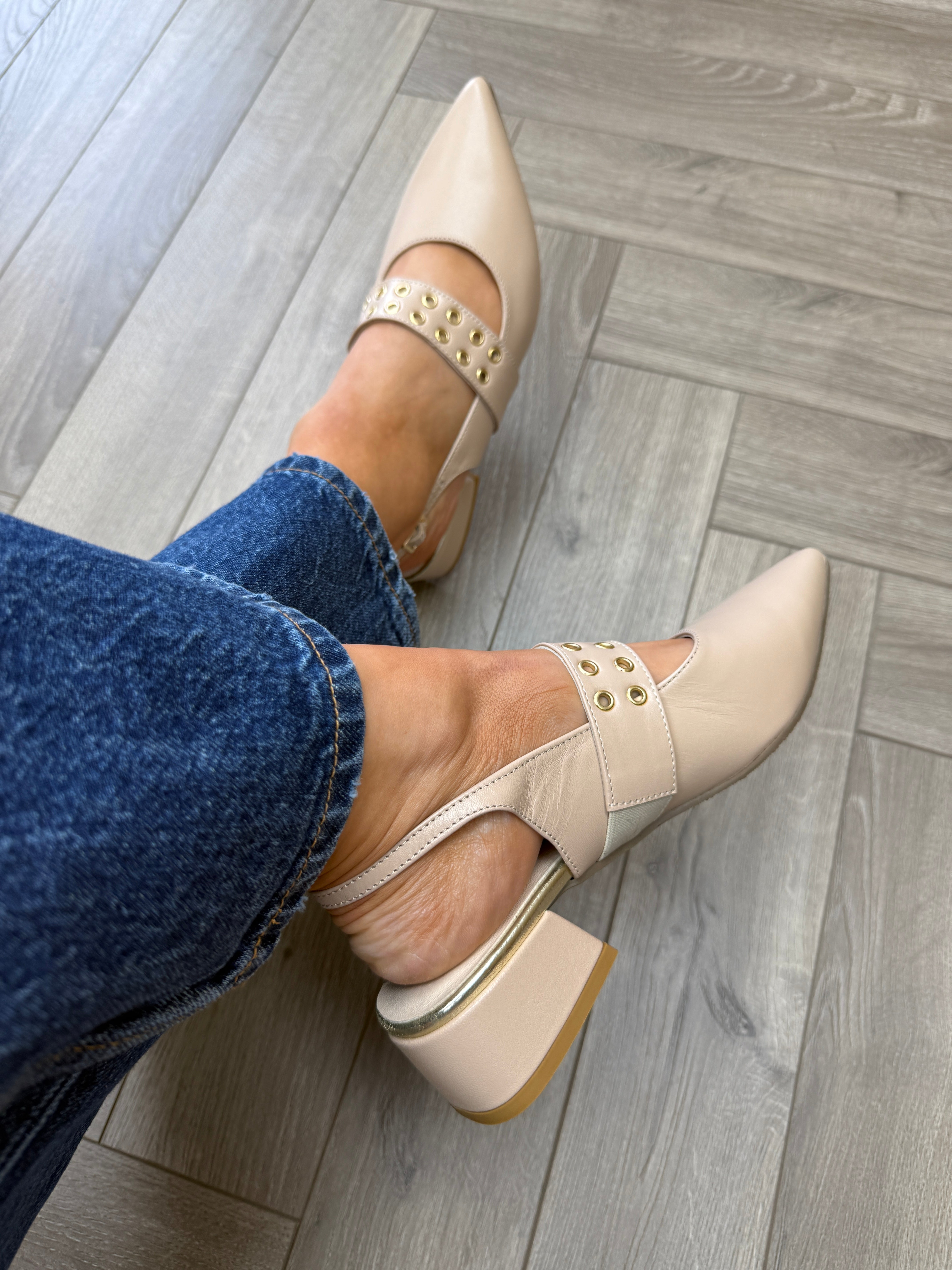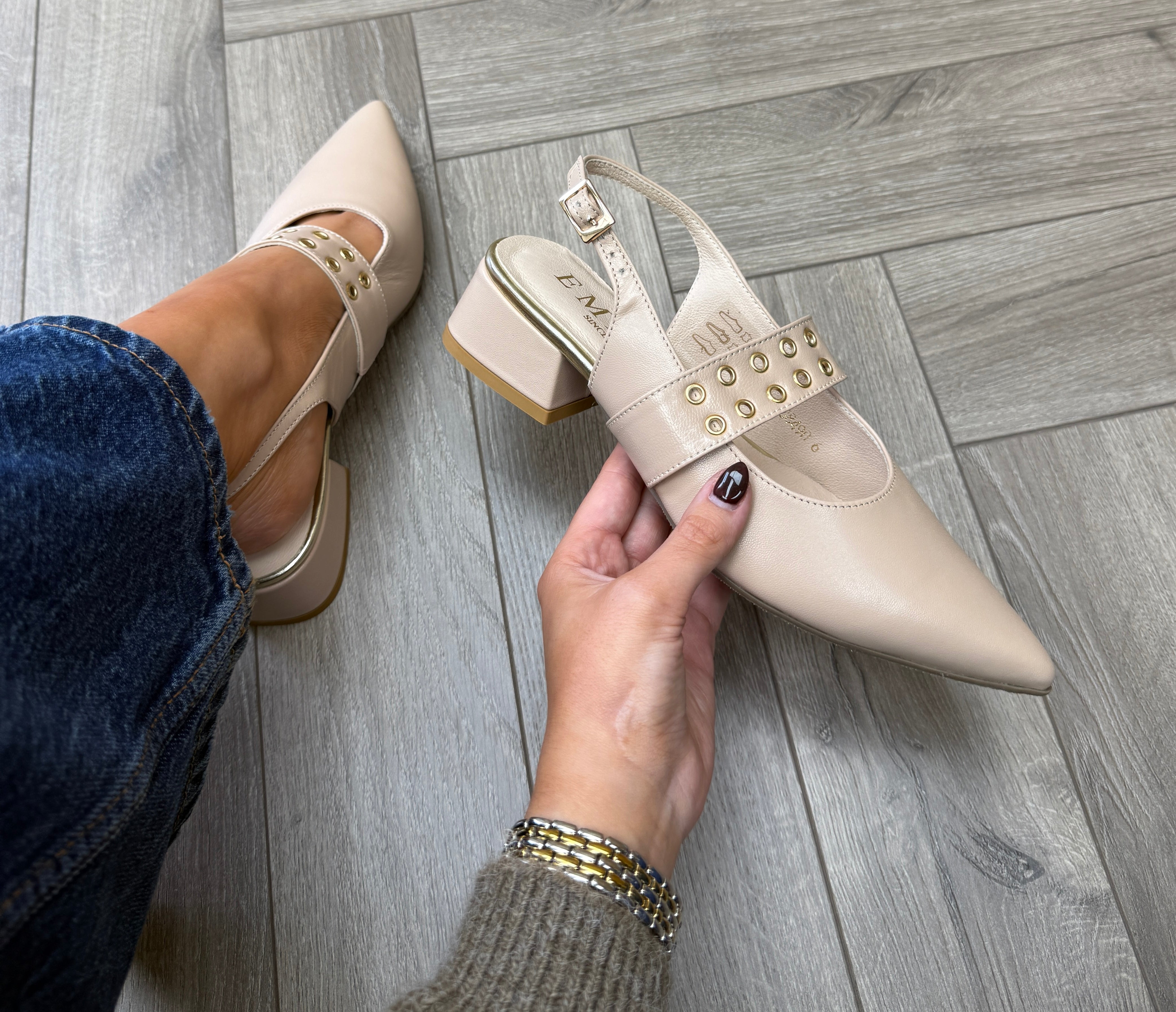 Emis (E2) Pointed Toe Slingback With Gold Eyelets SK8490/956o - Beige