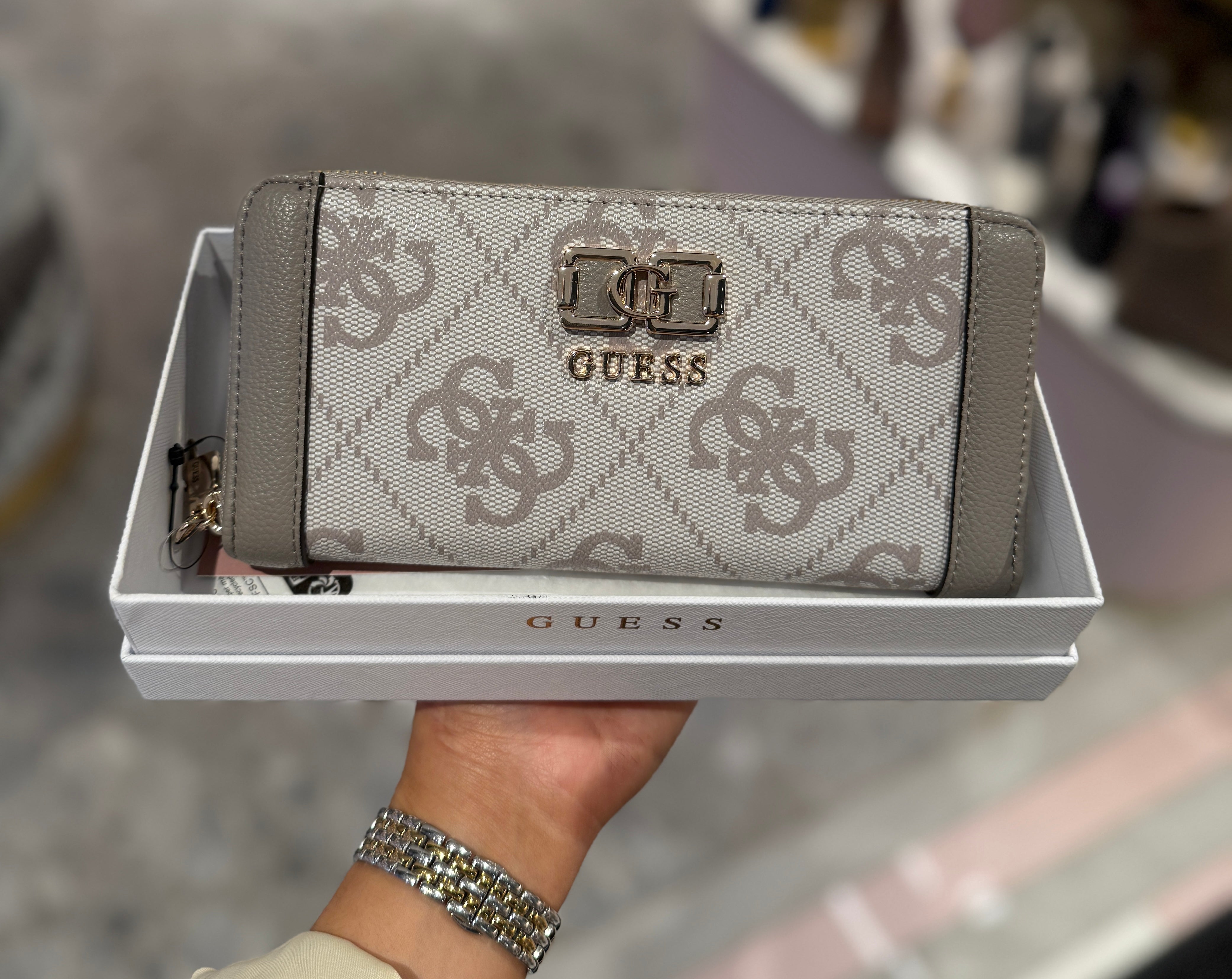 Guess (SS26) OS9901146 Large Zip Round Logo ‘Karnilla Logo SLG’Purse - Dark Taupe (GP1)