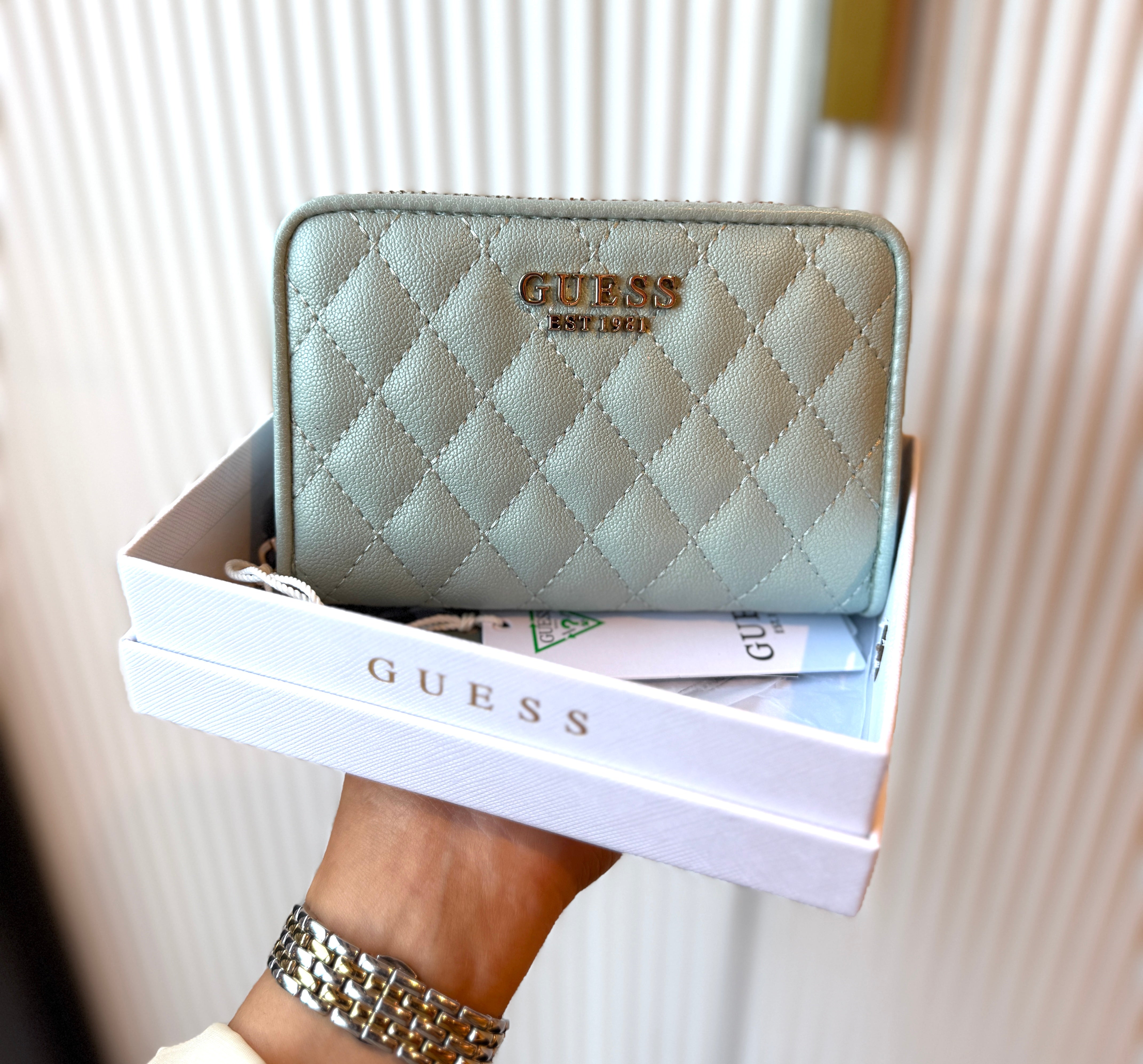 Guess (SS26) QG9894140 Mini Quilted Zip Round Purse ‘Atabey SLG’ - Light Sage (GP9)