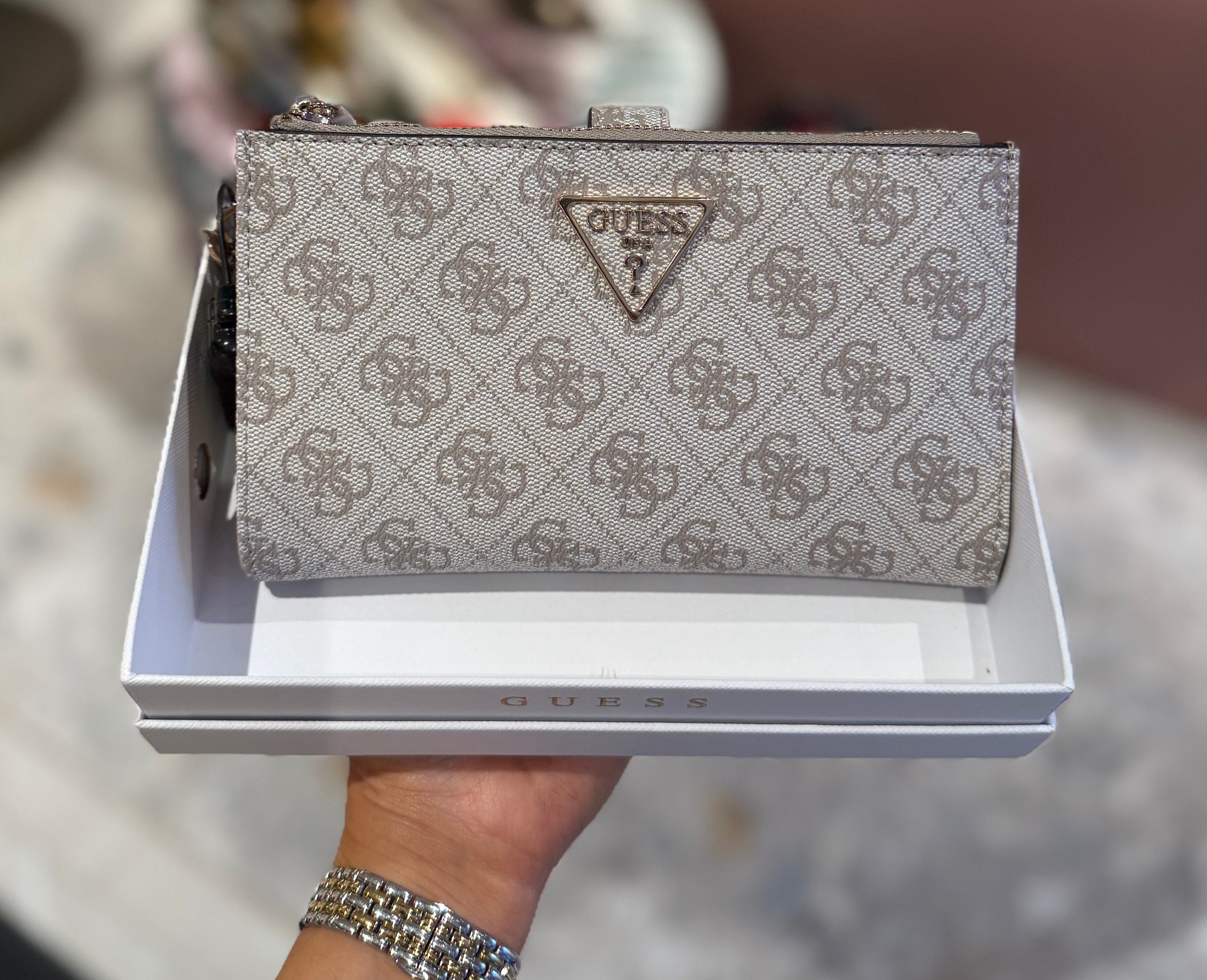 Guess (SS26) SG7459157 Double Zip Logo Print Wallet ‘Laurel II SLG’ - Dark Taupe Logo (GP6)