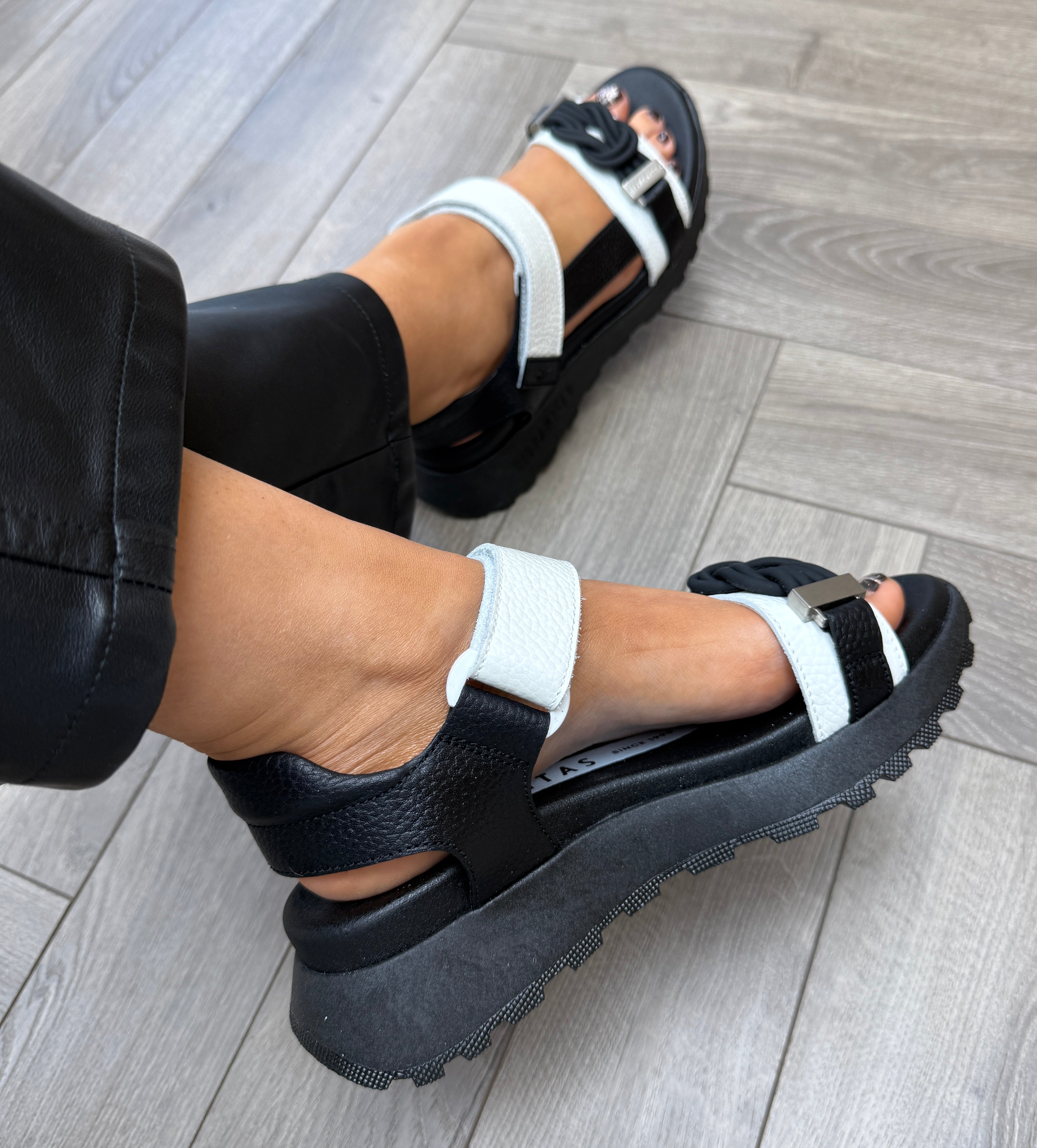 True to size. Leather. Velcro strap.