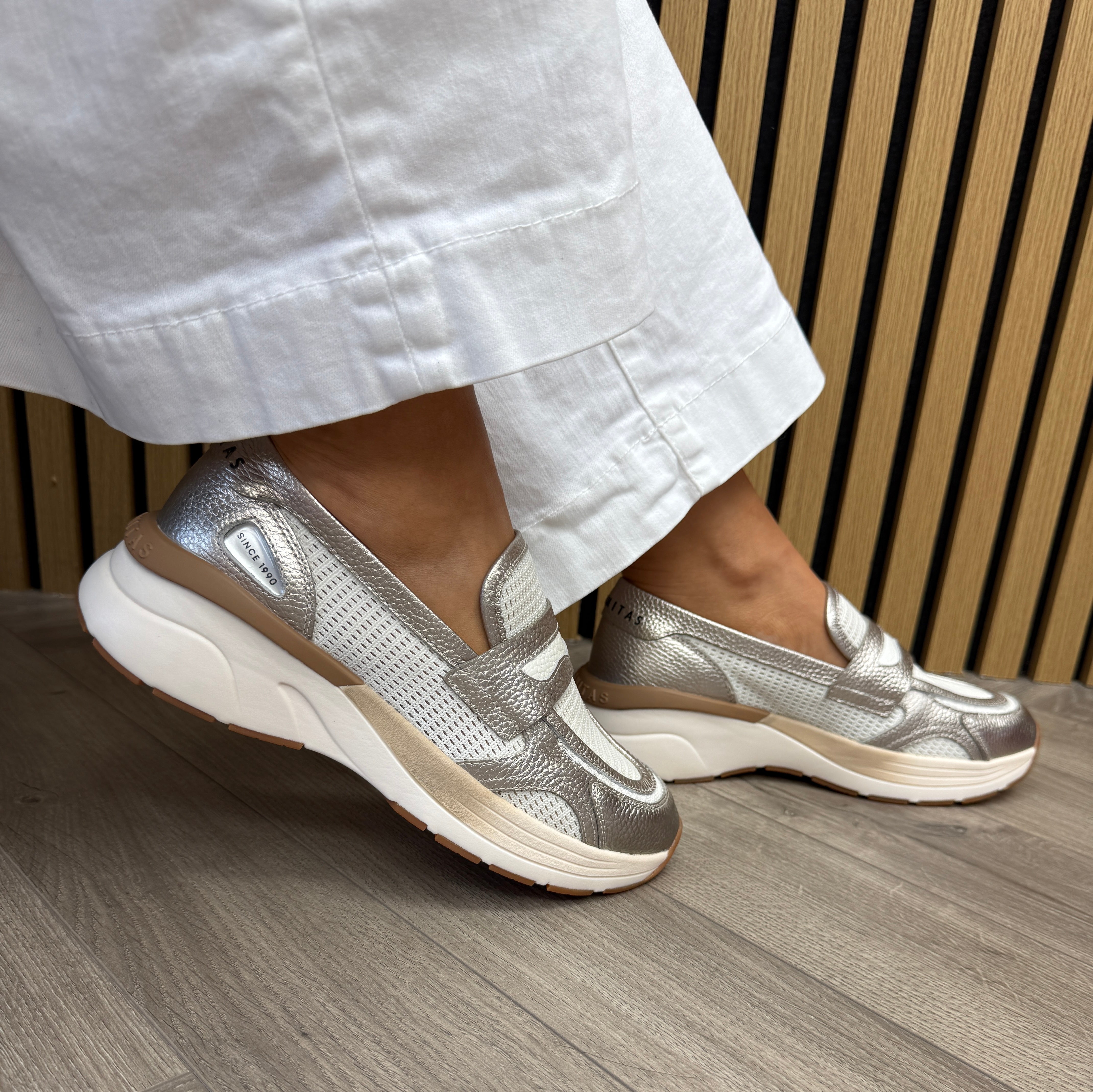 Hispanitas HV264508 Mesh Loafer with Metallic Trim -Panna/Cava (HI49)