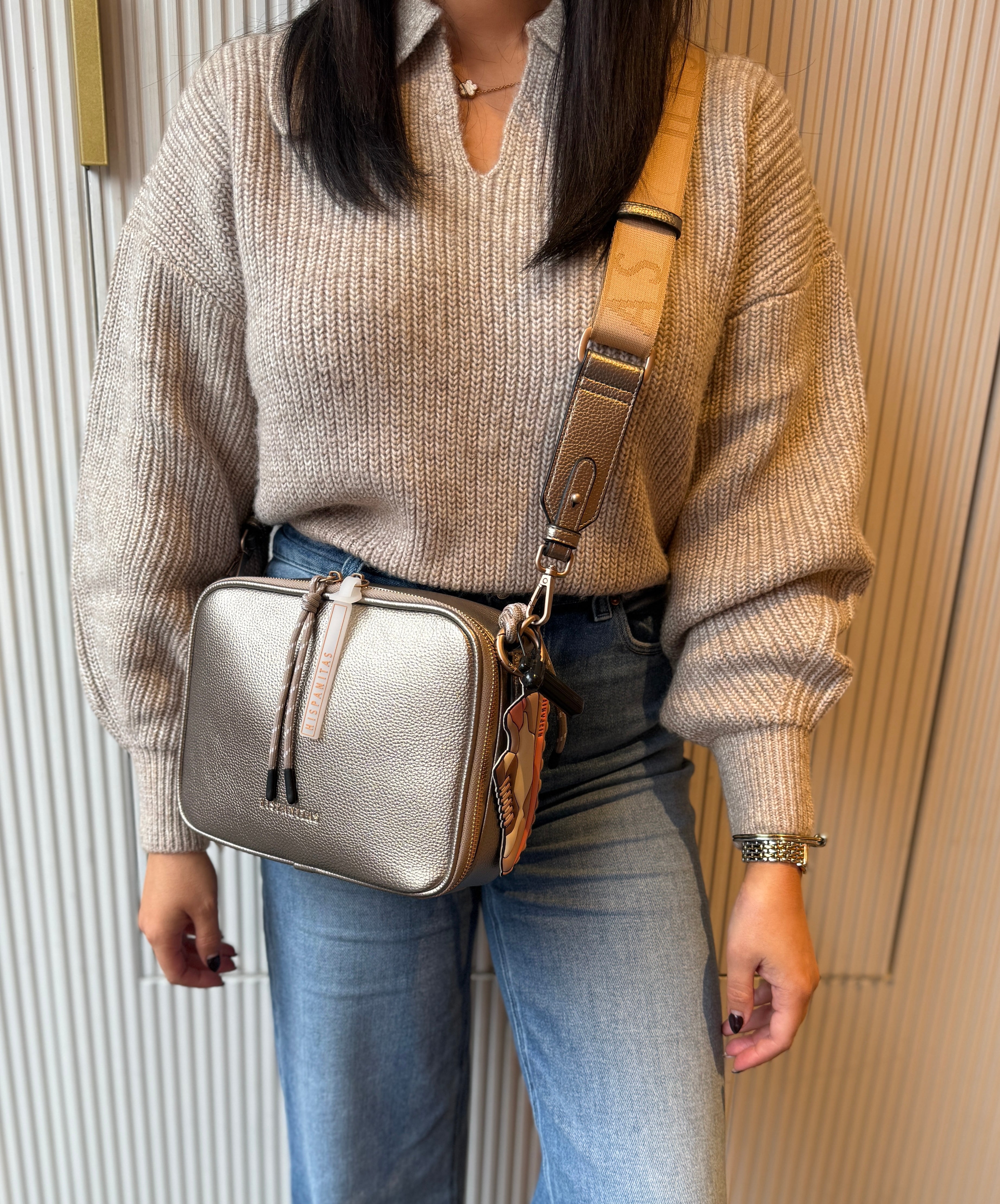 Hispanitas ‘Samba Met V-26’ BV254721 Metallic Zip Crossbody Bag - Cava (HB3)