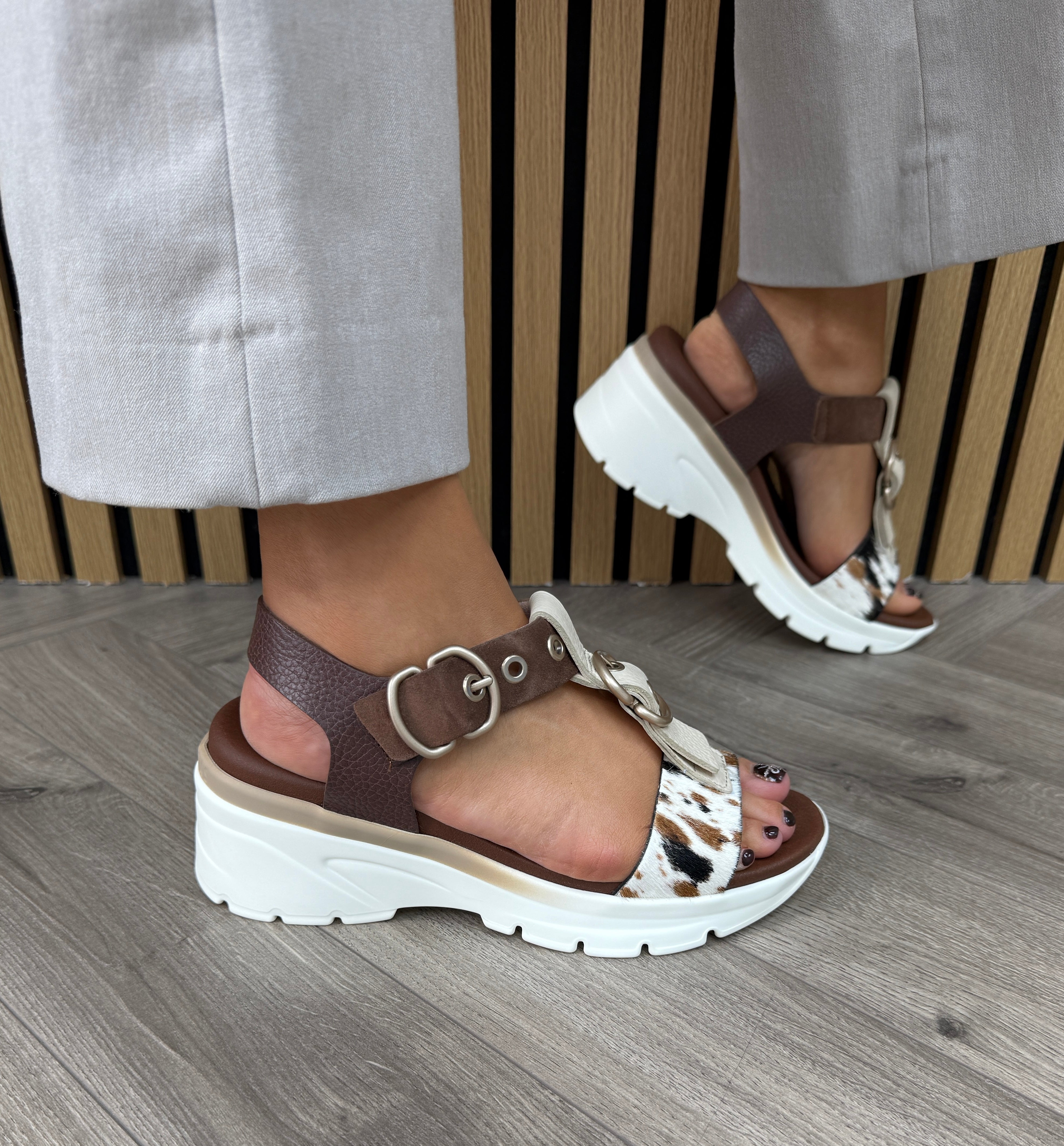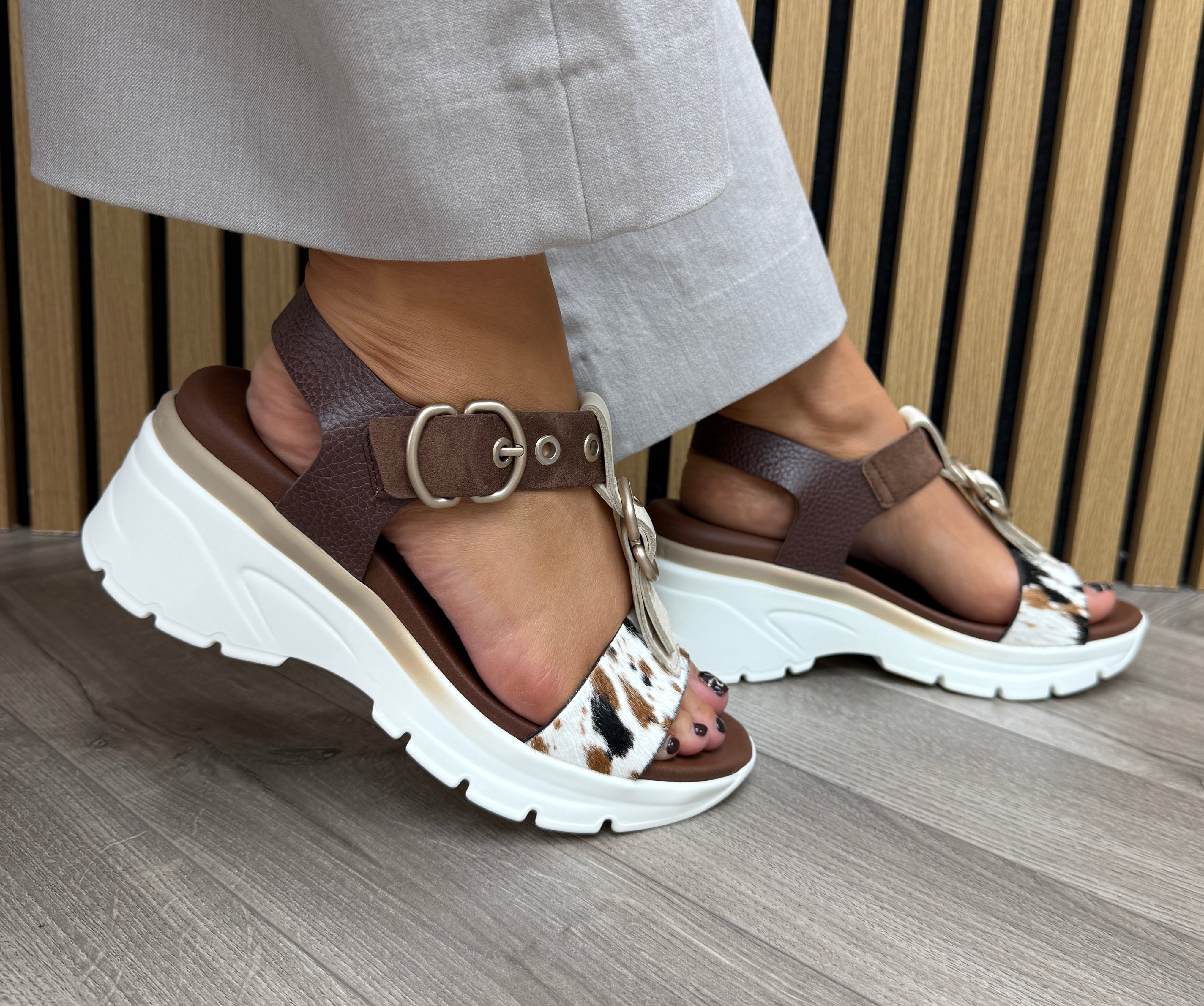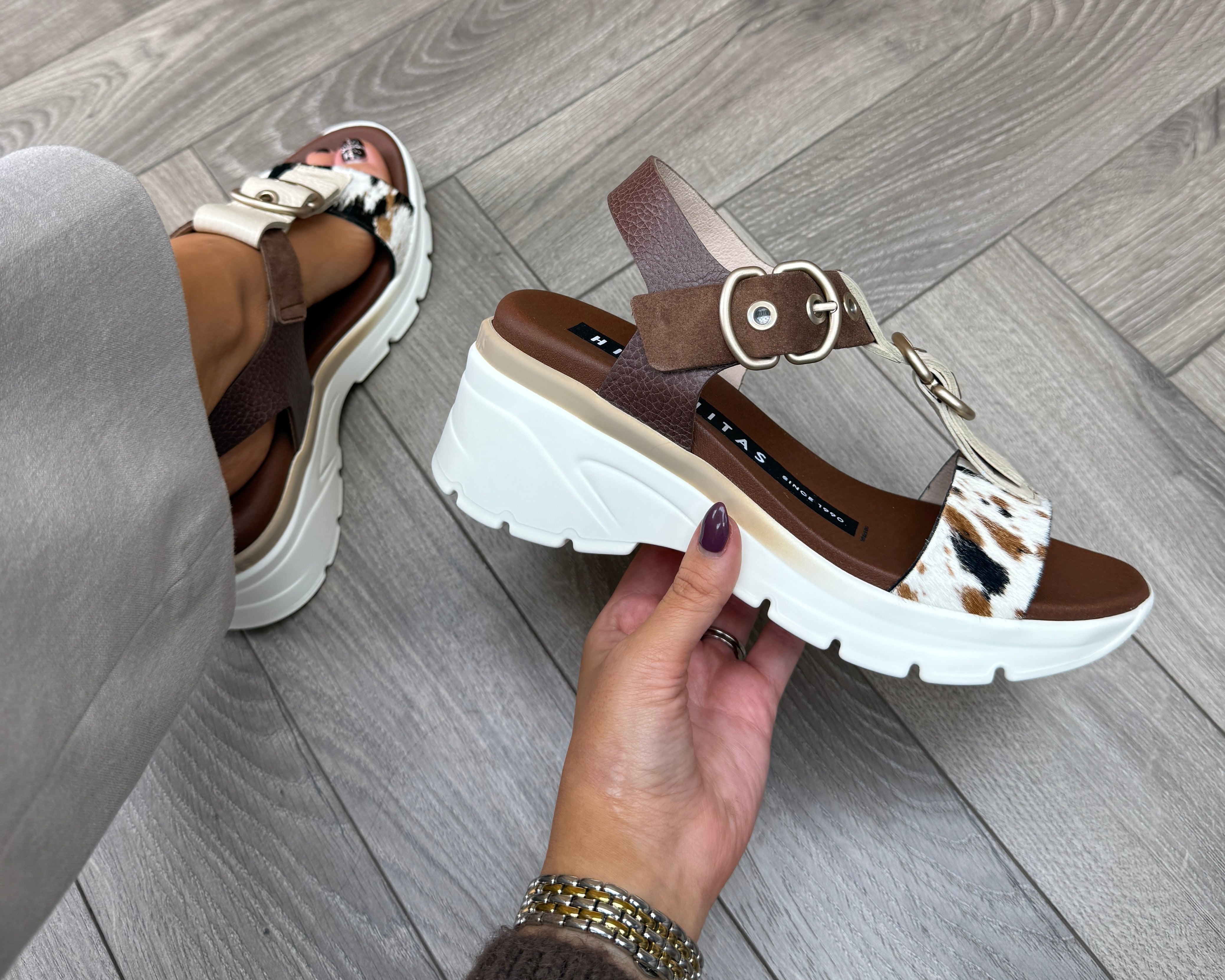 Hispanitas (SS26) CHV264799 Wedge T-Bar Sandal With Cow Print - Multi/Butter (HI21)