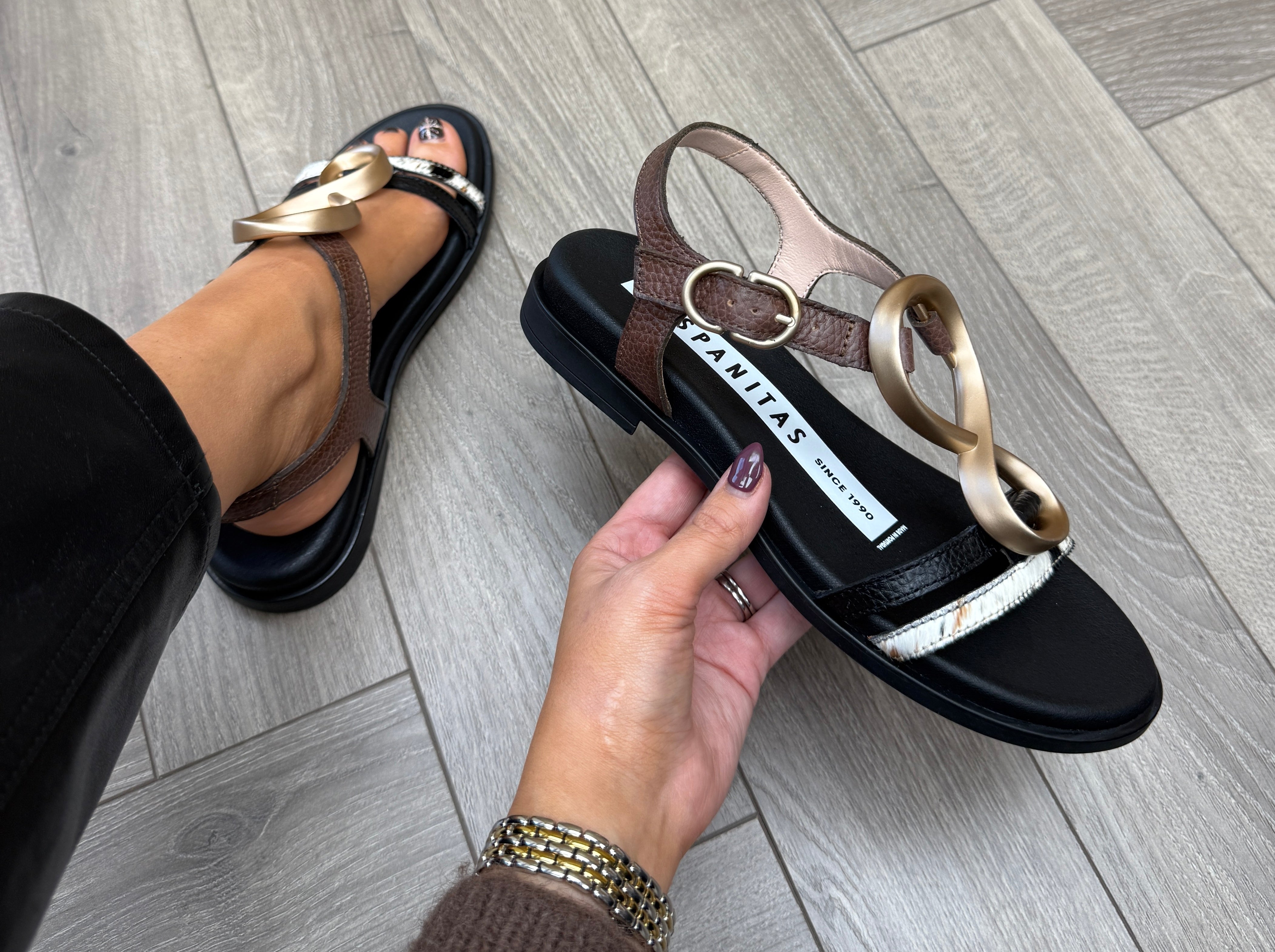 Hispanitas (SS26) CHV264765 Sandal With Gold Front Design - Multi/Black (HI22)