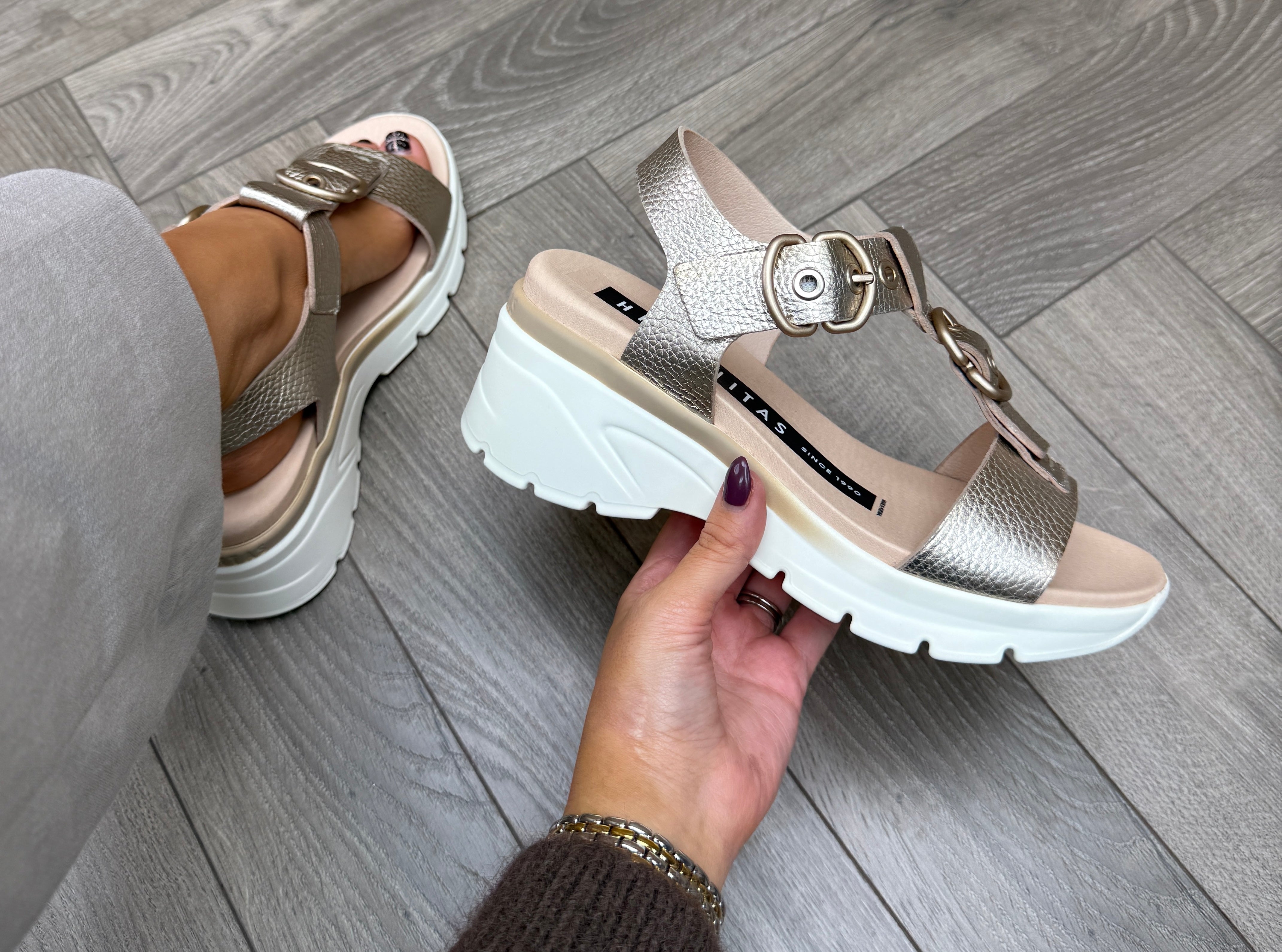 Hispanitas (SS26) HV264799 Metallic Wedge Sandal (HI25) - Cava