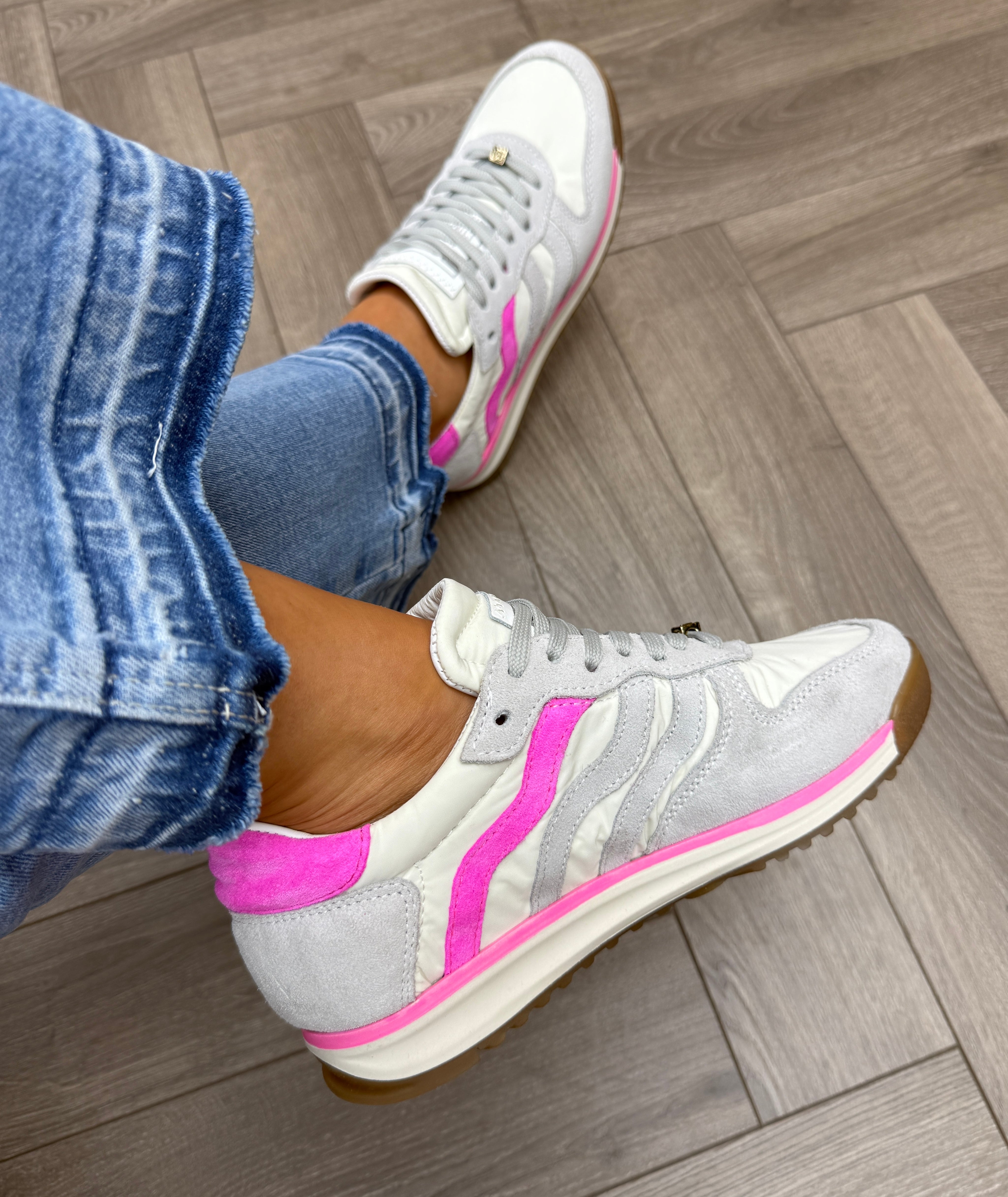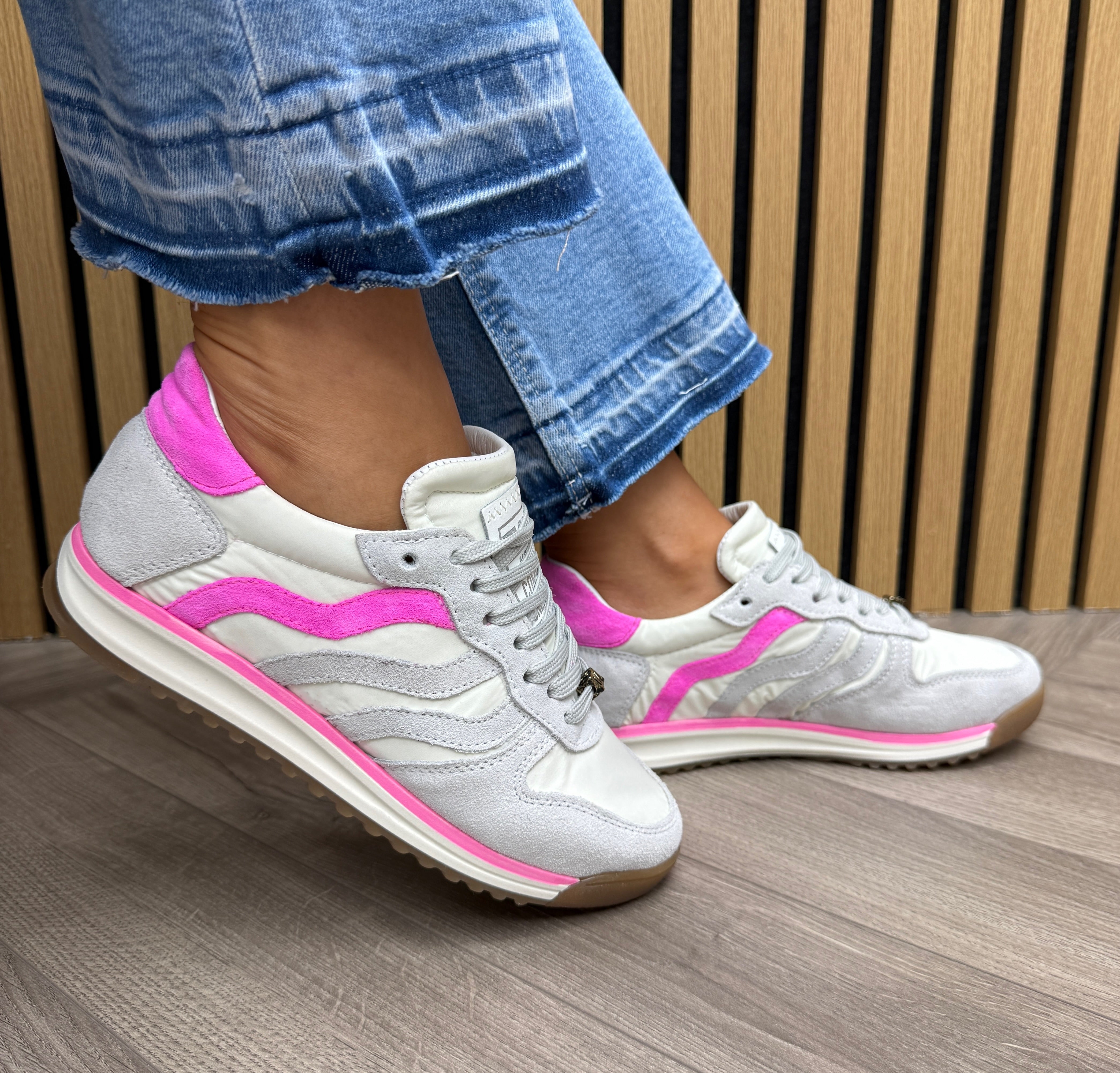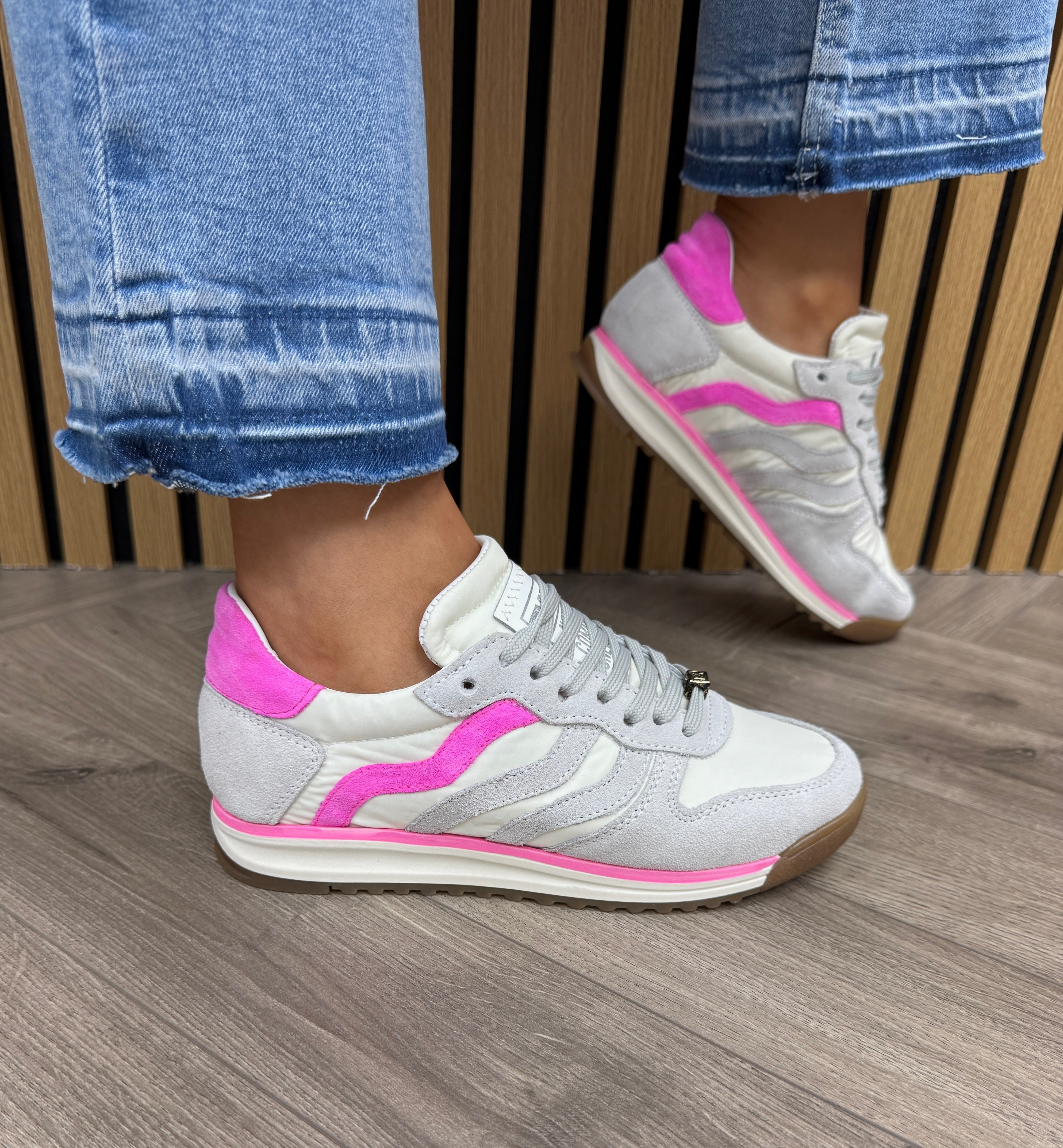 Meline Var S-509 Trainer with Hot Pink Trim - Velour Ghiaccio/Offwhite/Fux (ME6)