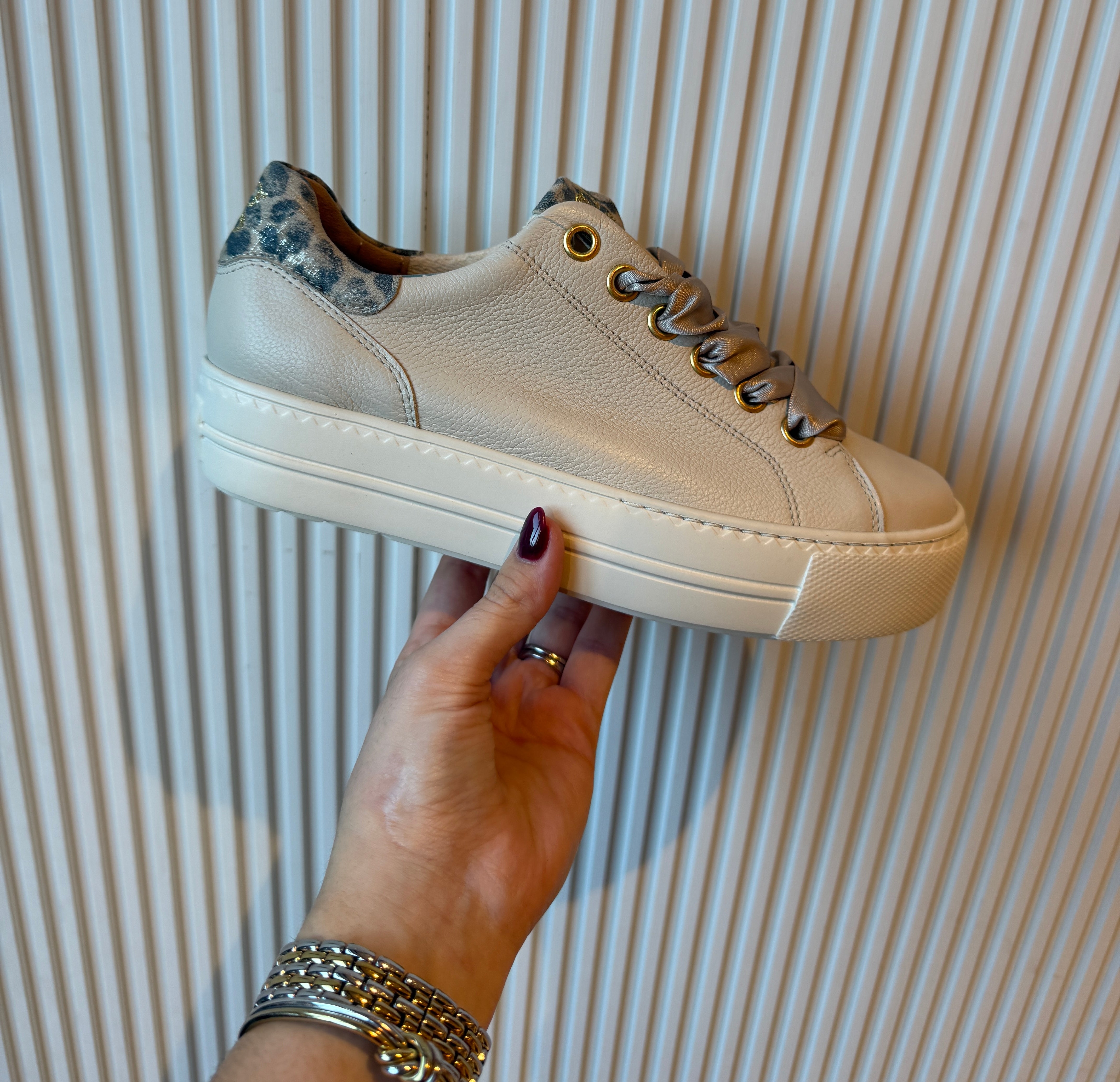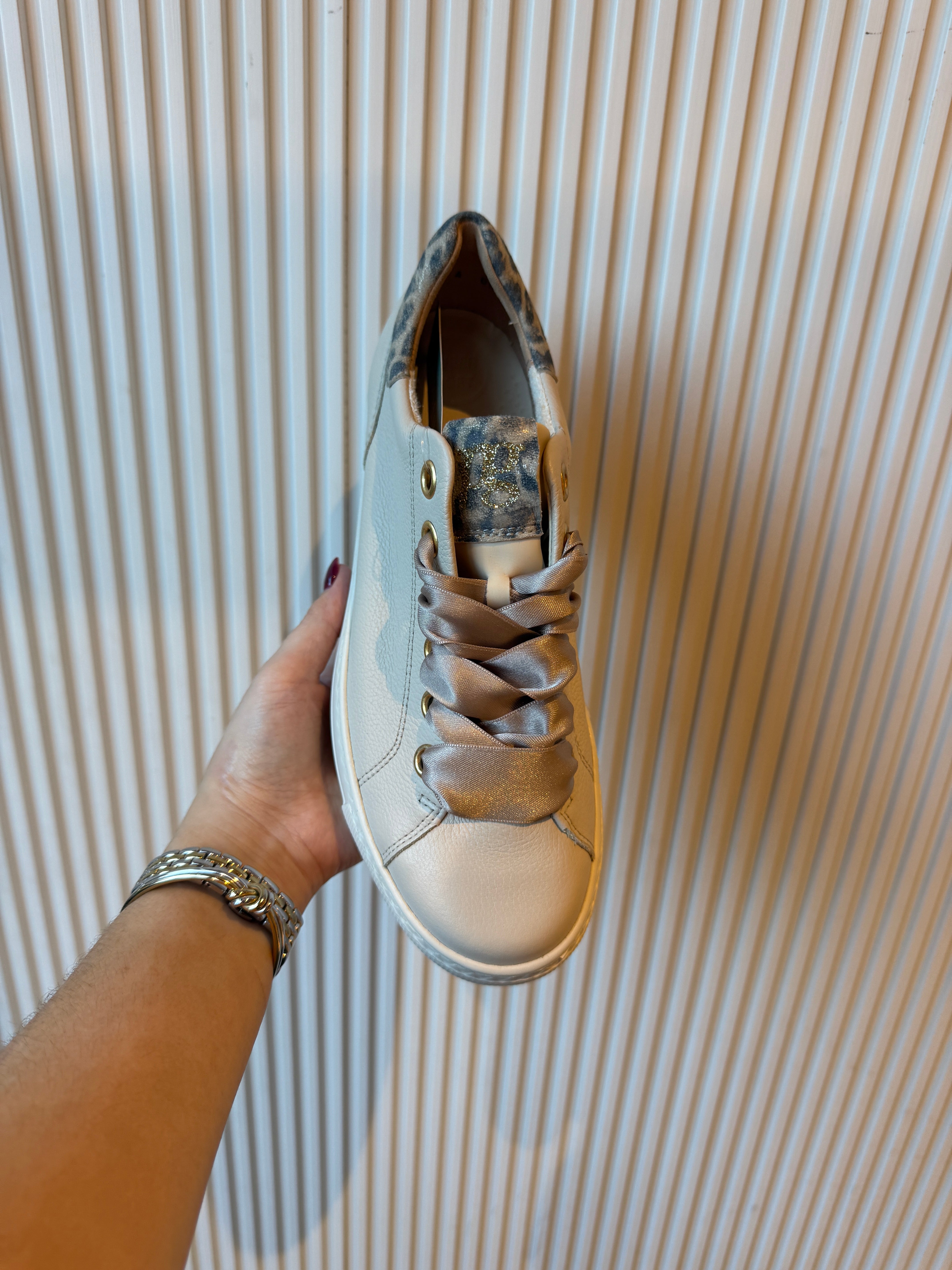 Paul Green (PGAW6) 5520-01 Platform Trainer with Ribbon Lace And Leopard Print Leo/Biscuit/Almond