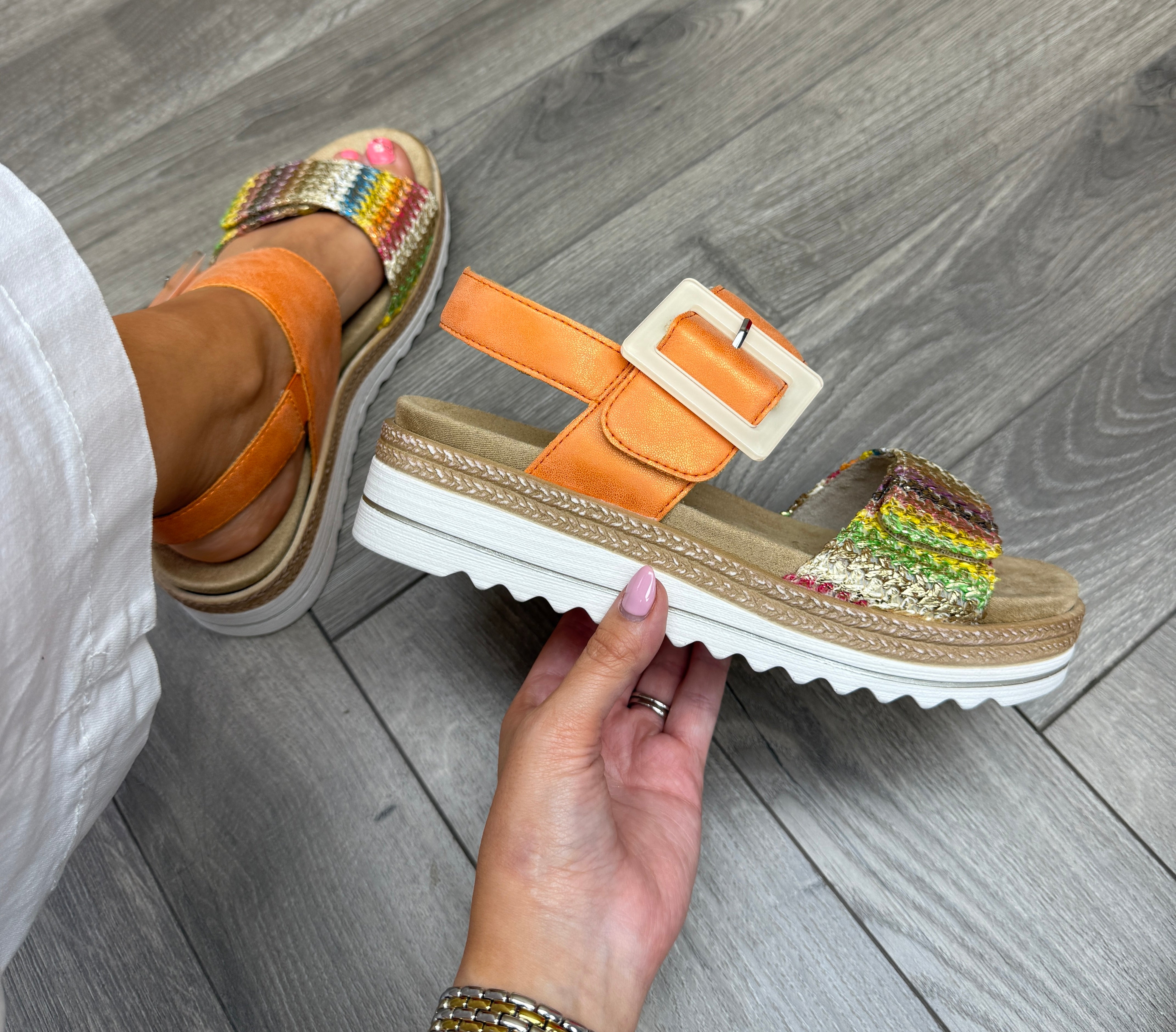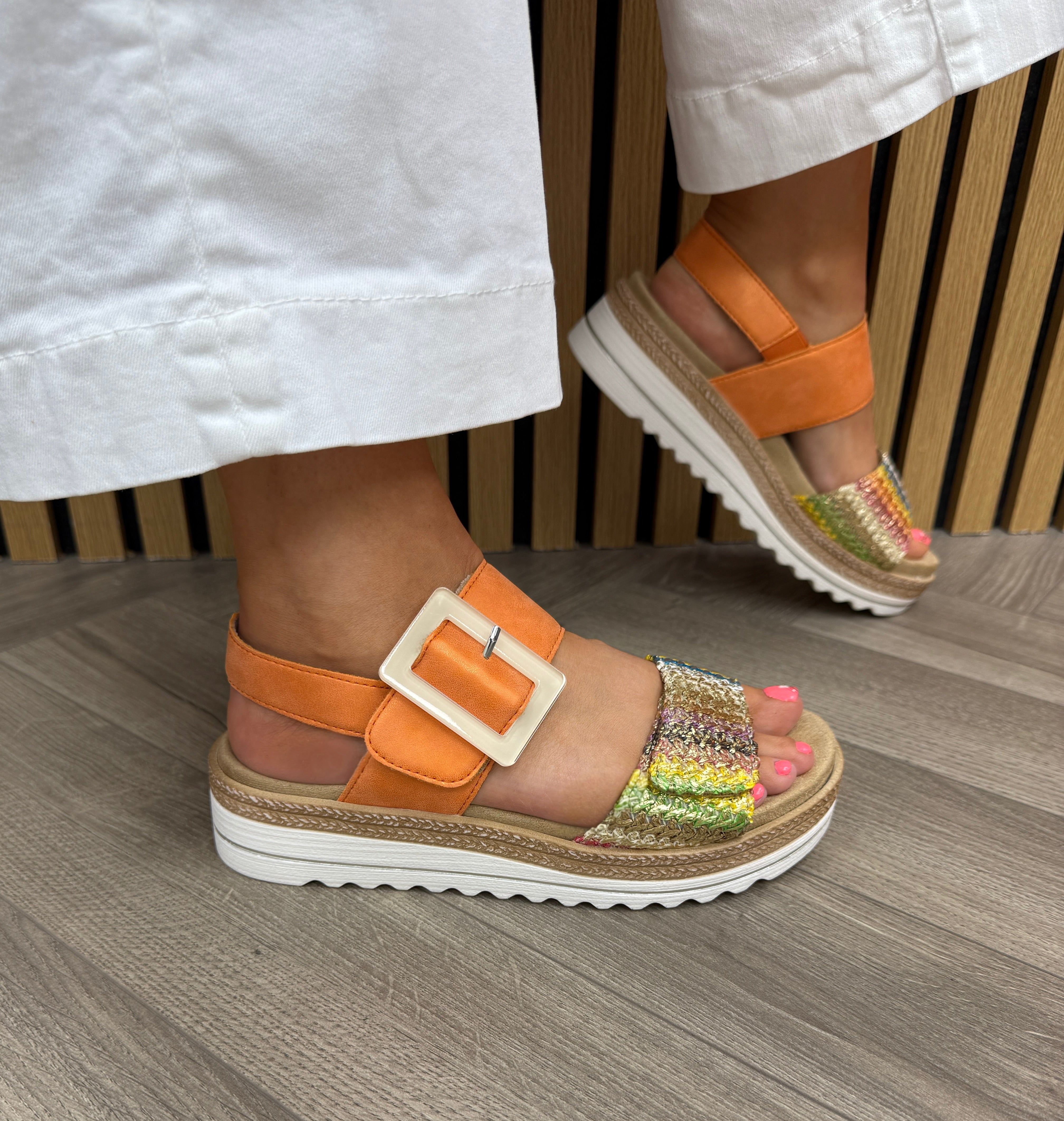 Remonte D0Q62-38 Velcro Strap Sandal with Woven Front - Orange (REM22)