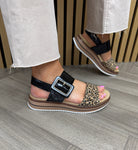 Remonte D1J53-04 Velcro Strap Sandal (REM15)- Black Combi