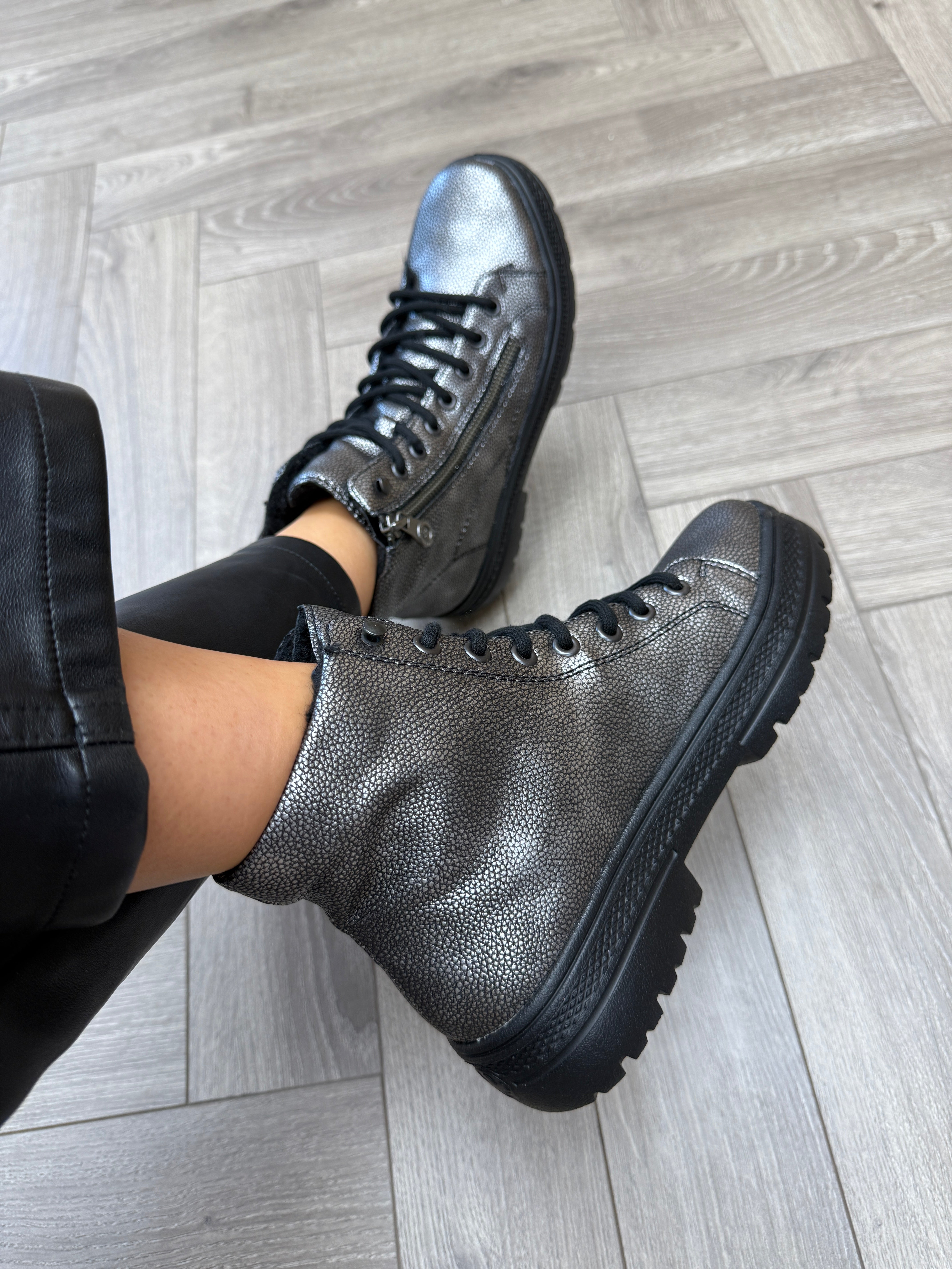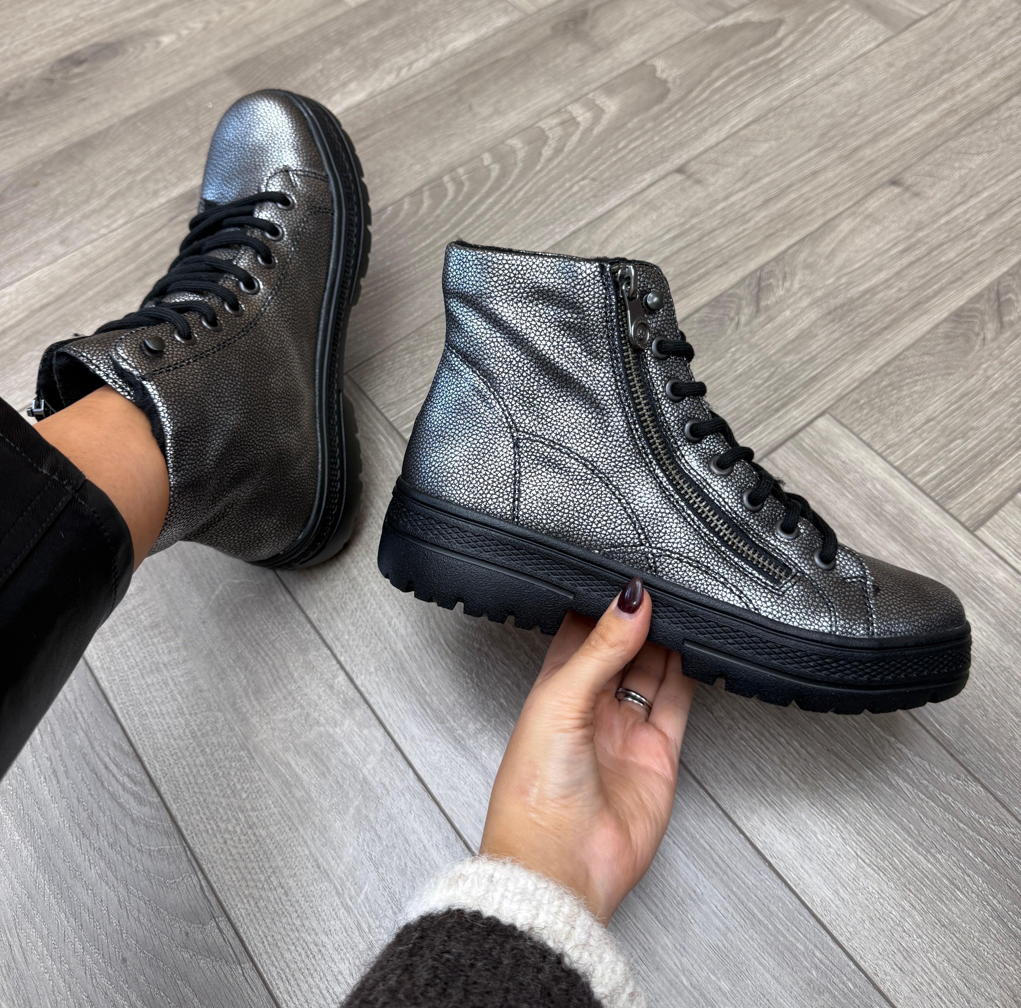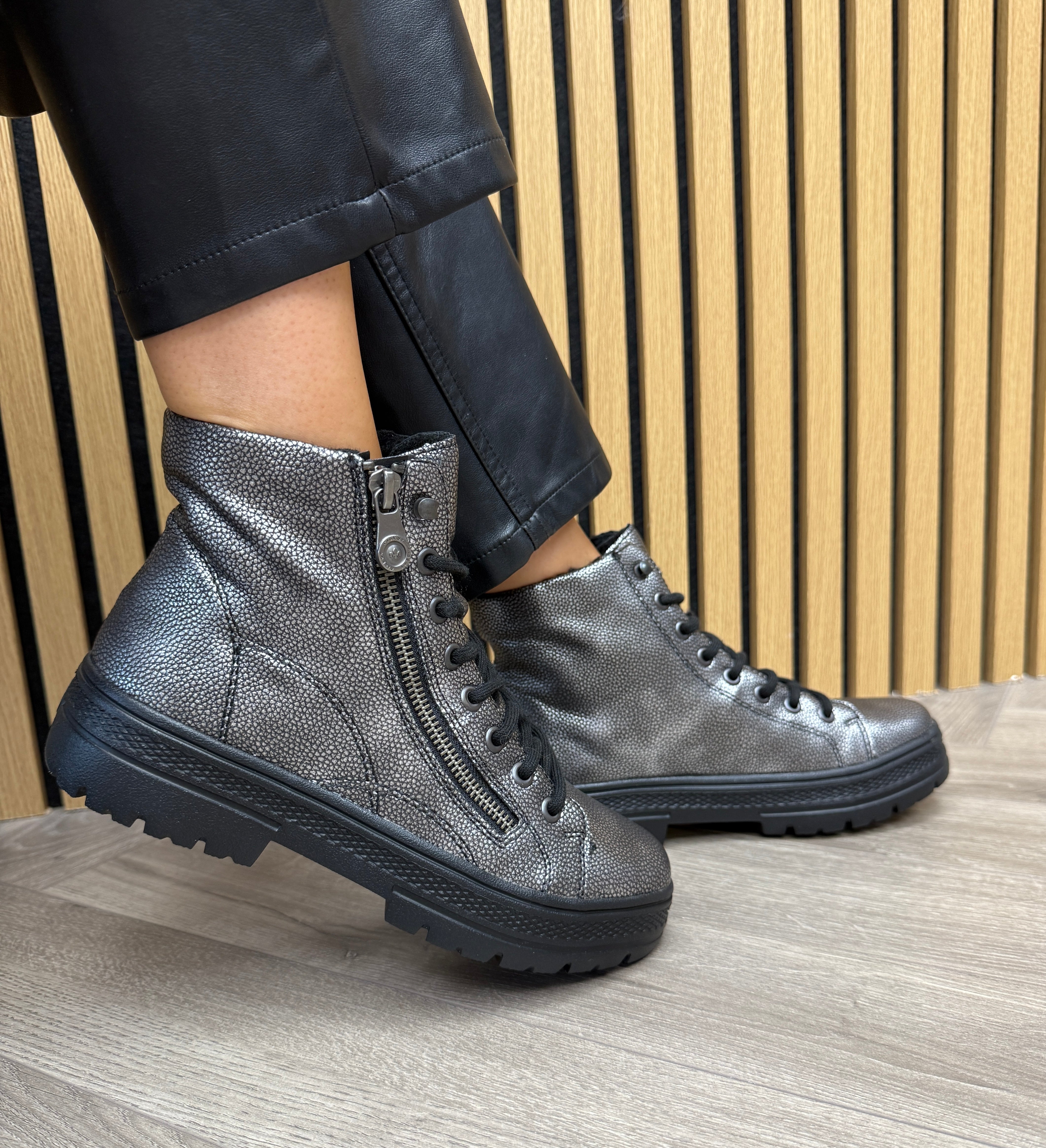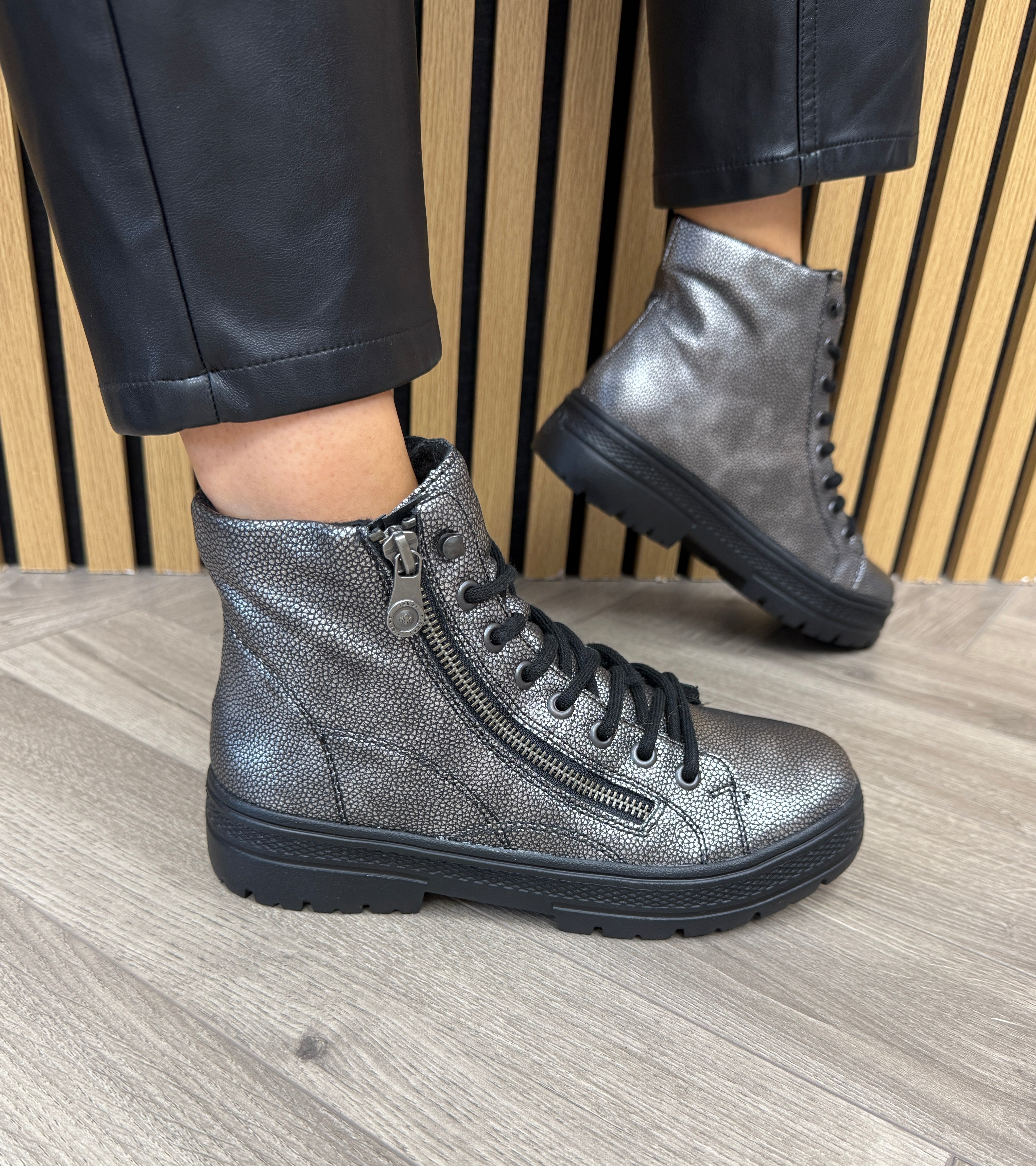 Rieker N0031-90 Metallic High Top Trainer - Sliver (R93)