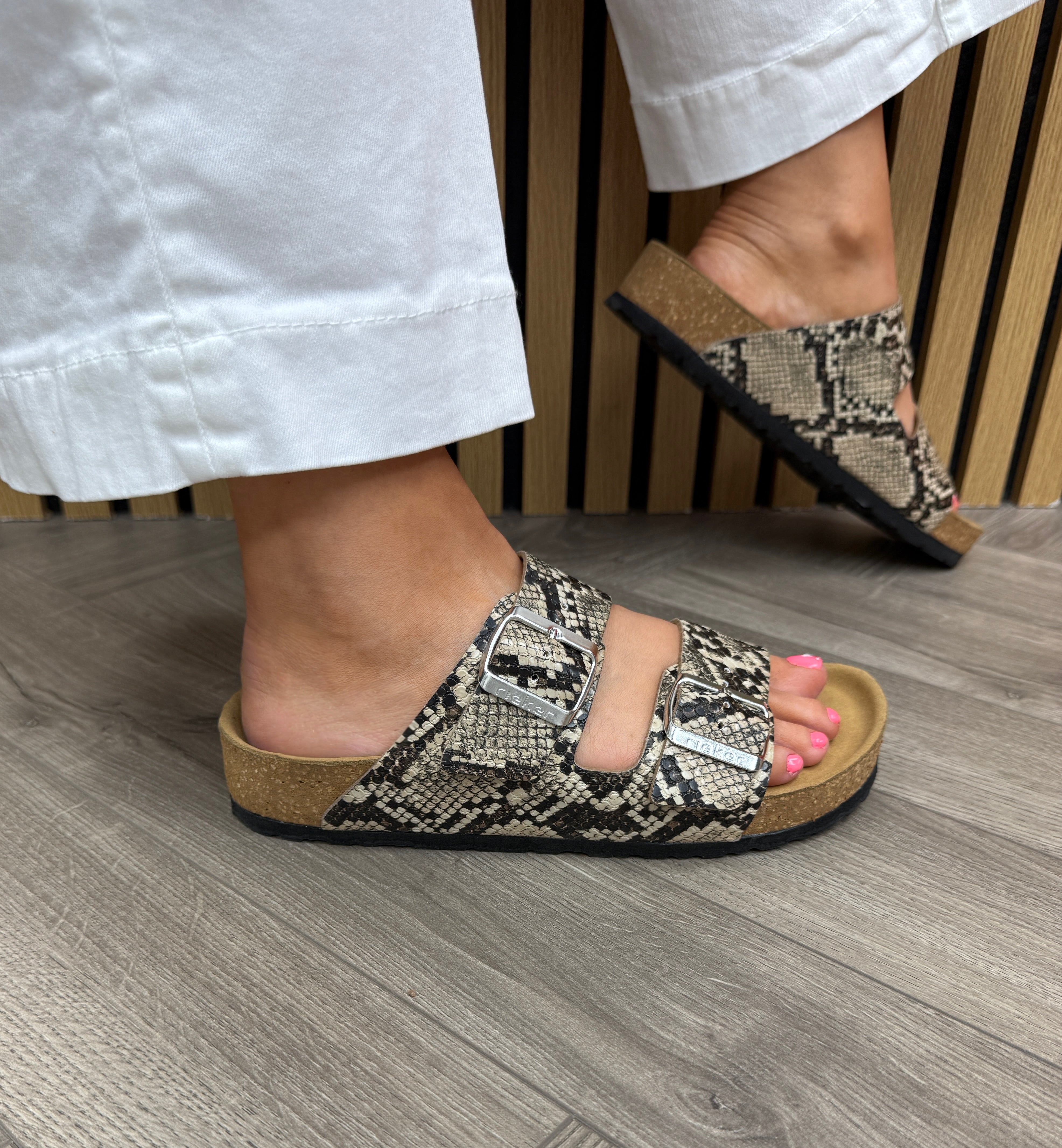 Rieker (RI59) Snake Print Slider V6391-20 - Beige Combination