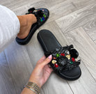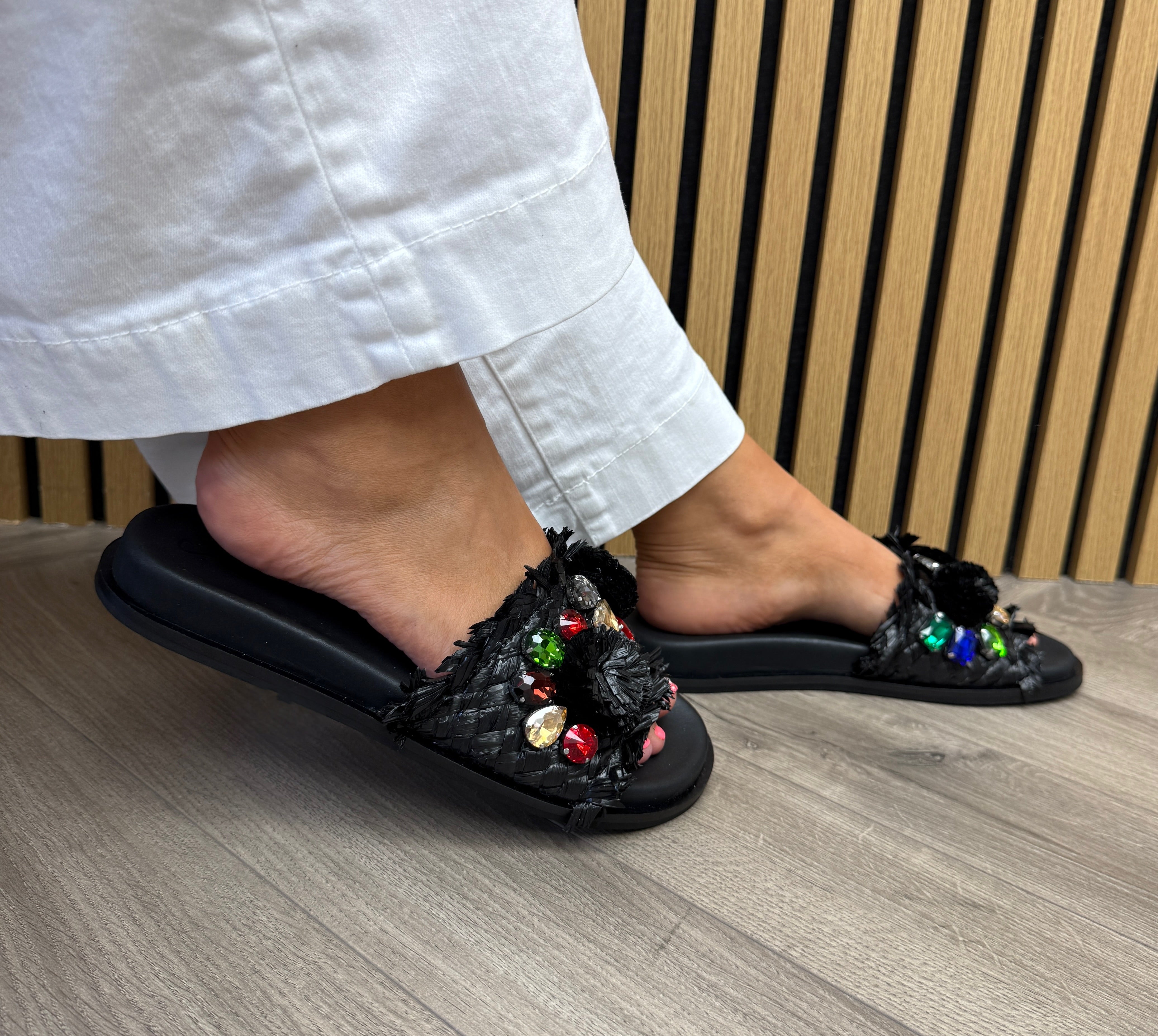 S.Piero ‘E114-004’ Leather Woven Slider with Diamonds - Black Raffia (SP3)