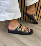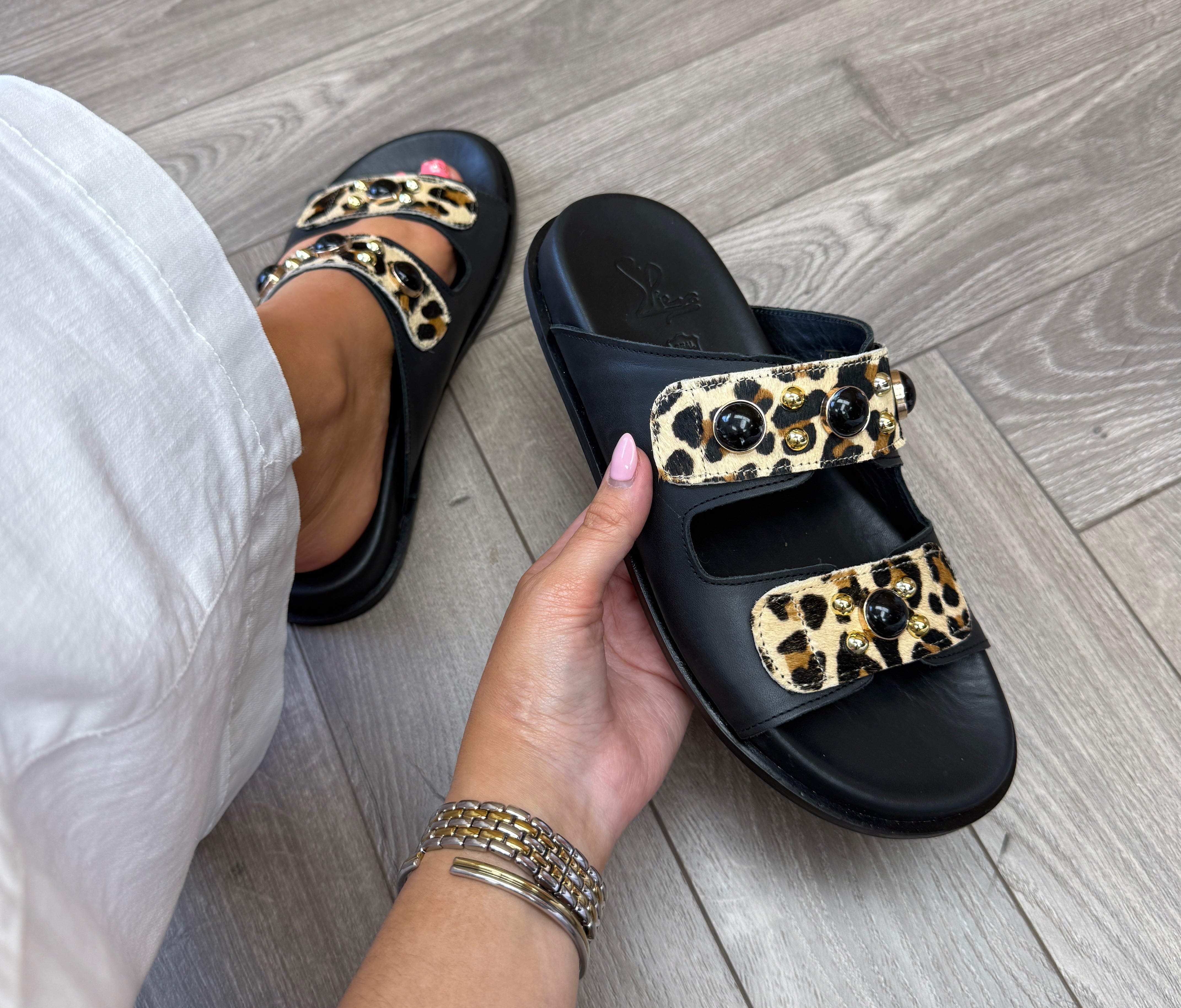 S.Piero ‘E114-012’ Leather Double Strap Slider with Leopard and Studs - Leooard Pony (SP6)