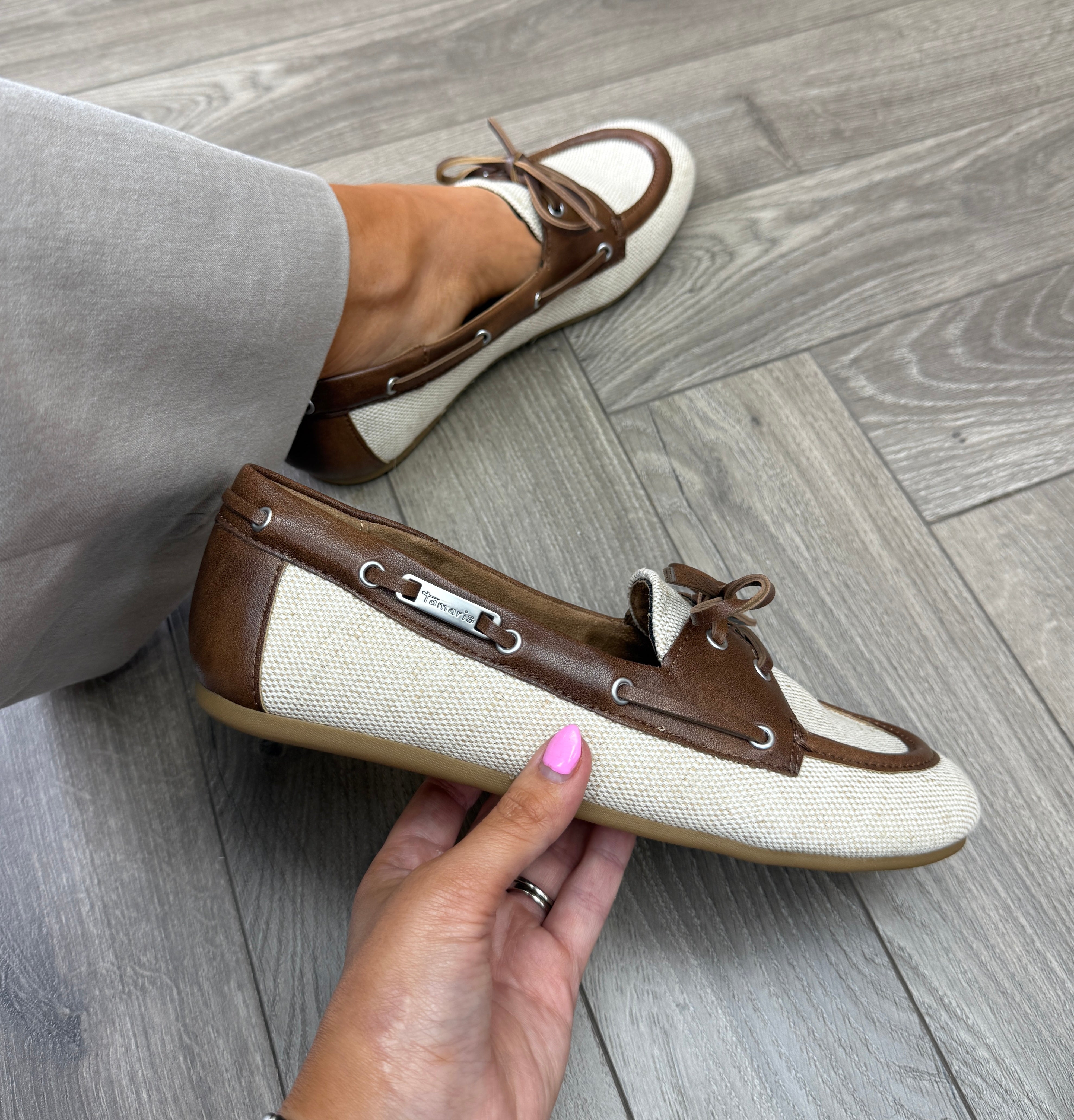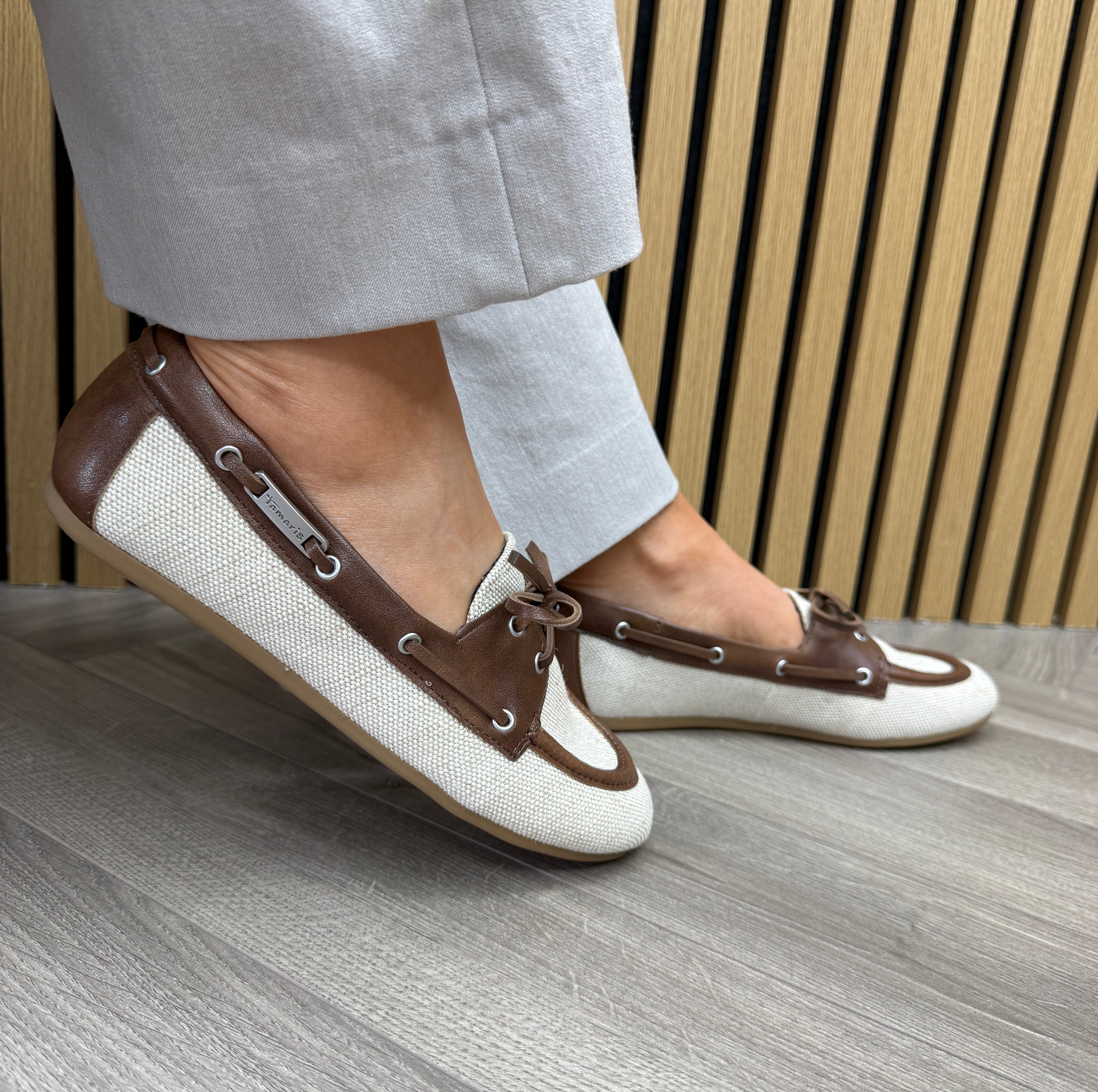 Tamaris 1-23611-46 Linen Boat Shoe - Beige Struct (TA50)