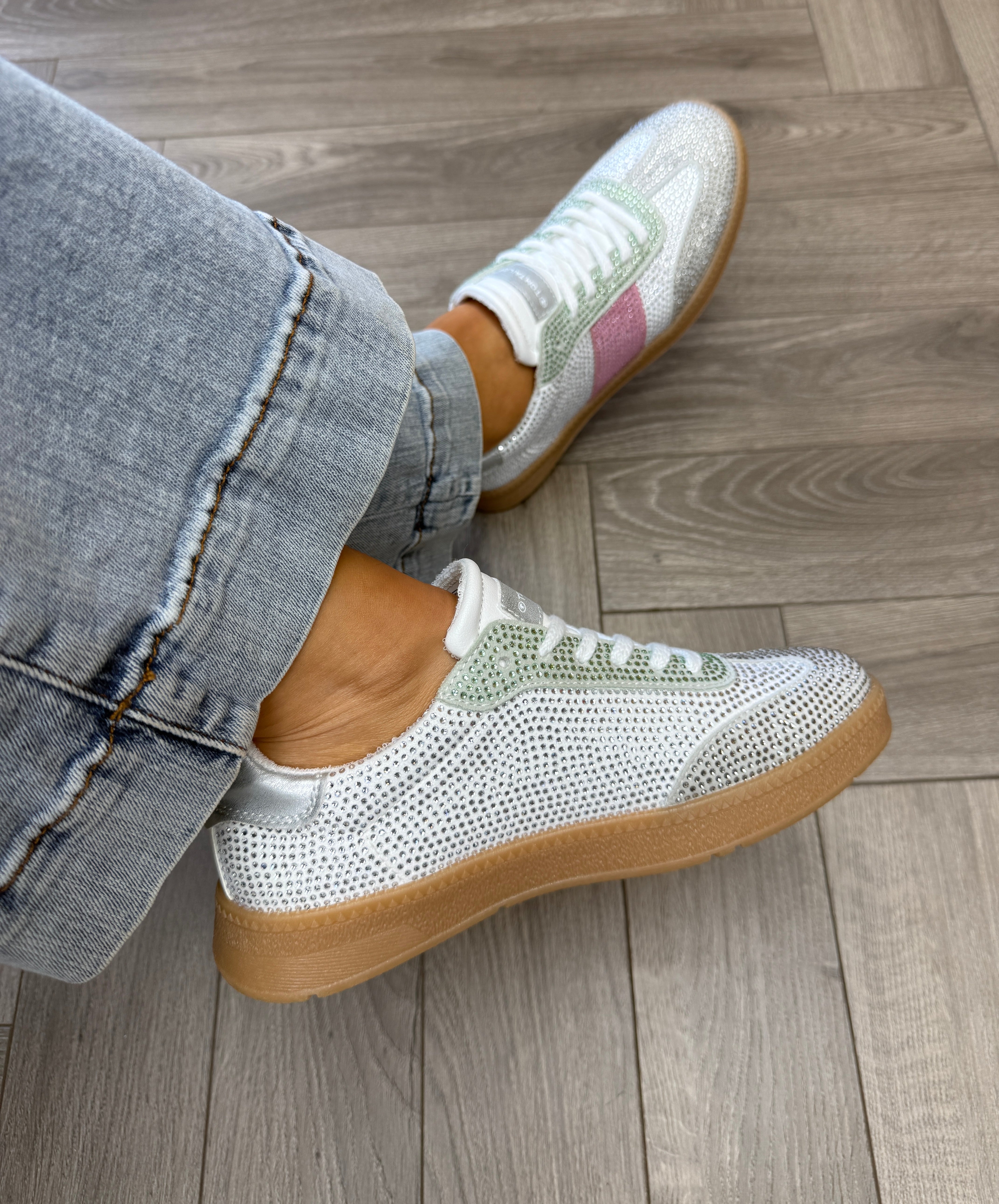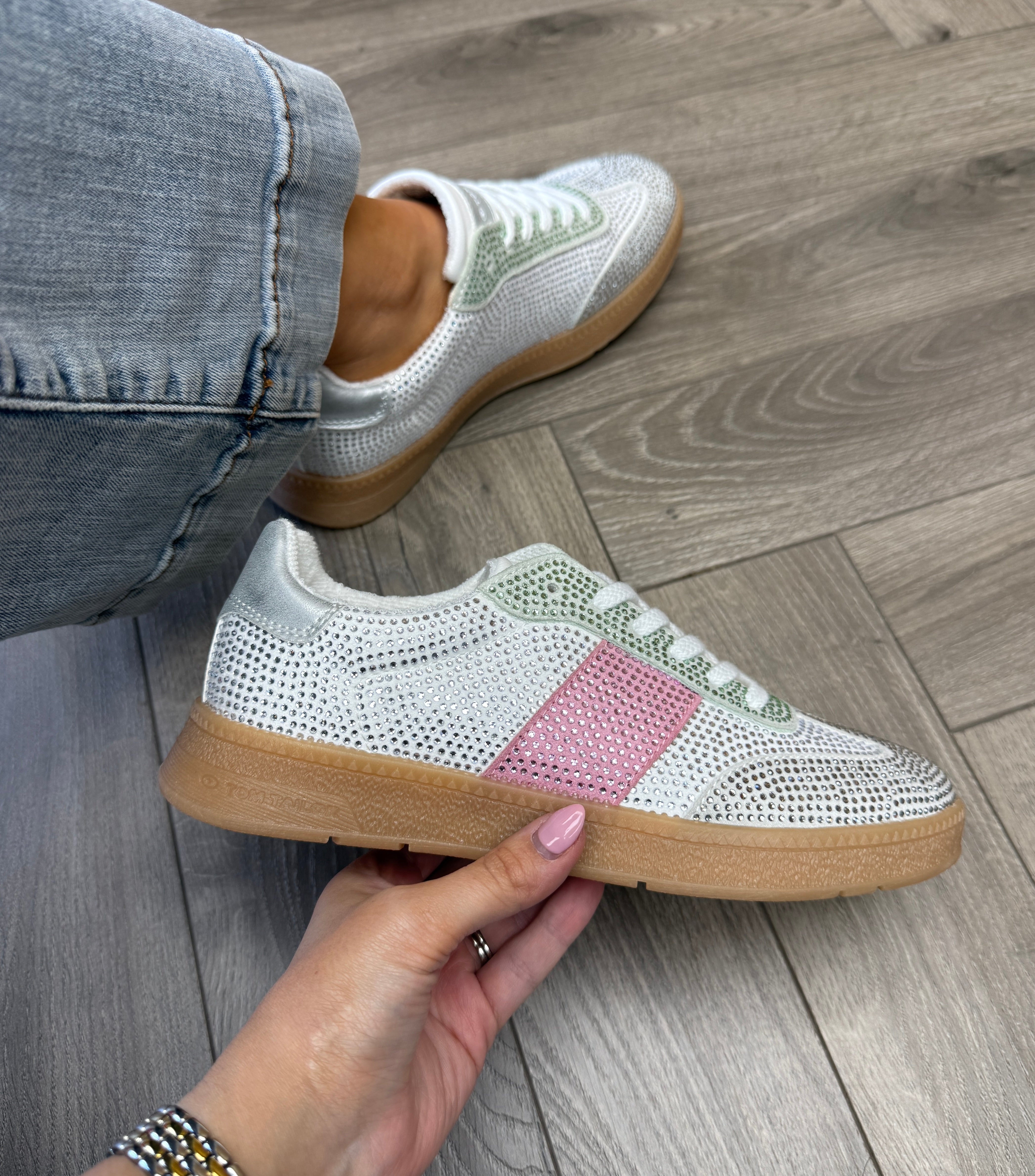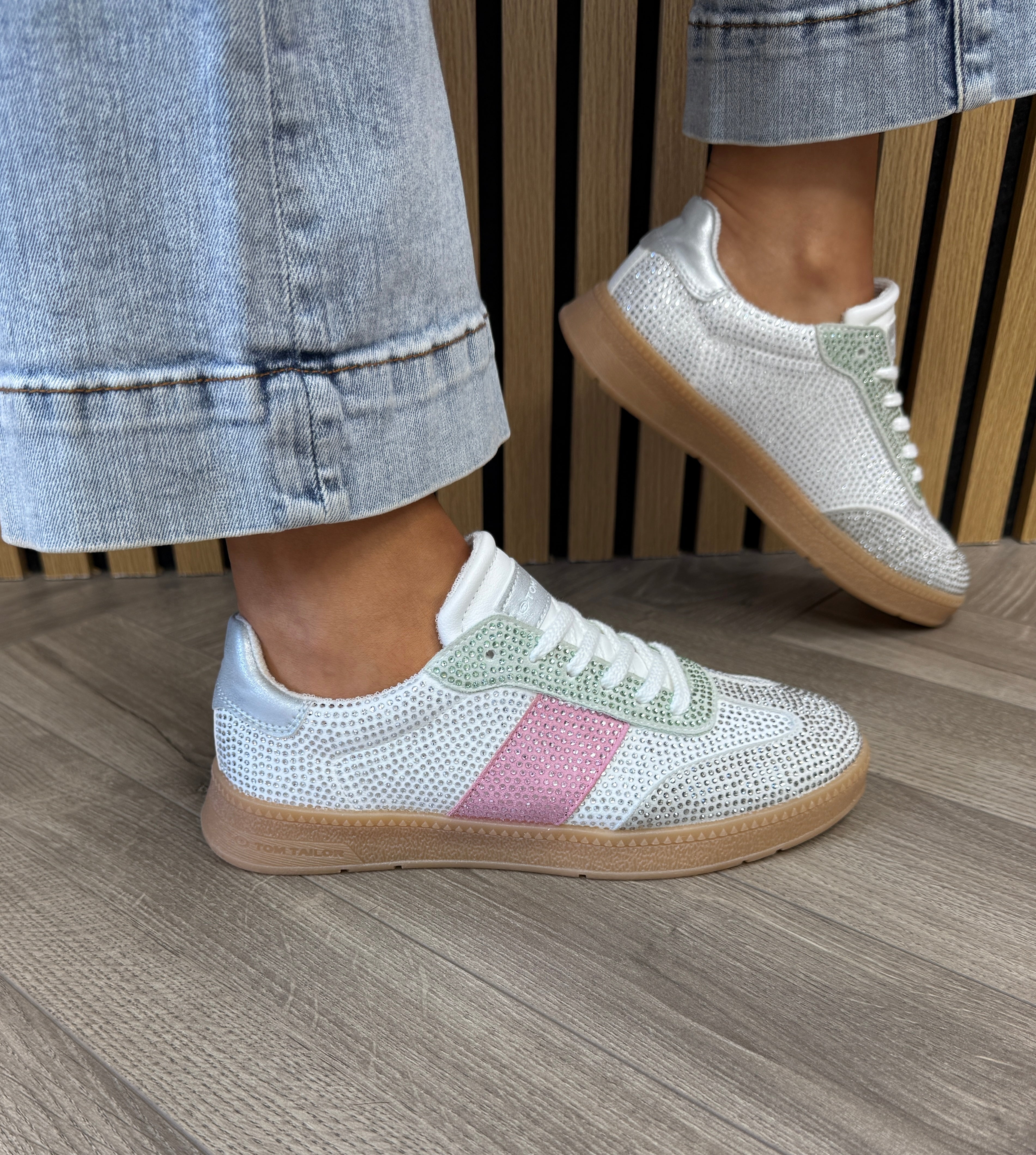 Tom Tailor 959015001700 Gum Sole Diamanté Trainer - Rose-Mint (TT8)