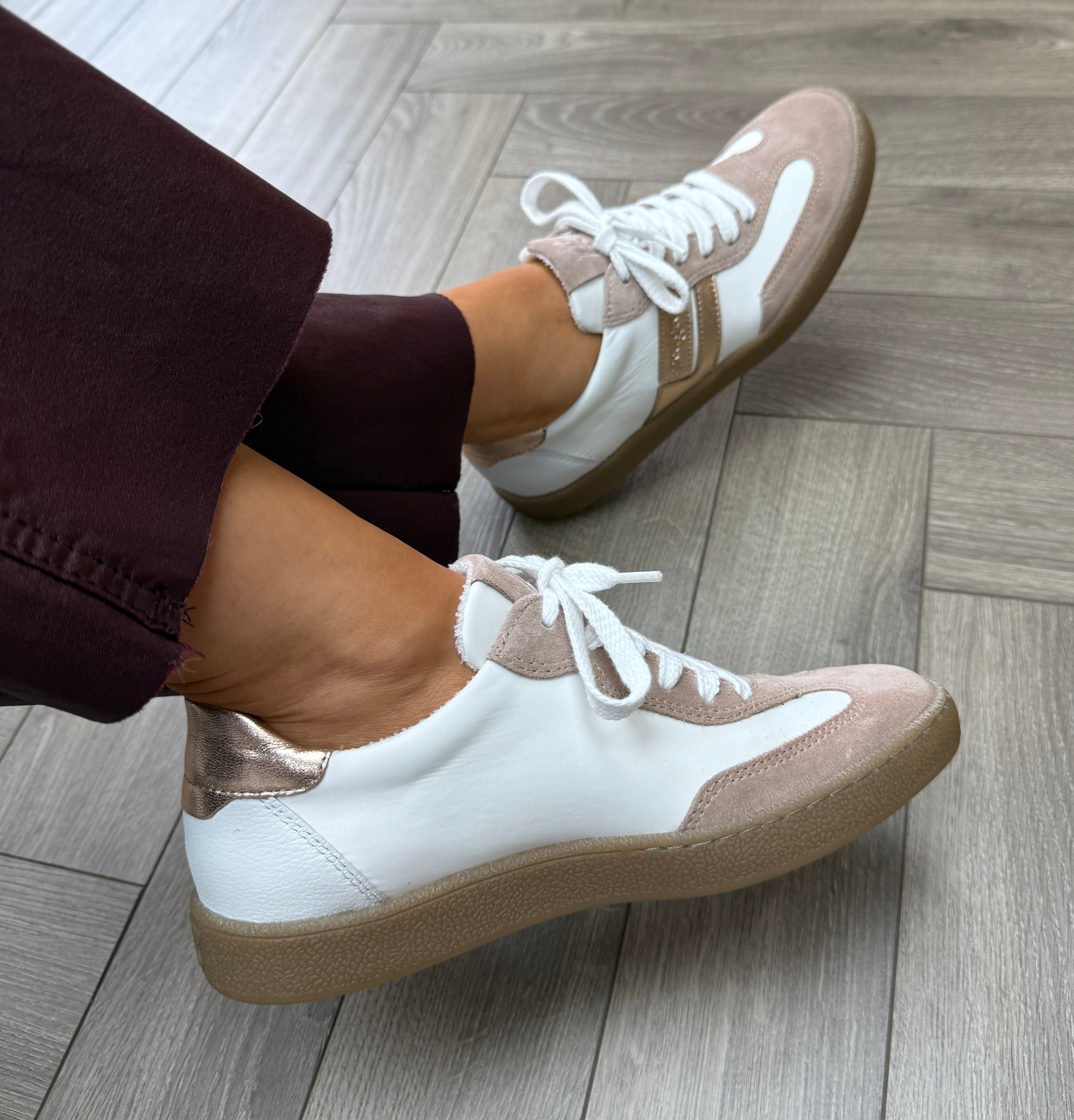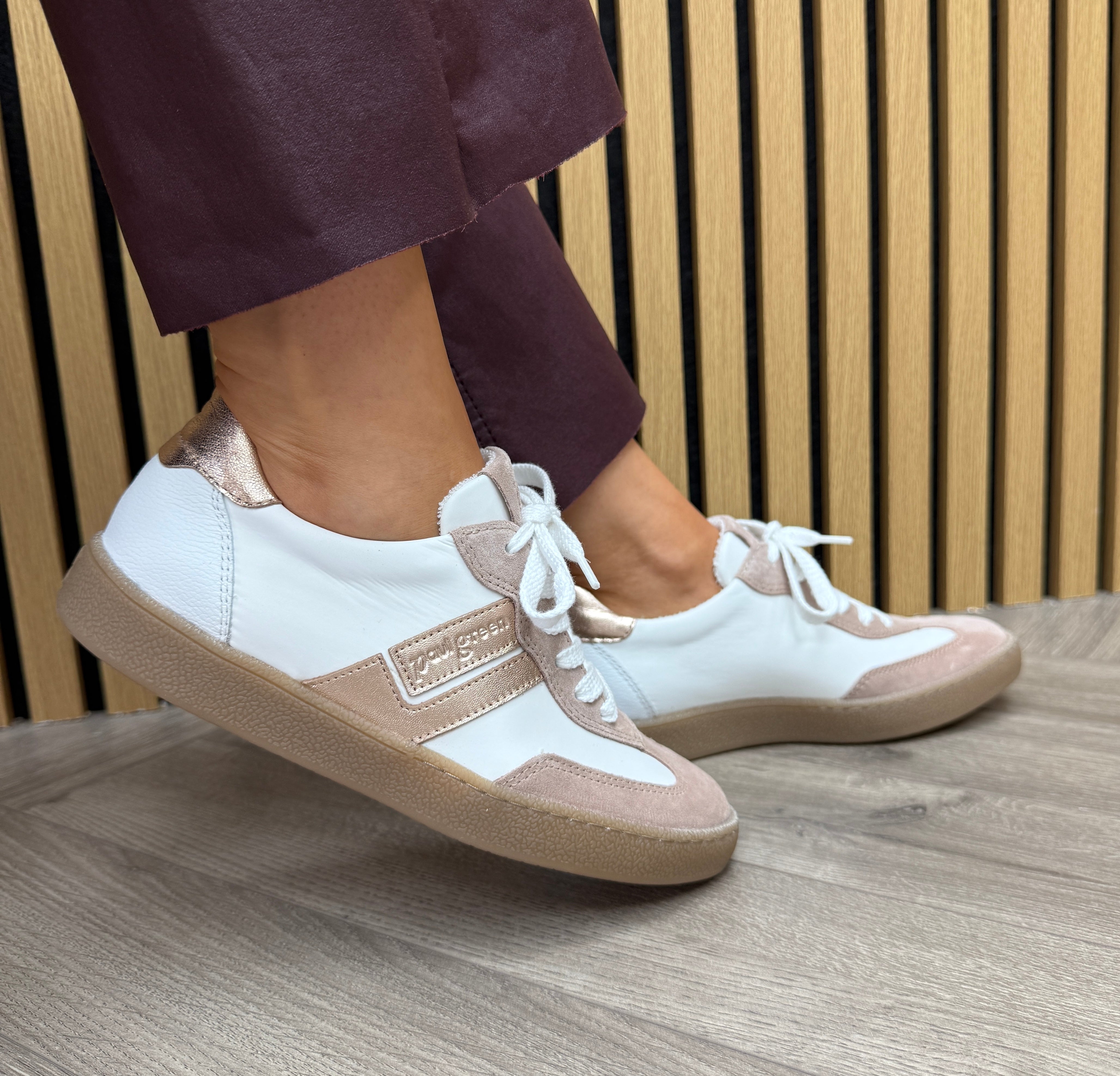 Paul Green (SS26) 5437-119 Gum Sole Trainer With Metallic Detail - S.Suede/TimesPowder/White (PG17)