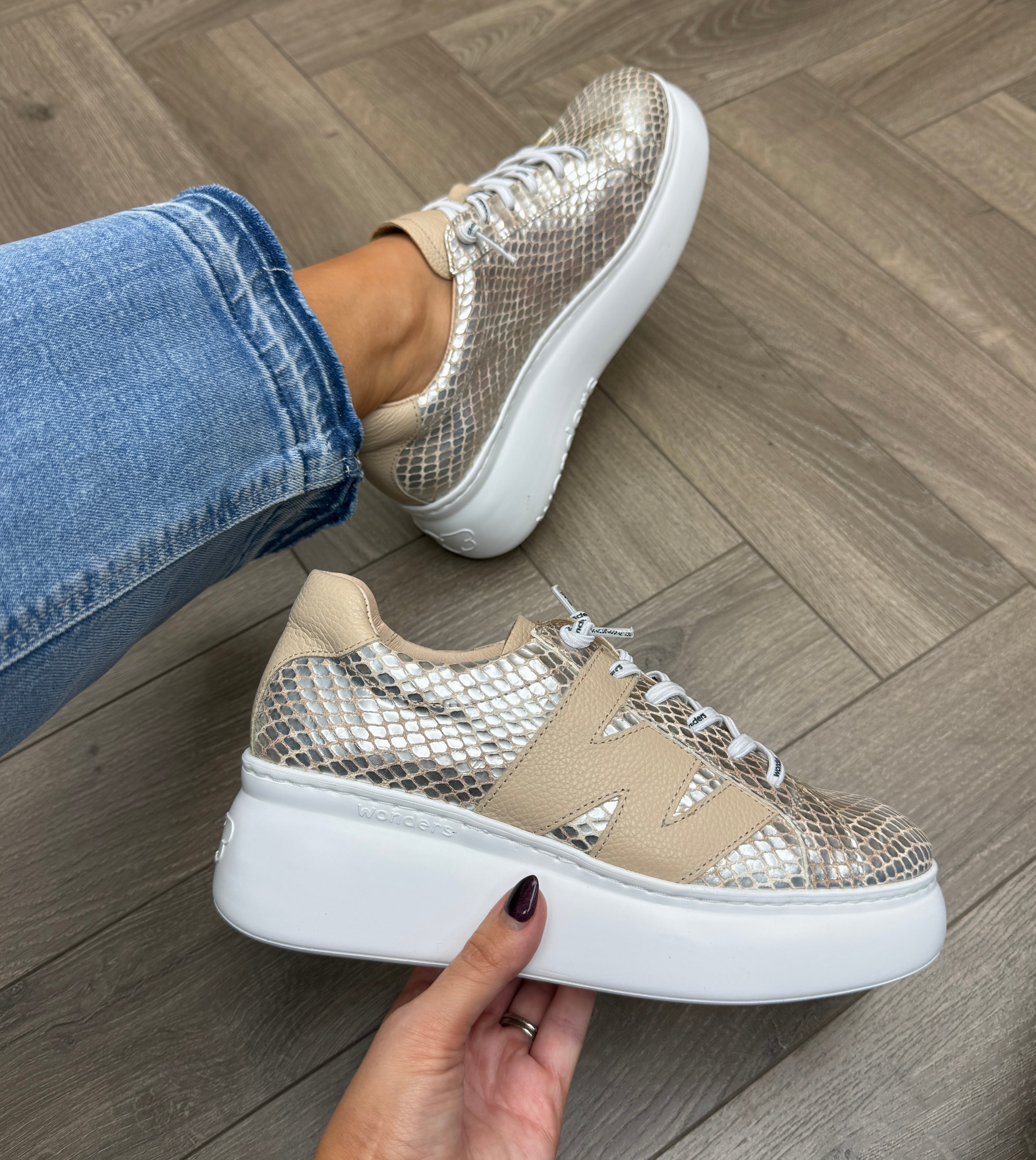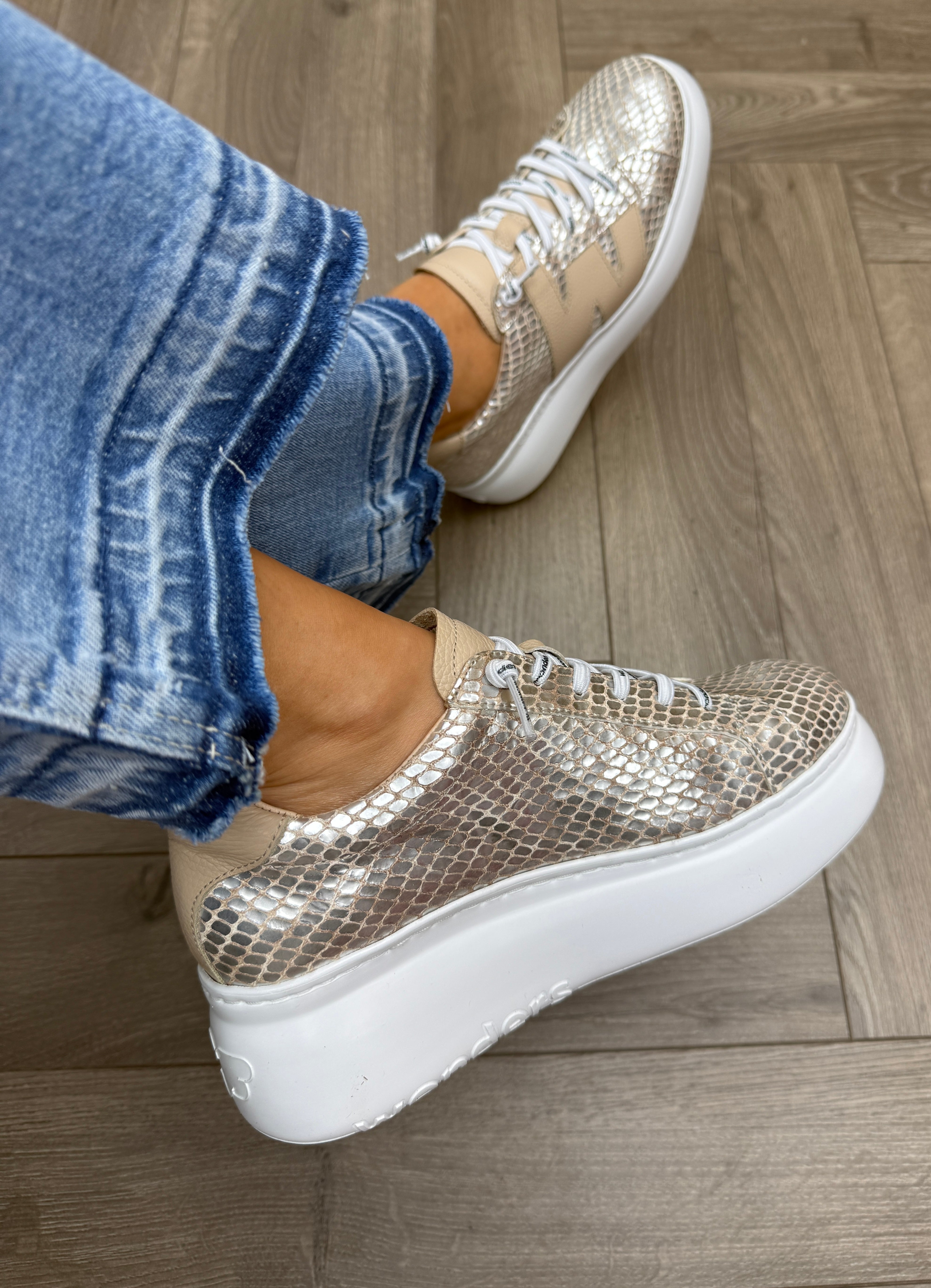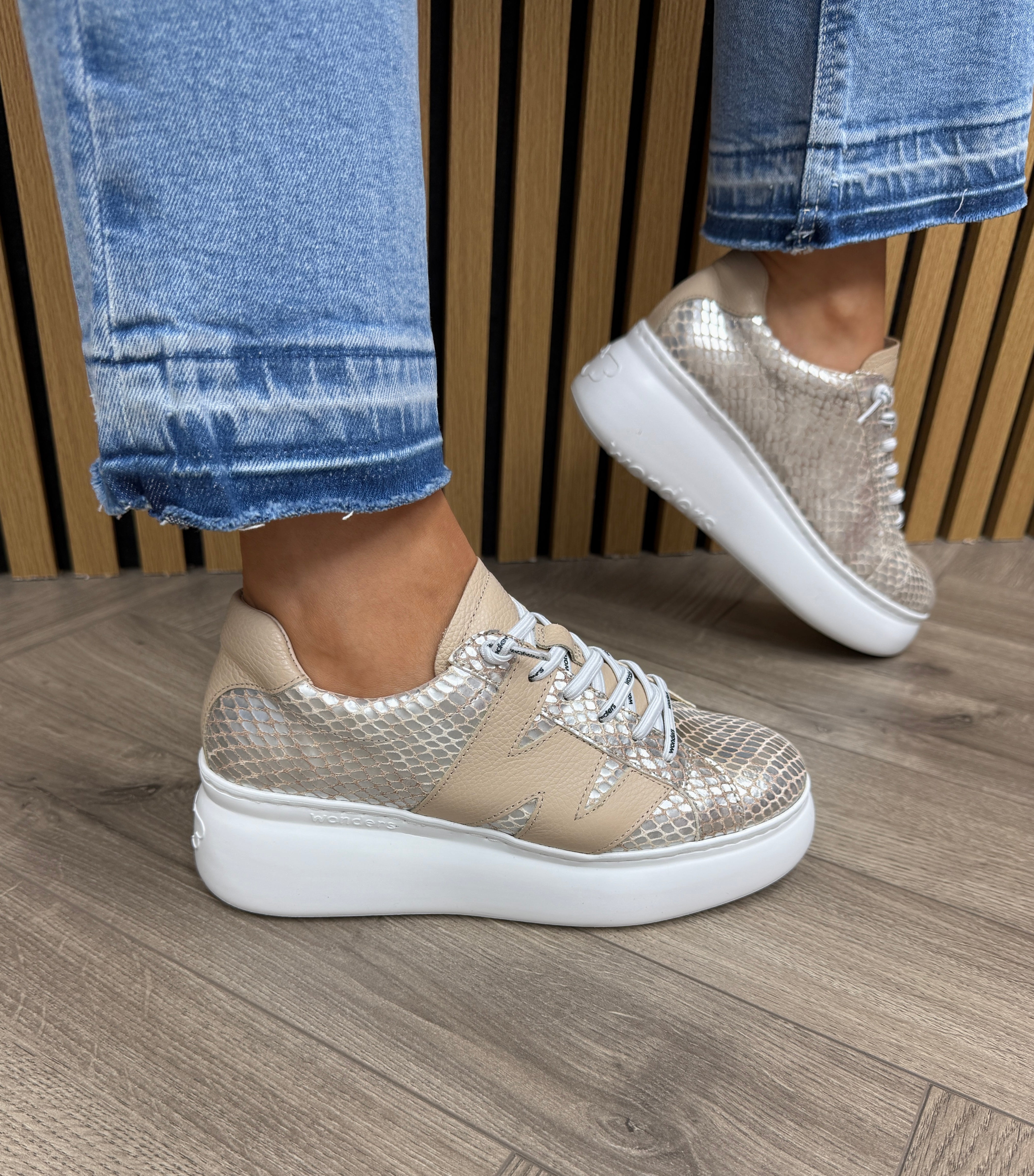 Wonders A-2650 Metallic Snake Print Platform Trainer - Champagne/Beig (W45)