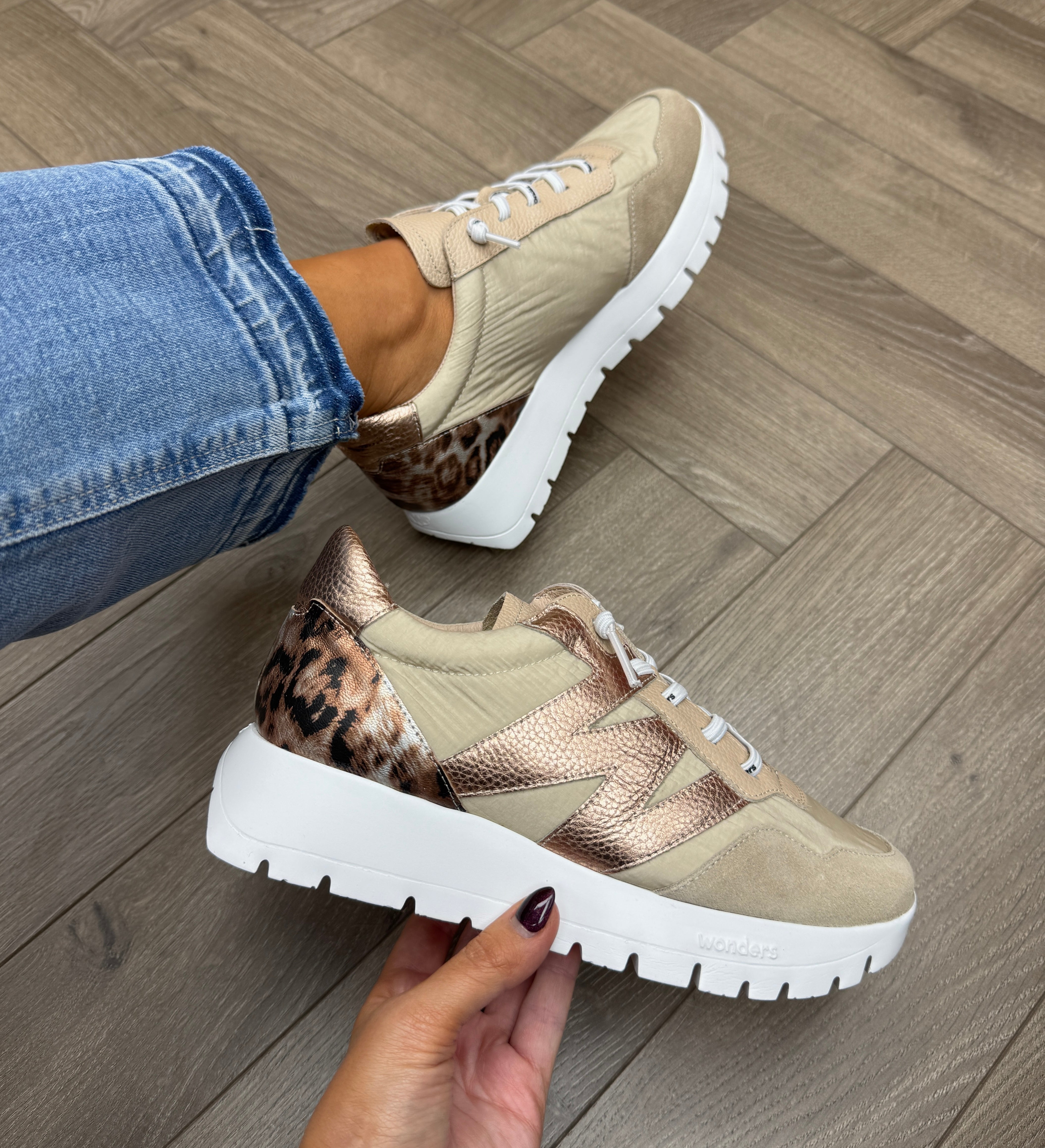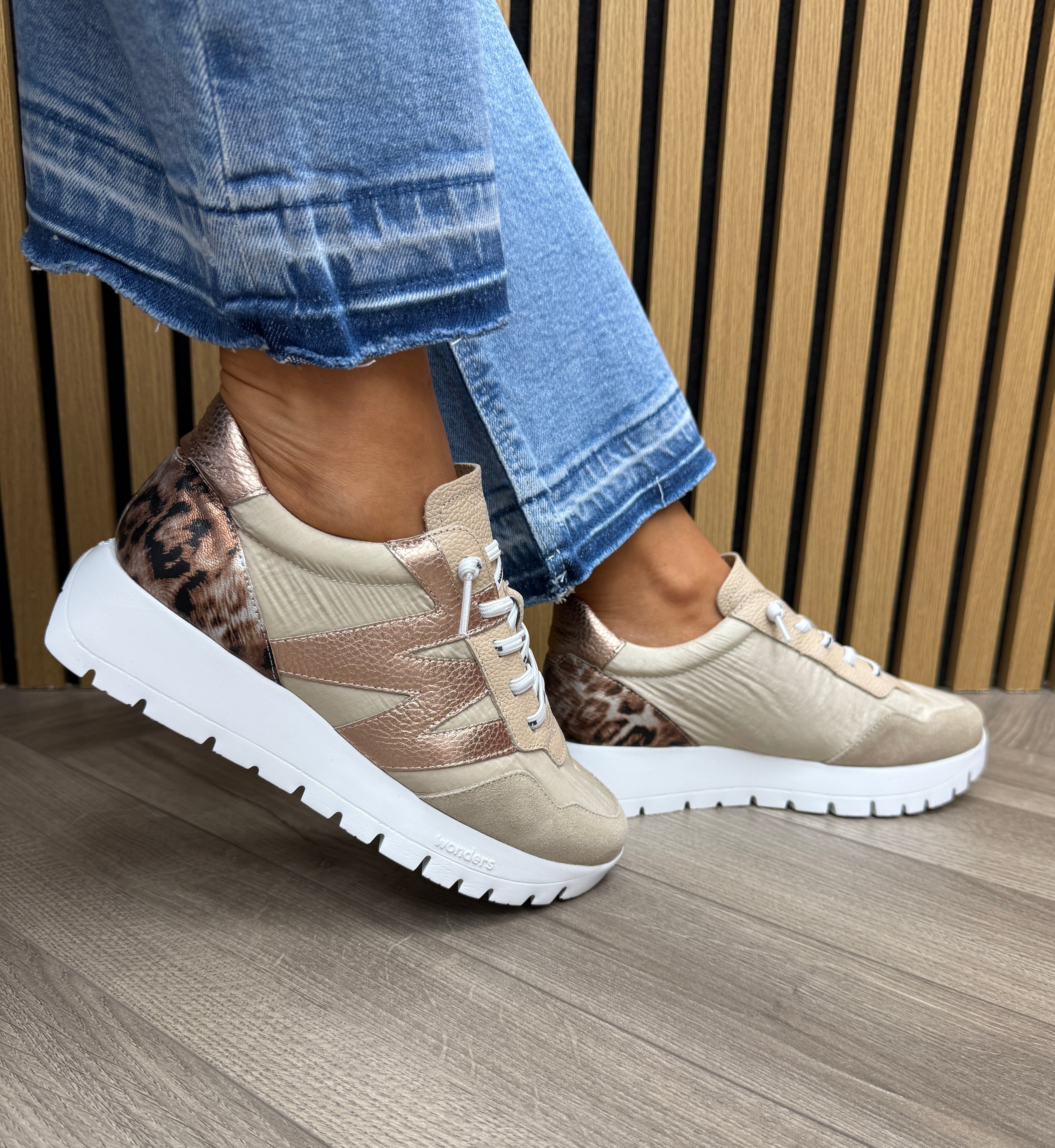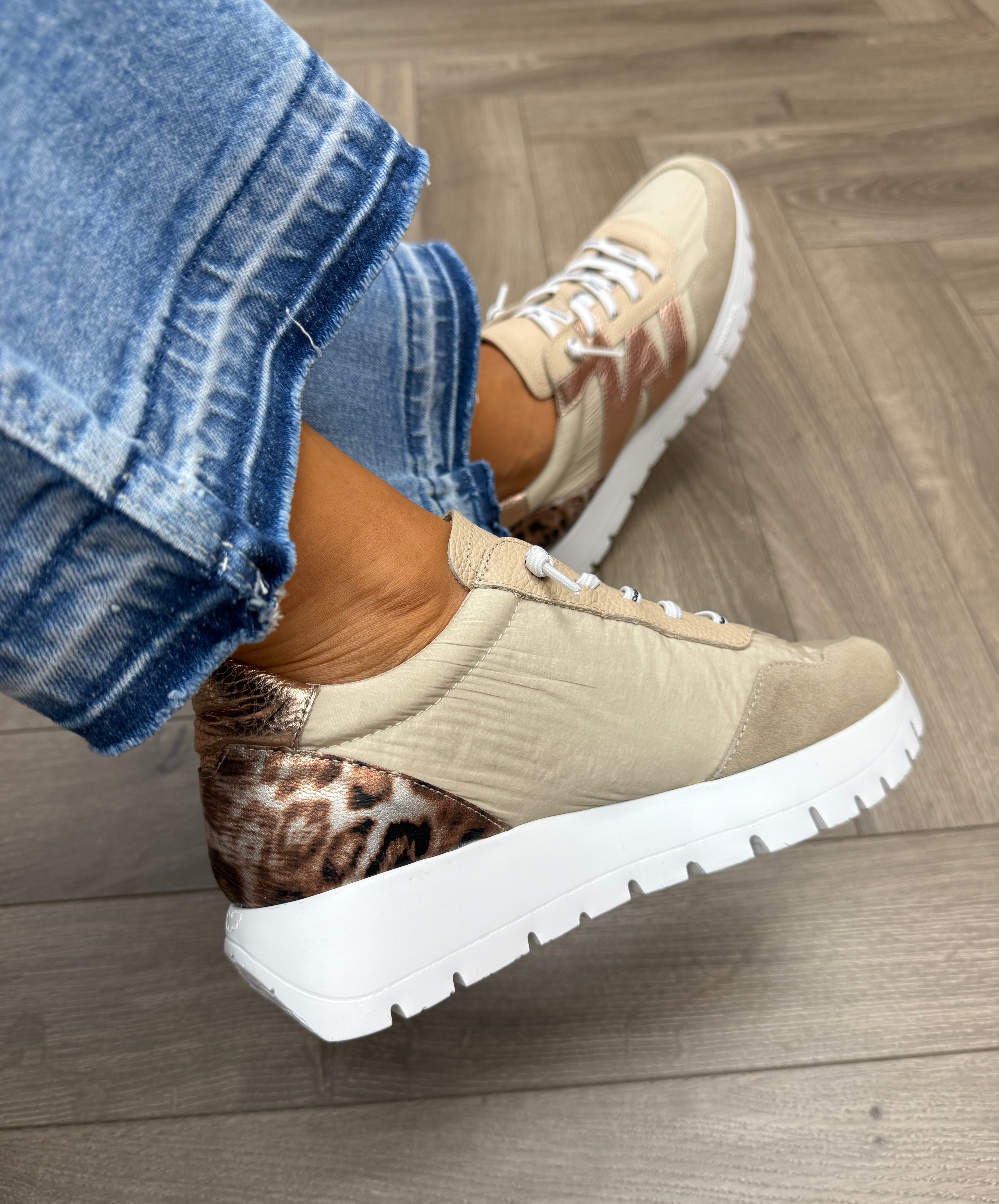 Wonders (W17) Trainer With Leopard Heel A-24100 - Trend v Beig/ Fog Taupe