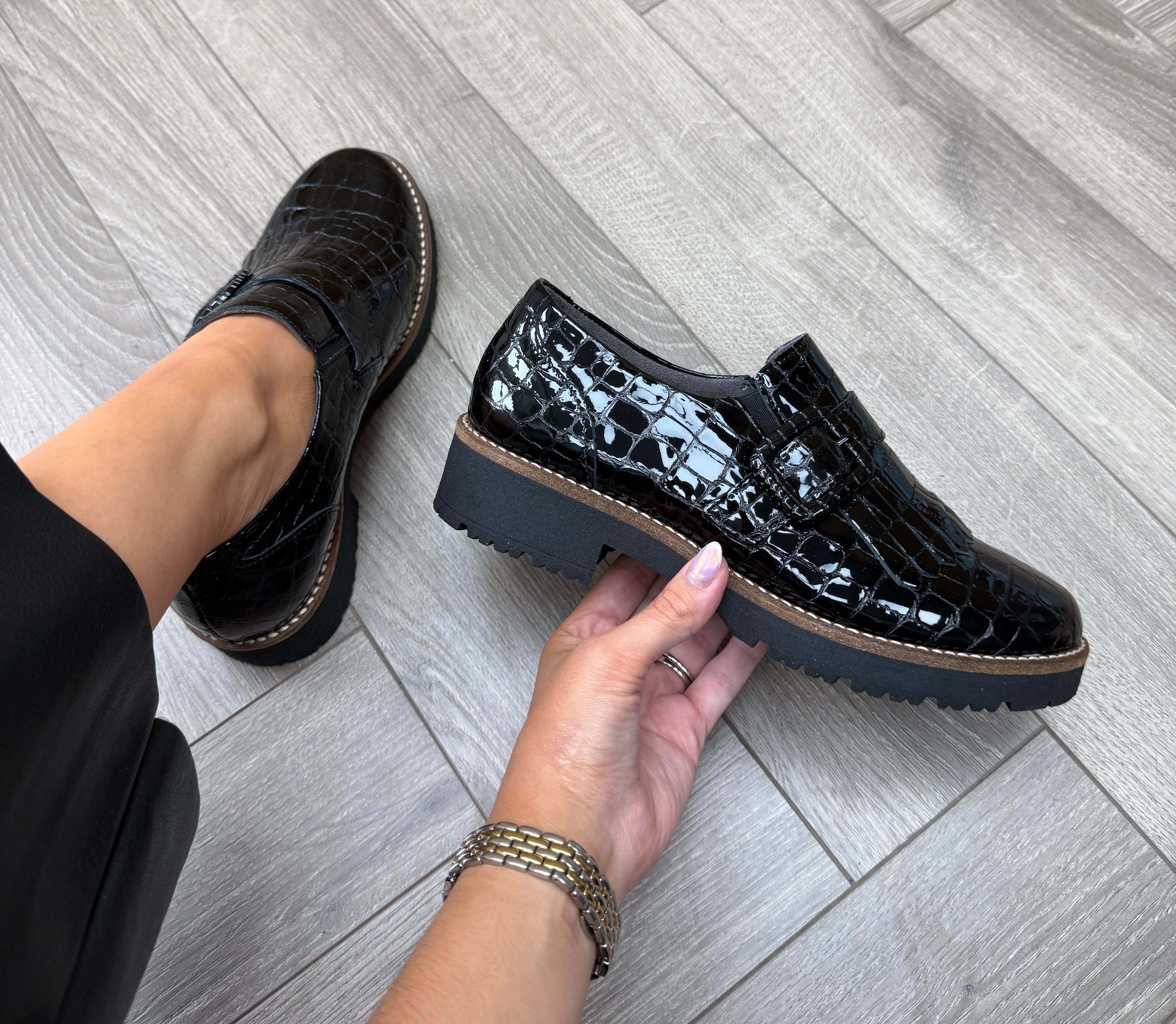 Pitillos 10772 Croc Print Loafer With Fringing - Negro (P8AW)