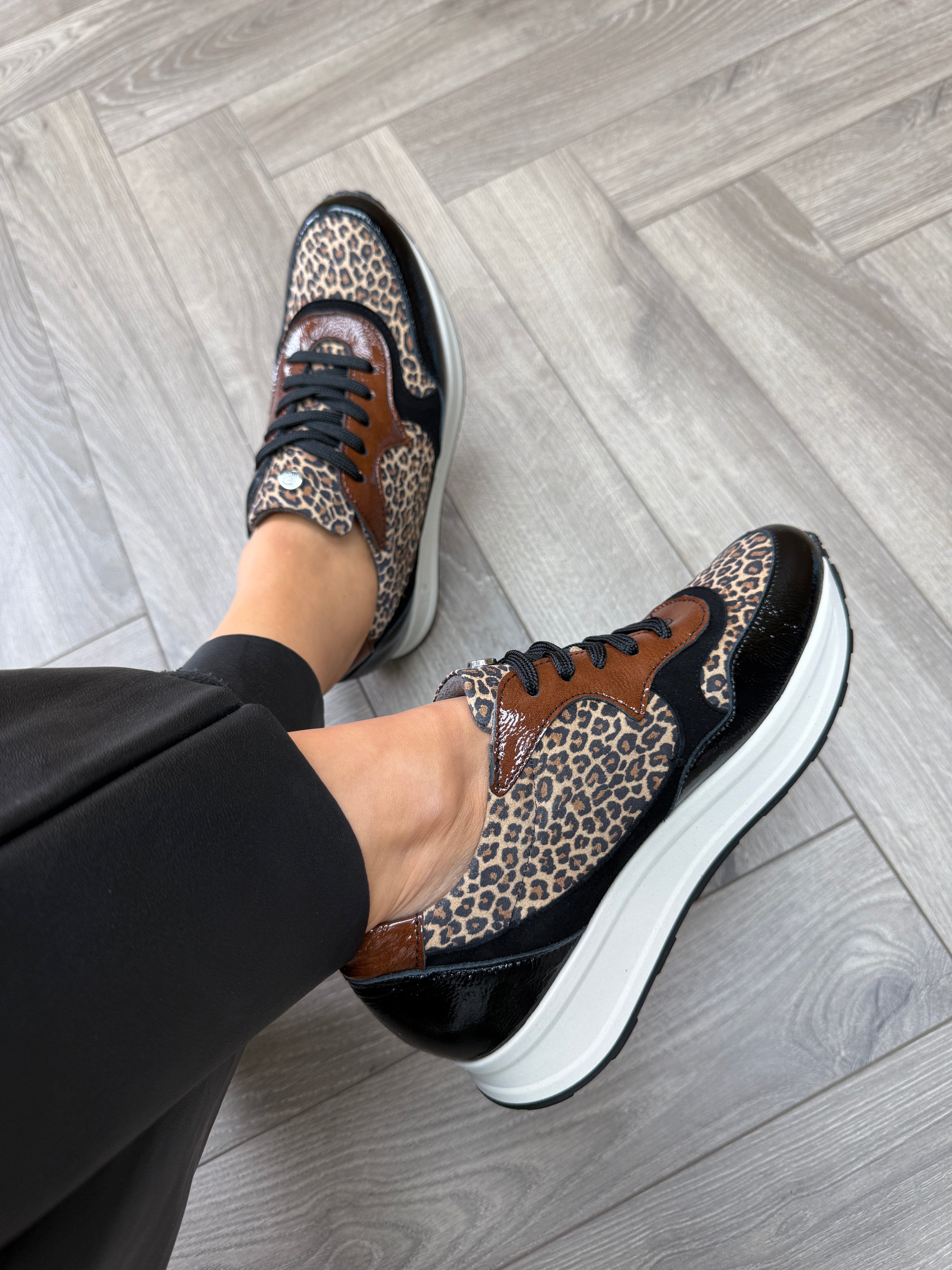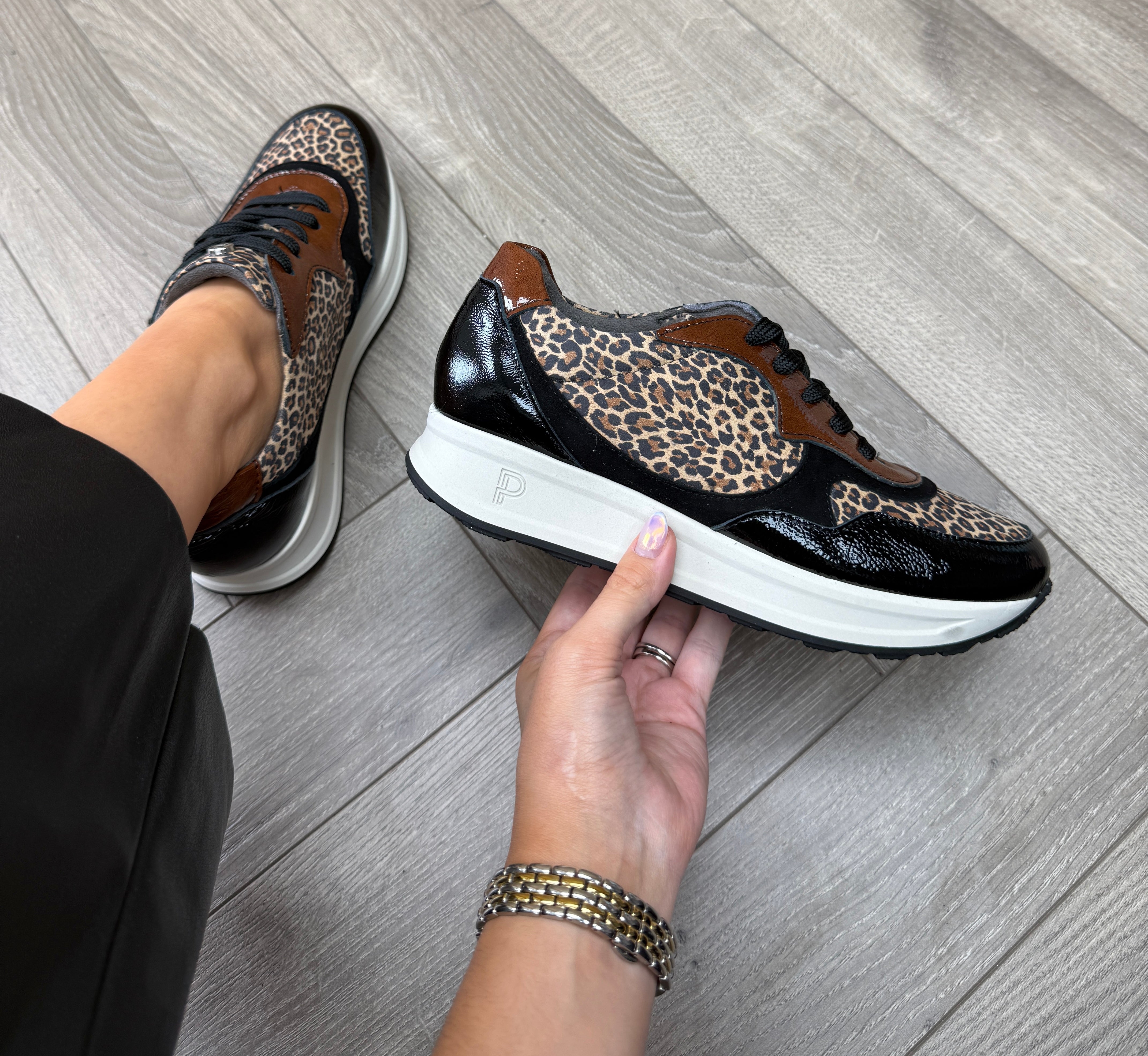 Pitillos 10902 Trainer with Leopard Insert and Patent Trim - Negro (P13AW)