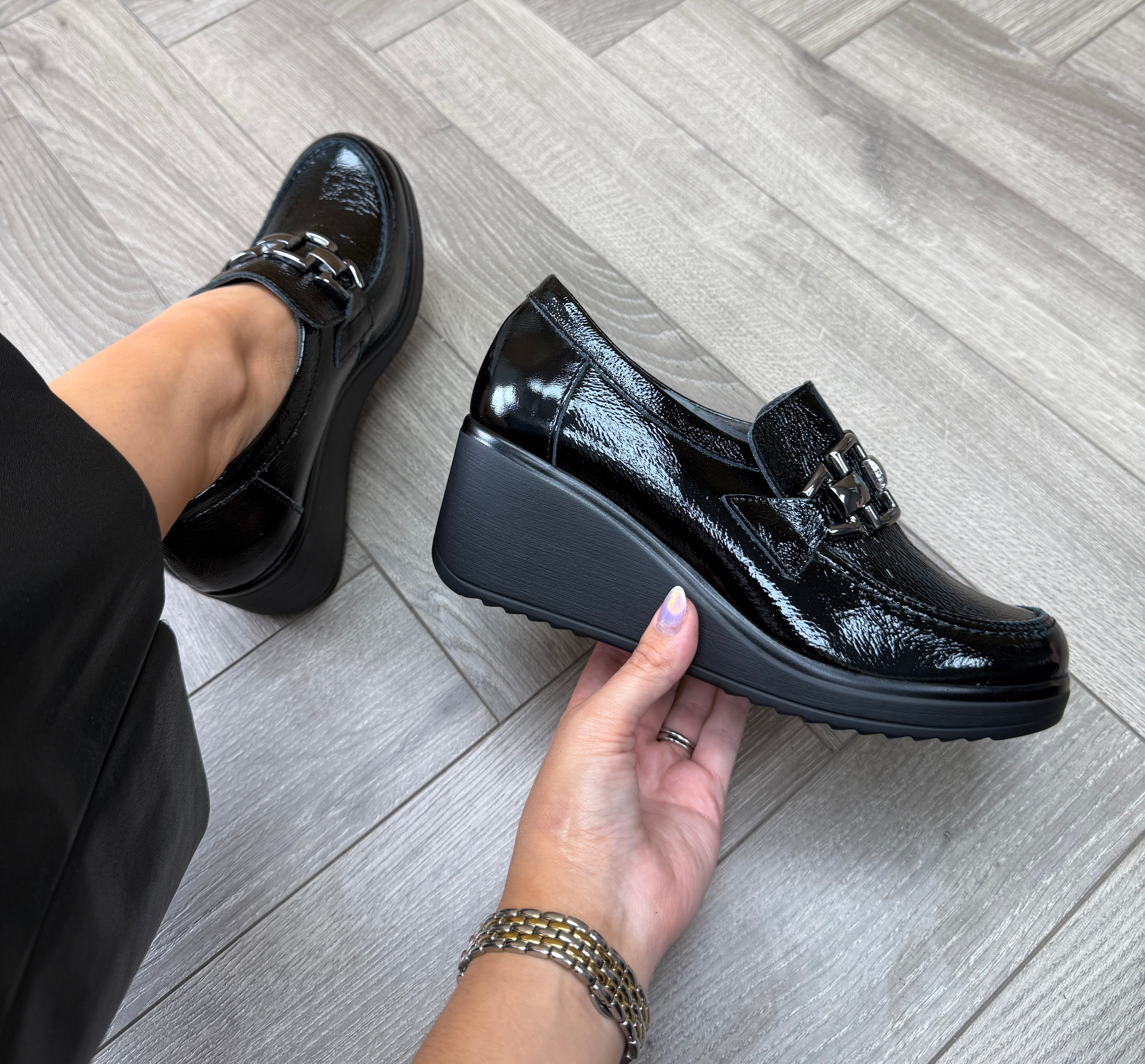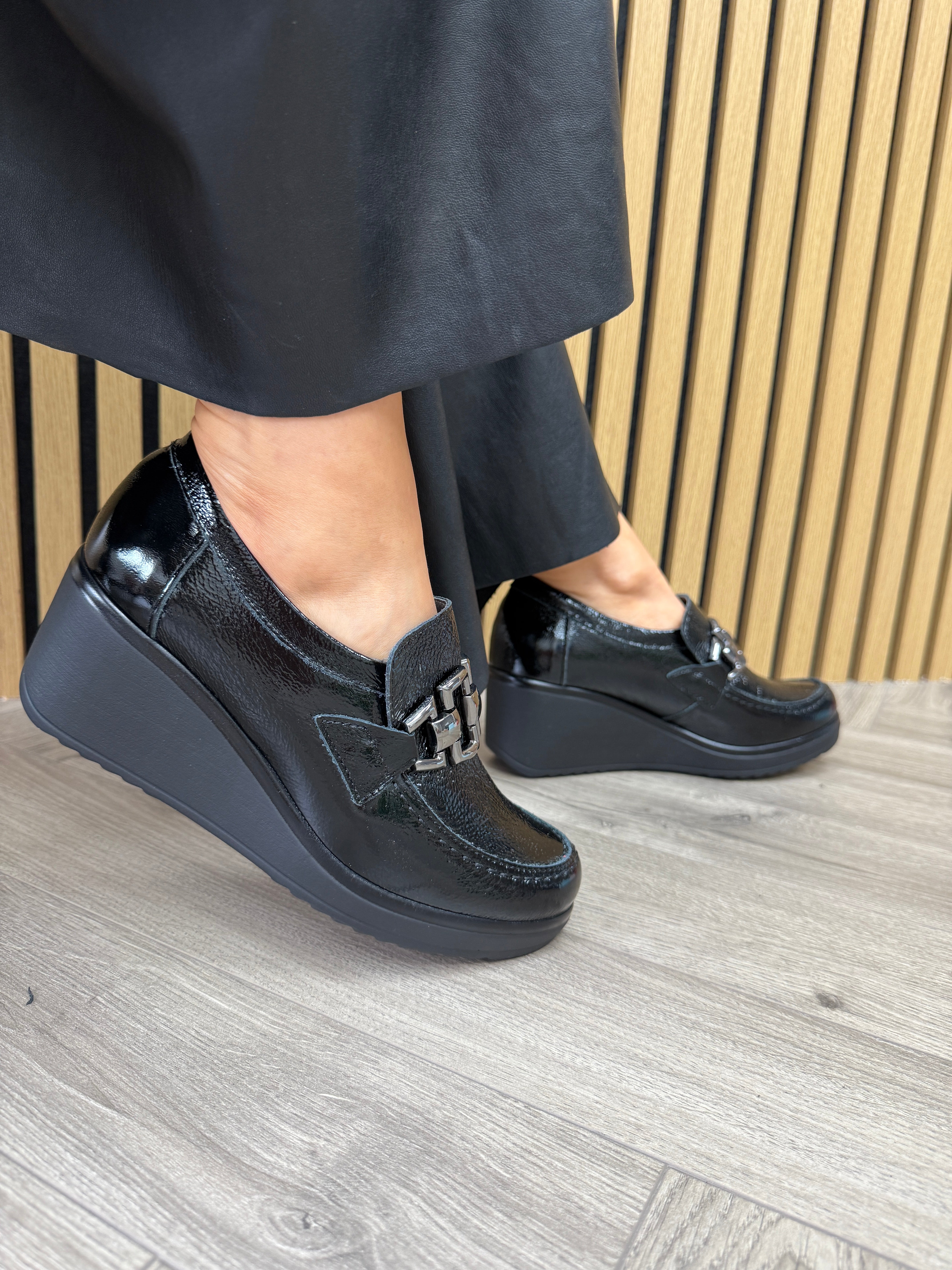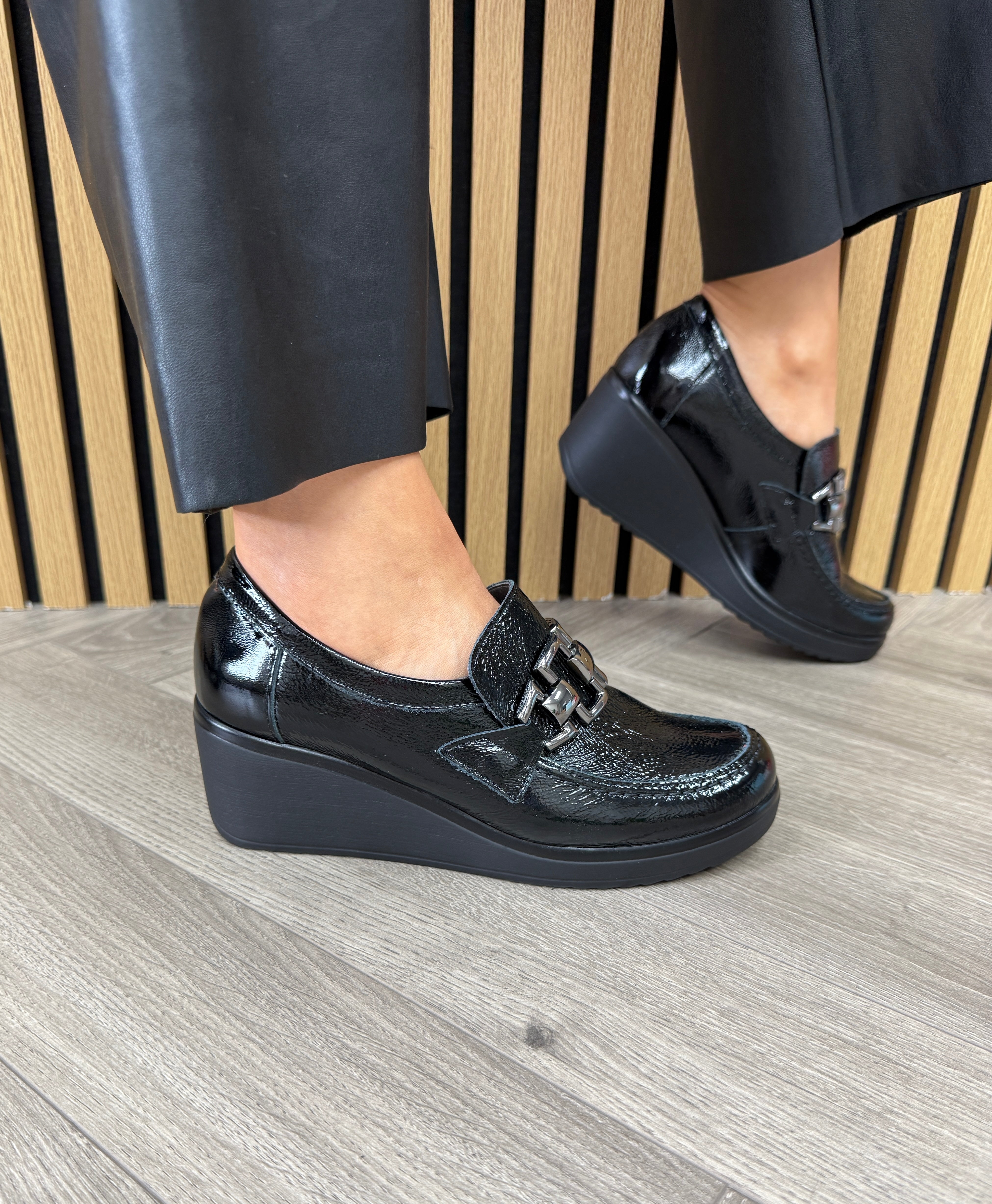 Pitillos 20232 Patent High Wedge Loafer With Buckle -Negro (P11AW)