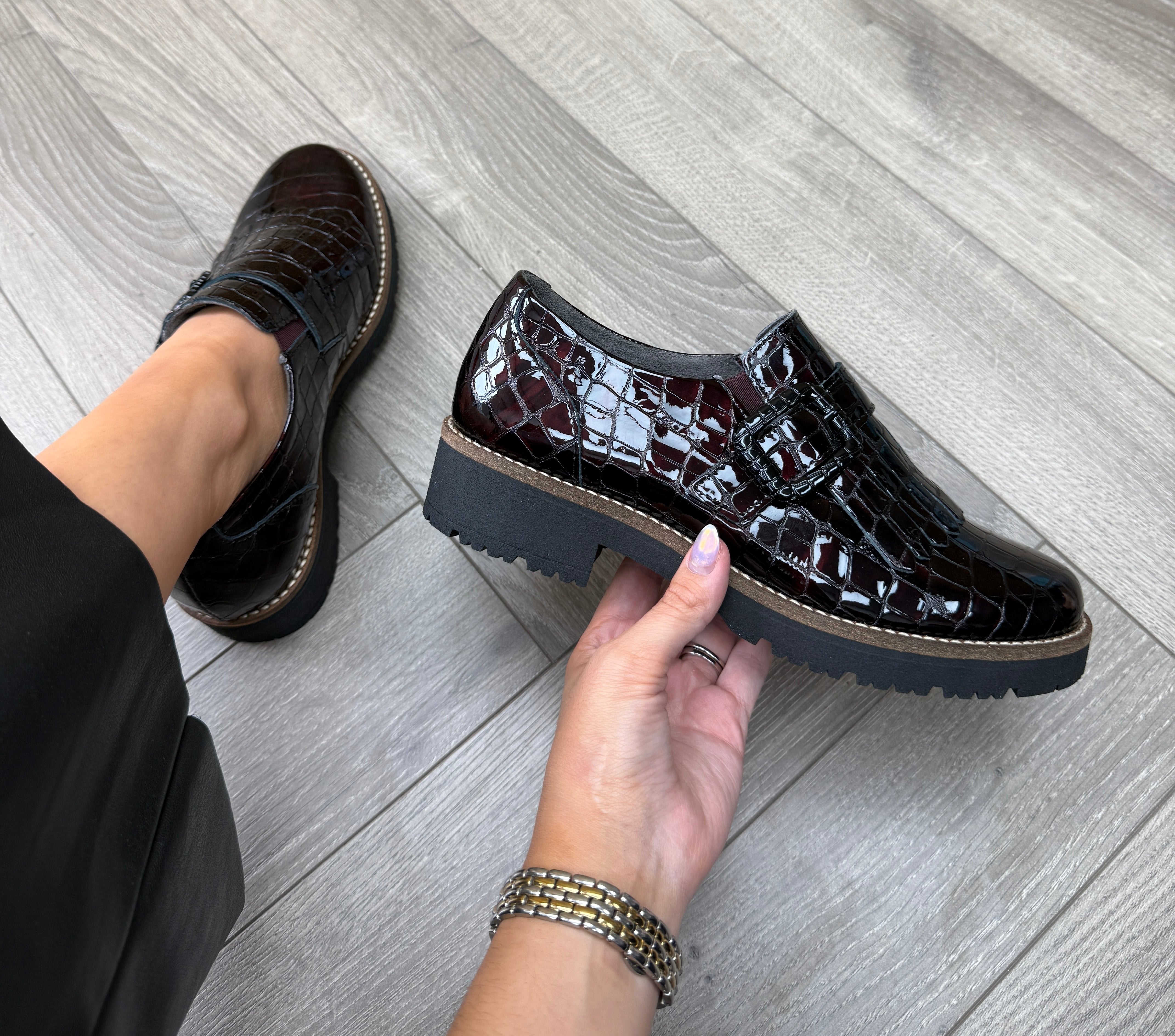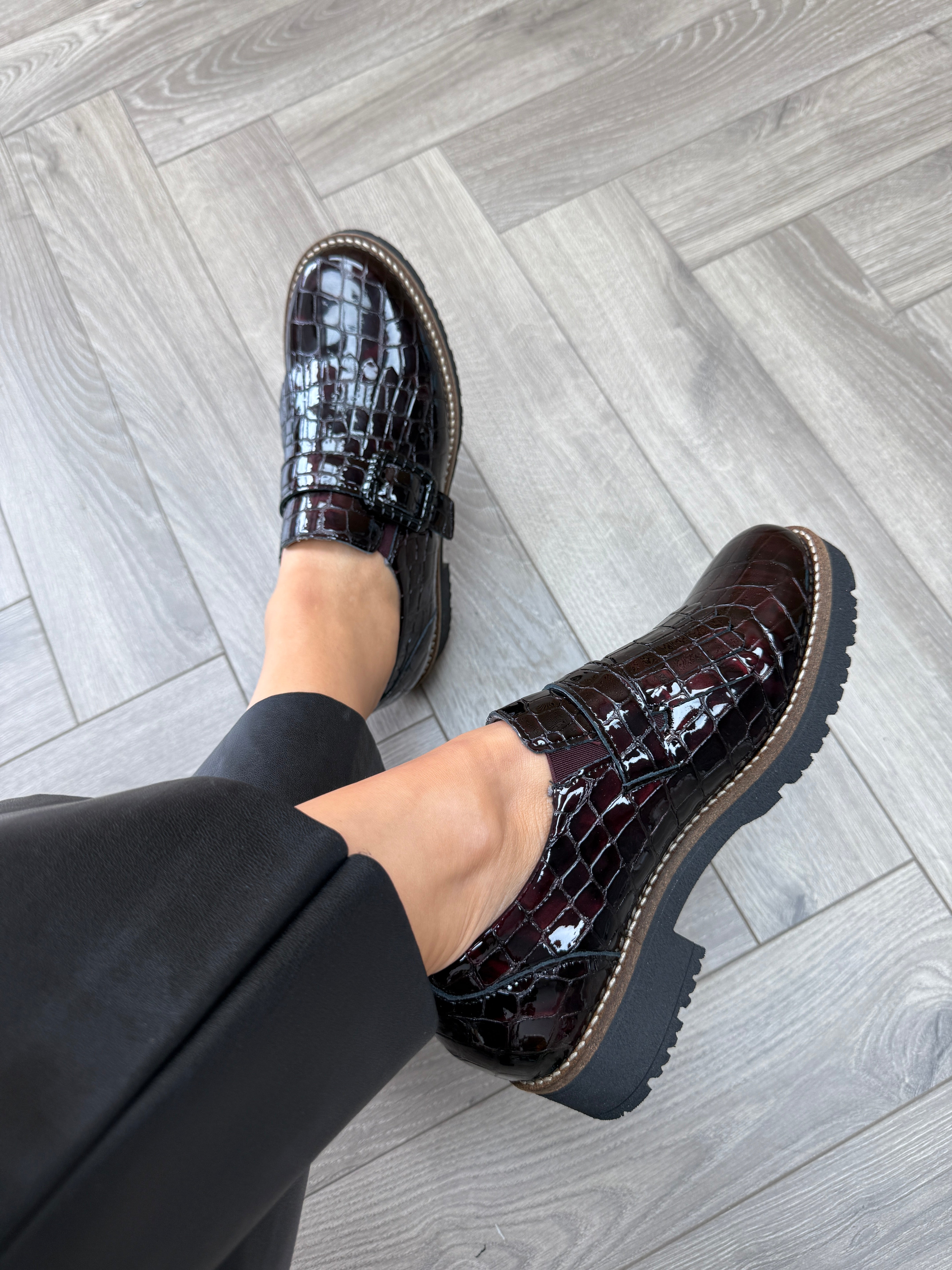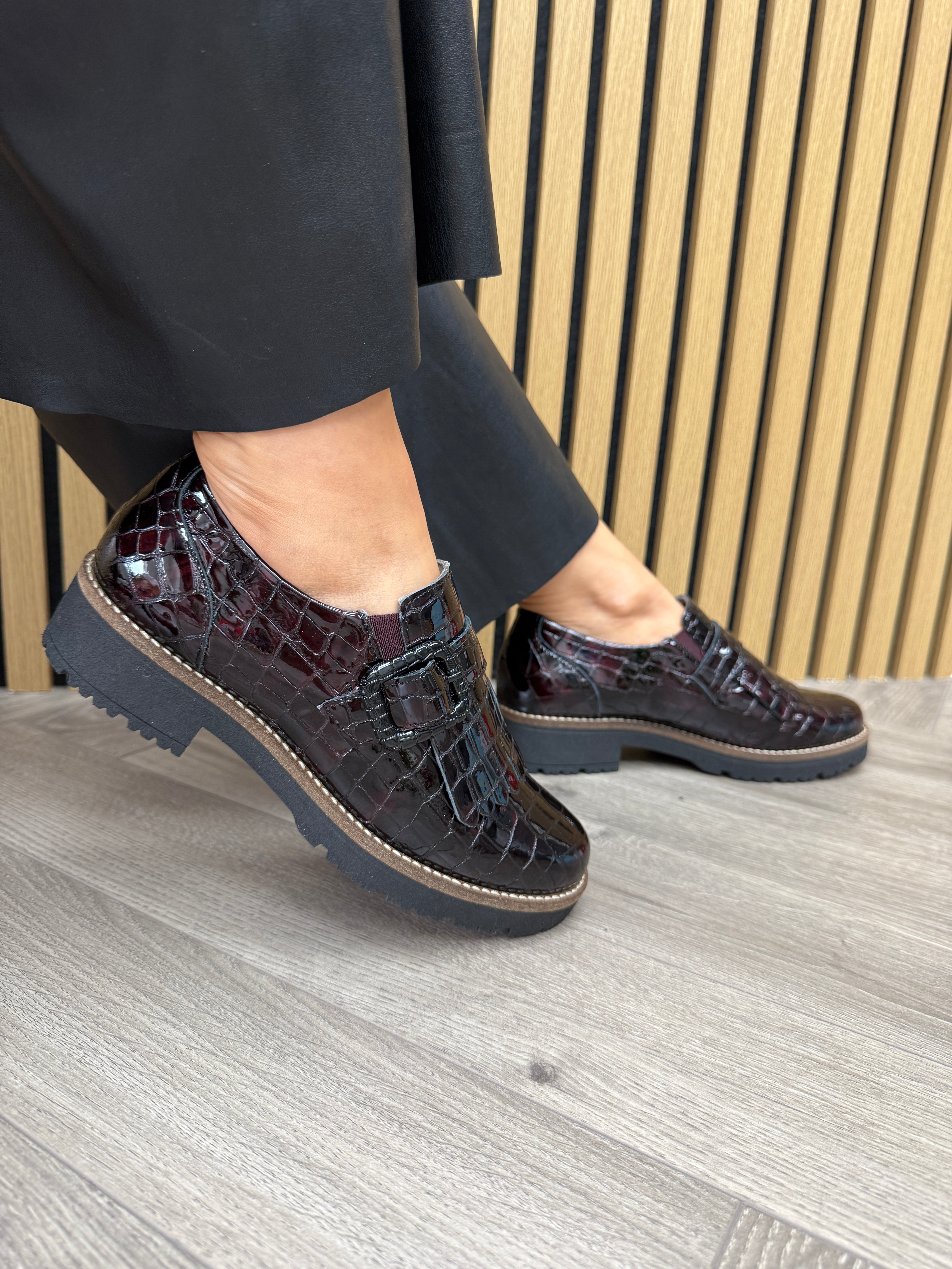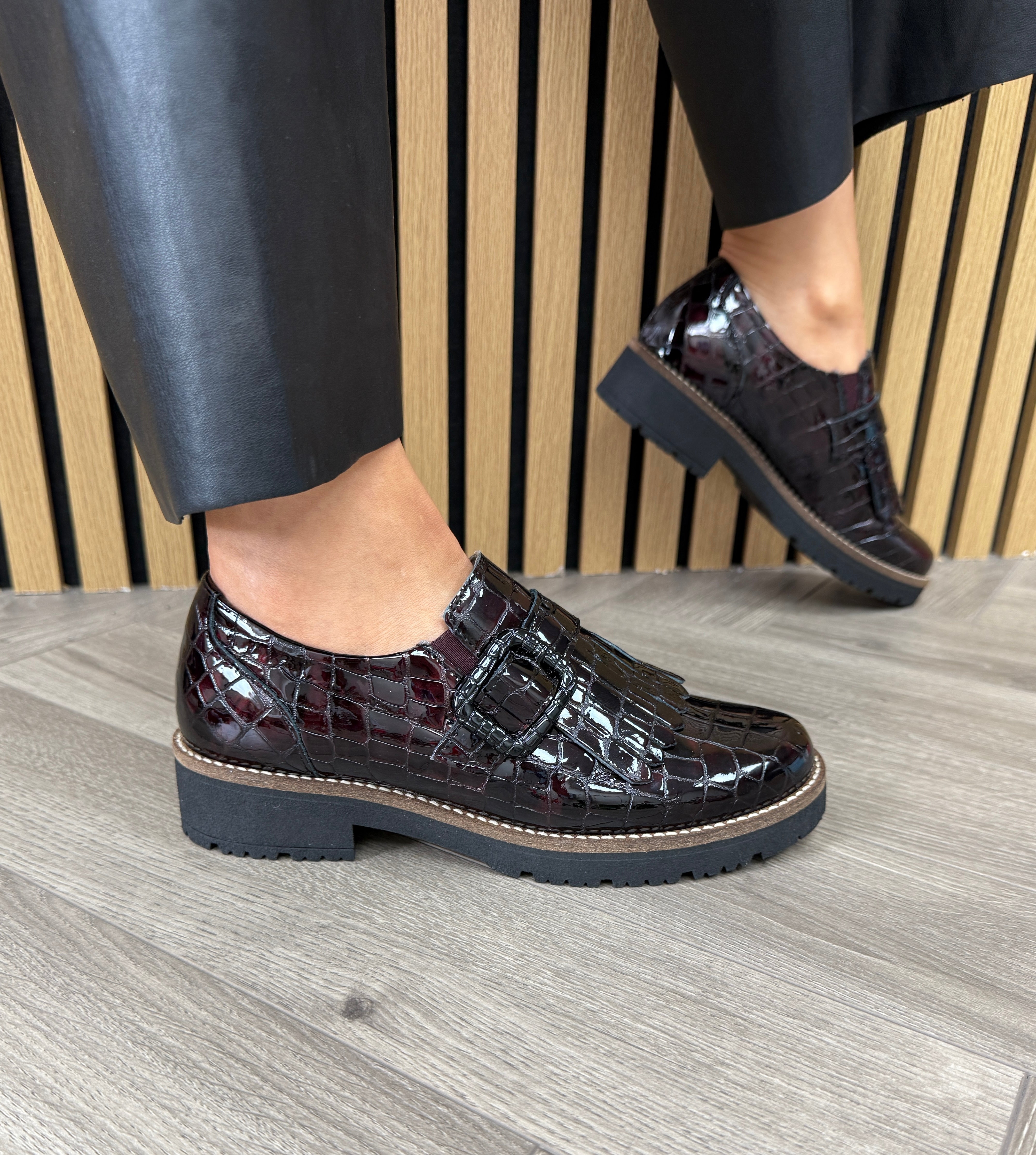 Pitillos 10772 Croc Print Patent Loafer With Fringing - Burdeos (P4AW)