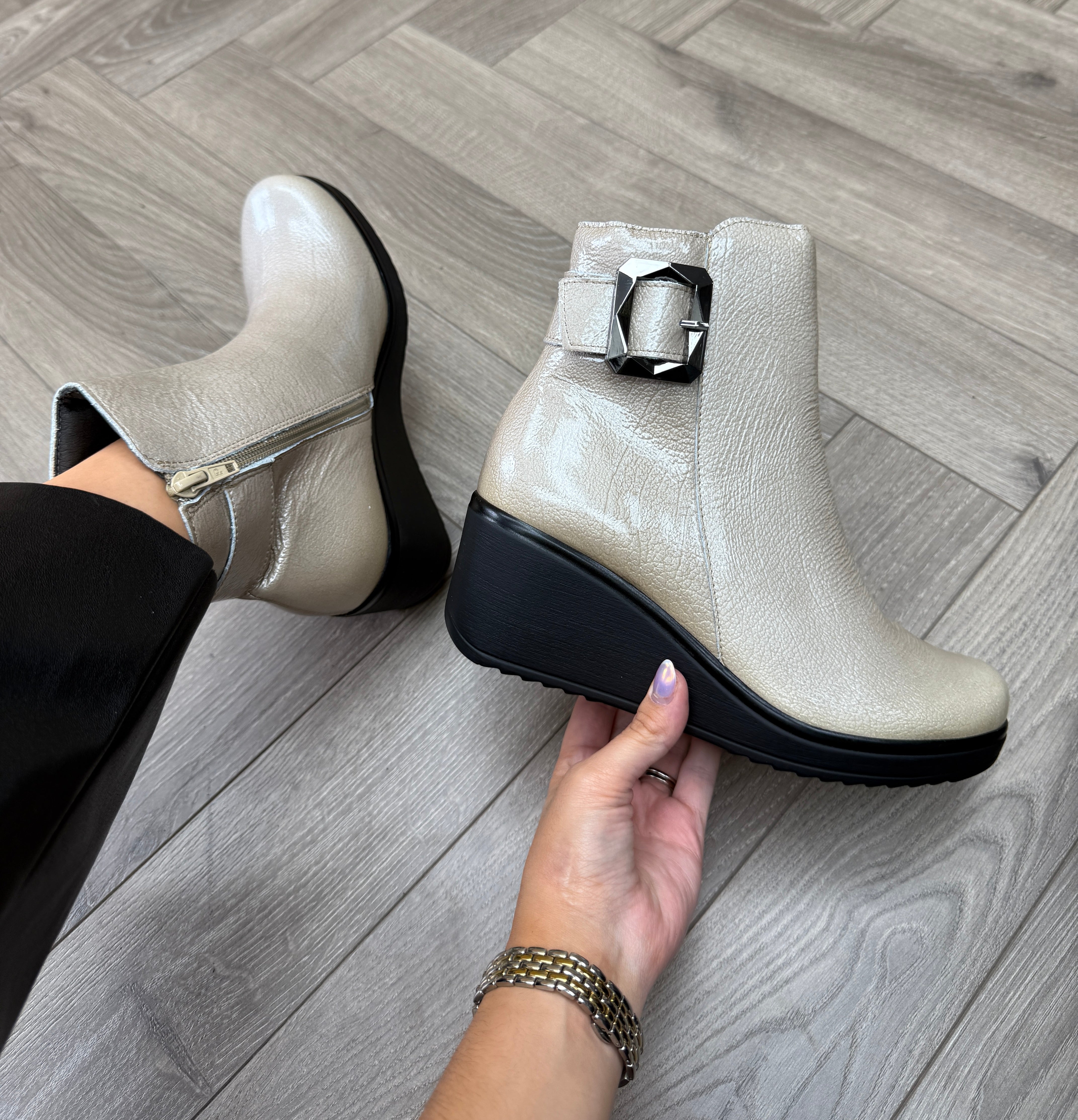 Pitillos 20233 Patent High Wedge Boot - Piedra (P9AW)