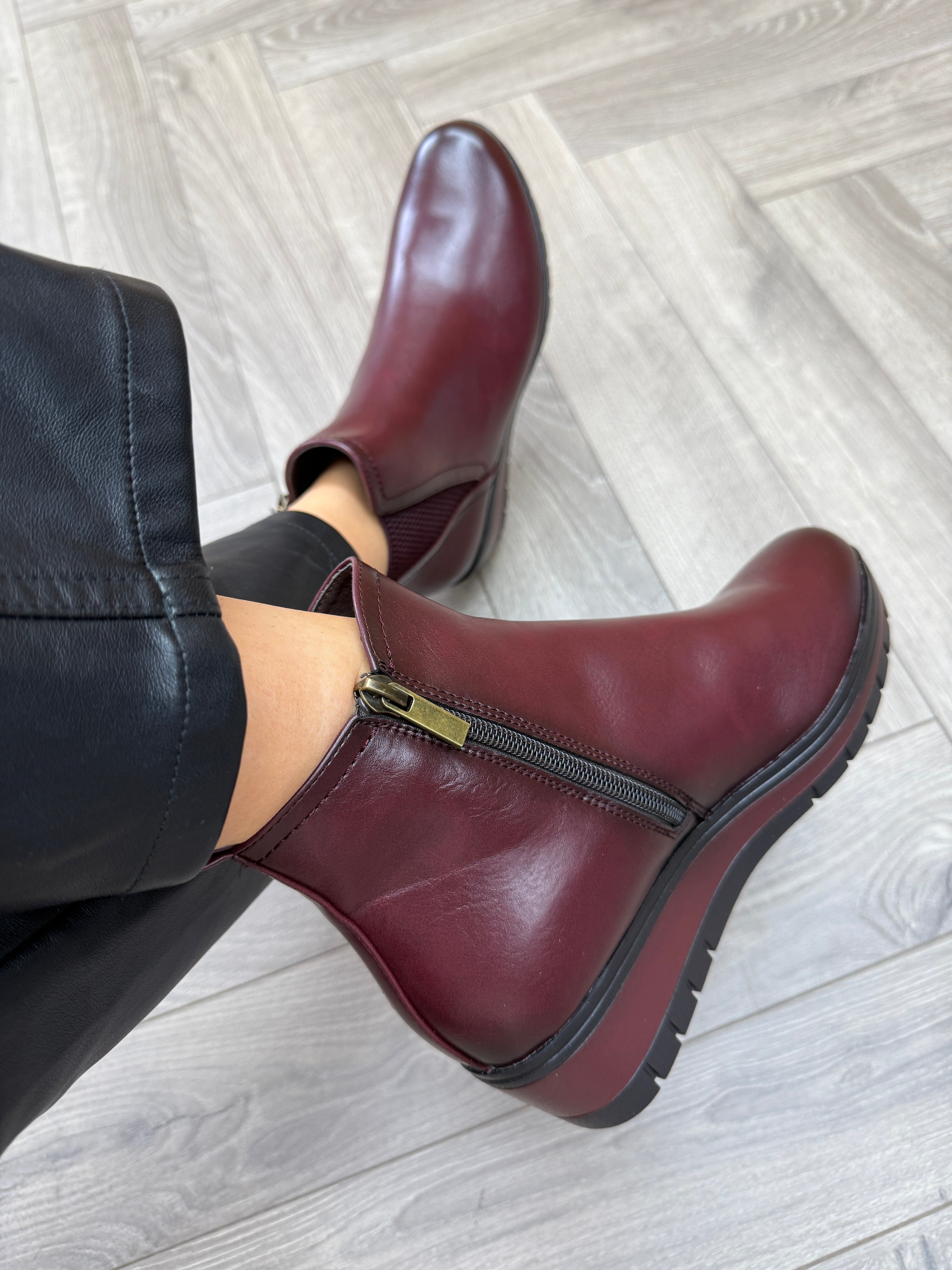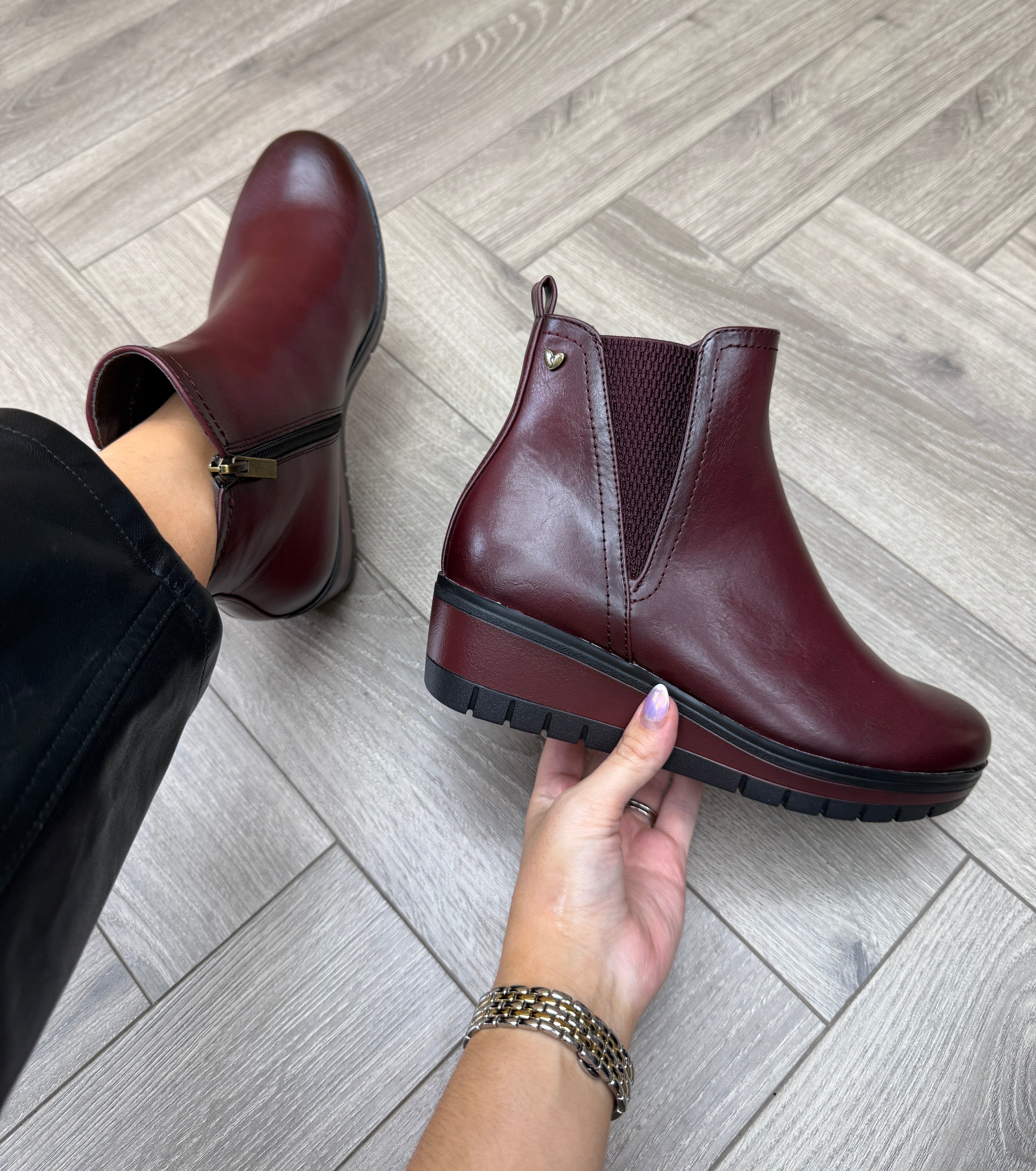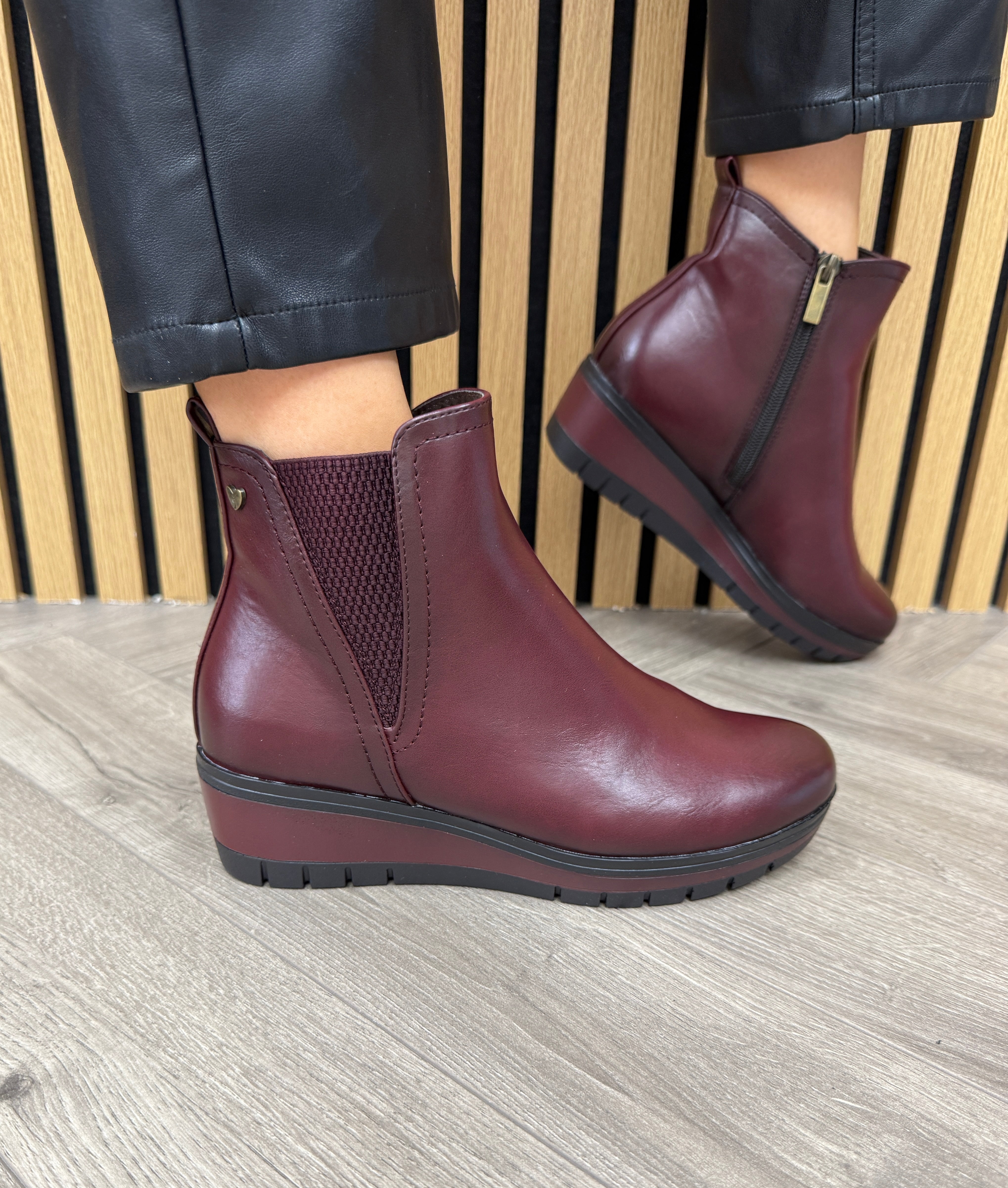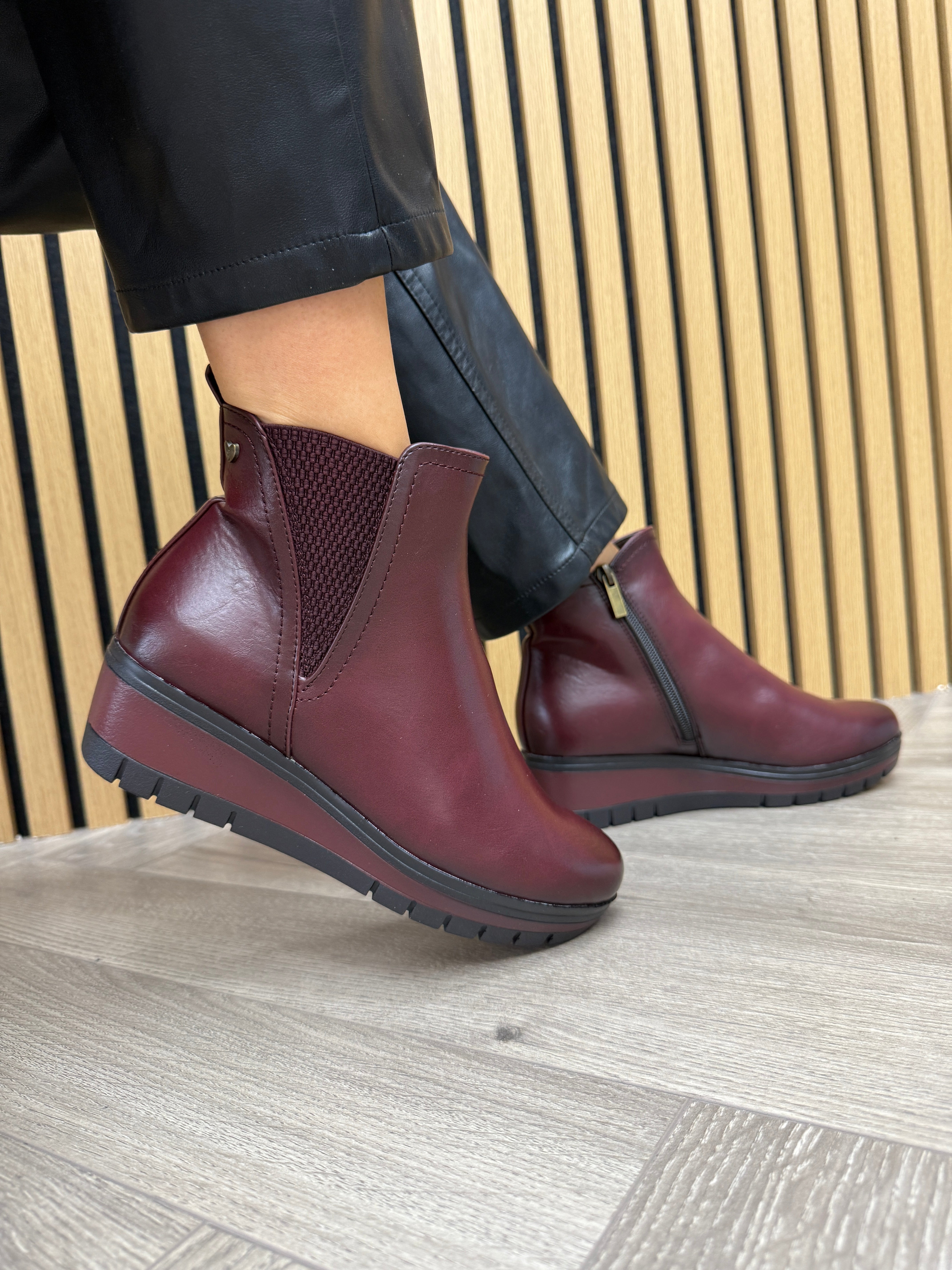 Susst ‘Hilton25’ Low Wedge Boot (SU7)- Burgundy PU