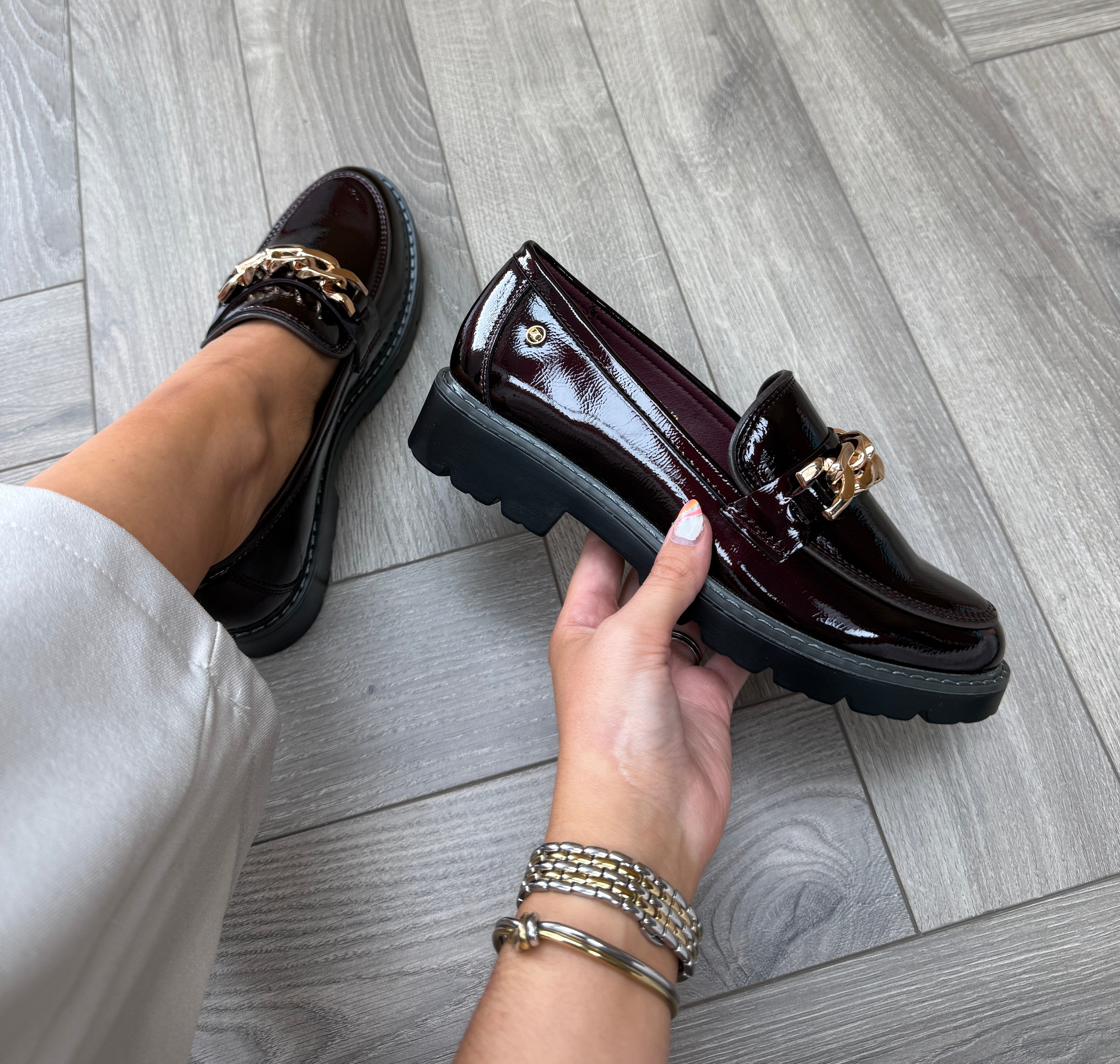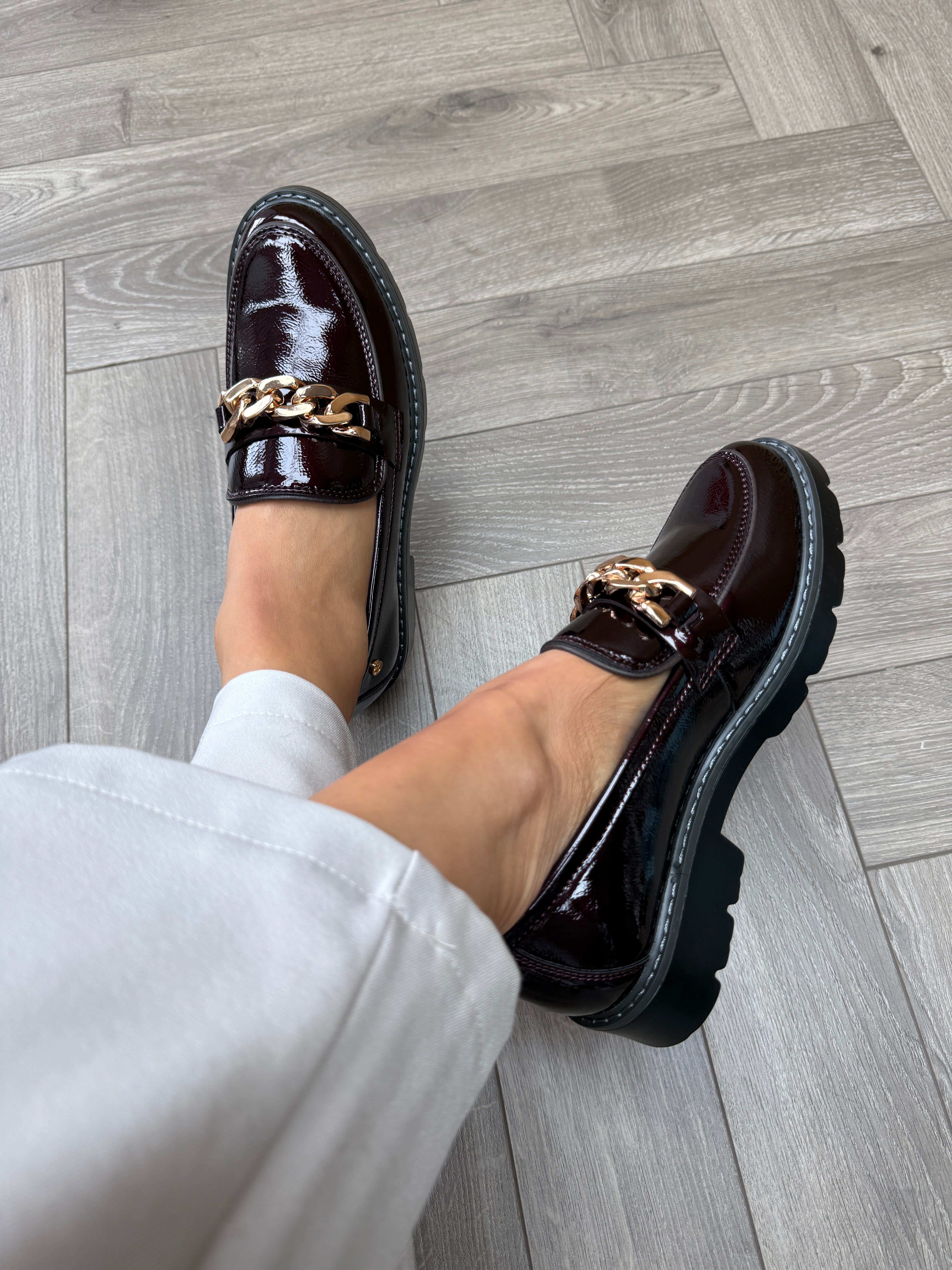 Zanni & Co ‘Daqia One’ Patent Loafer With Gold Chain - Maroon P (Z8AW)