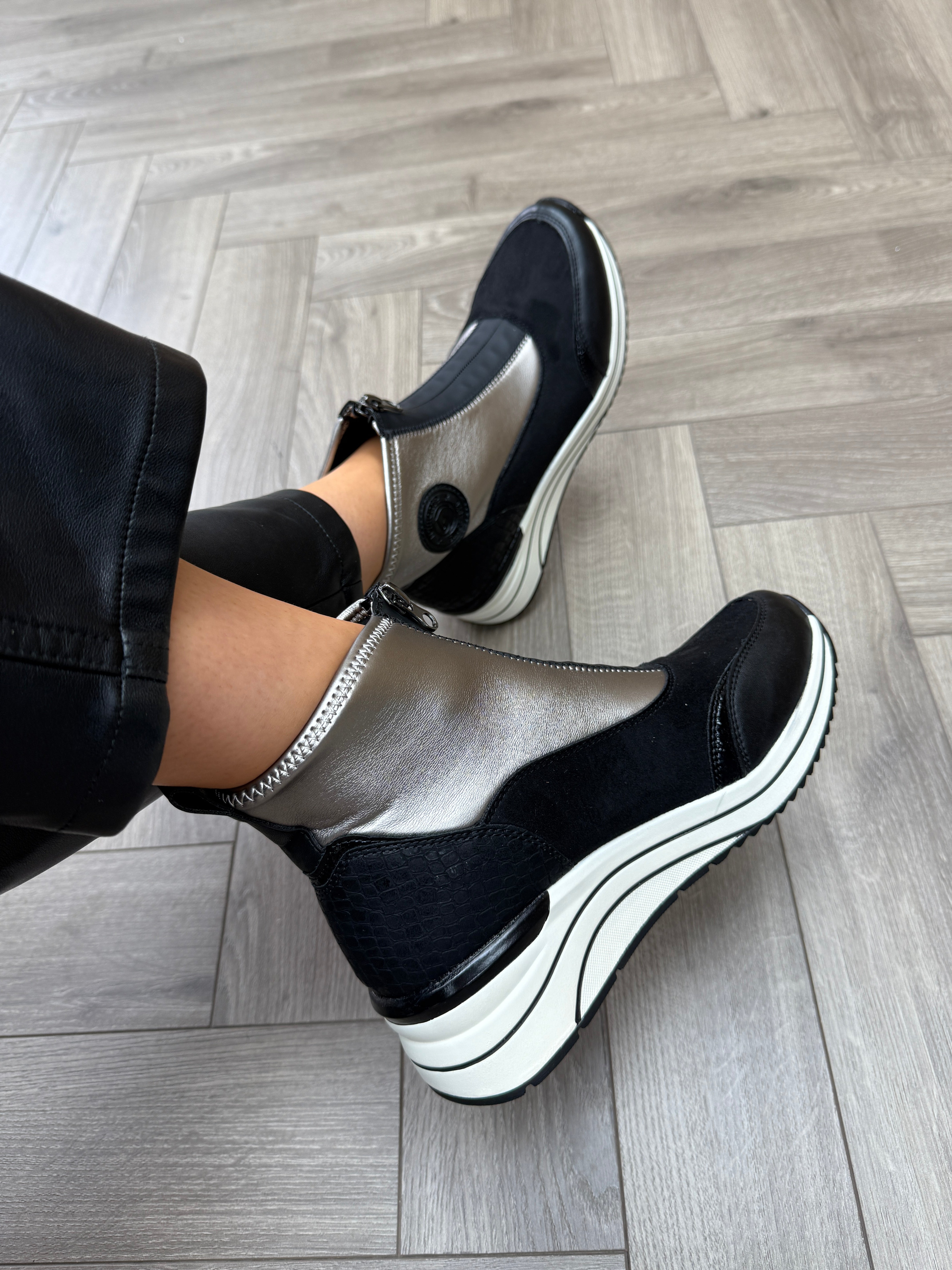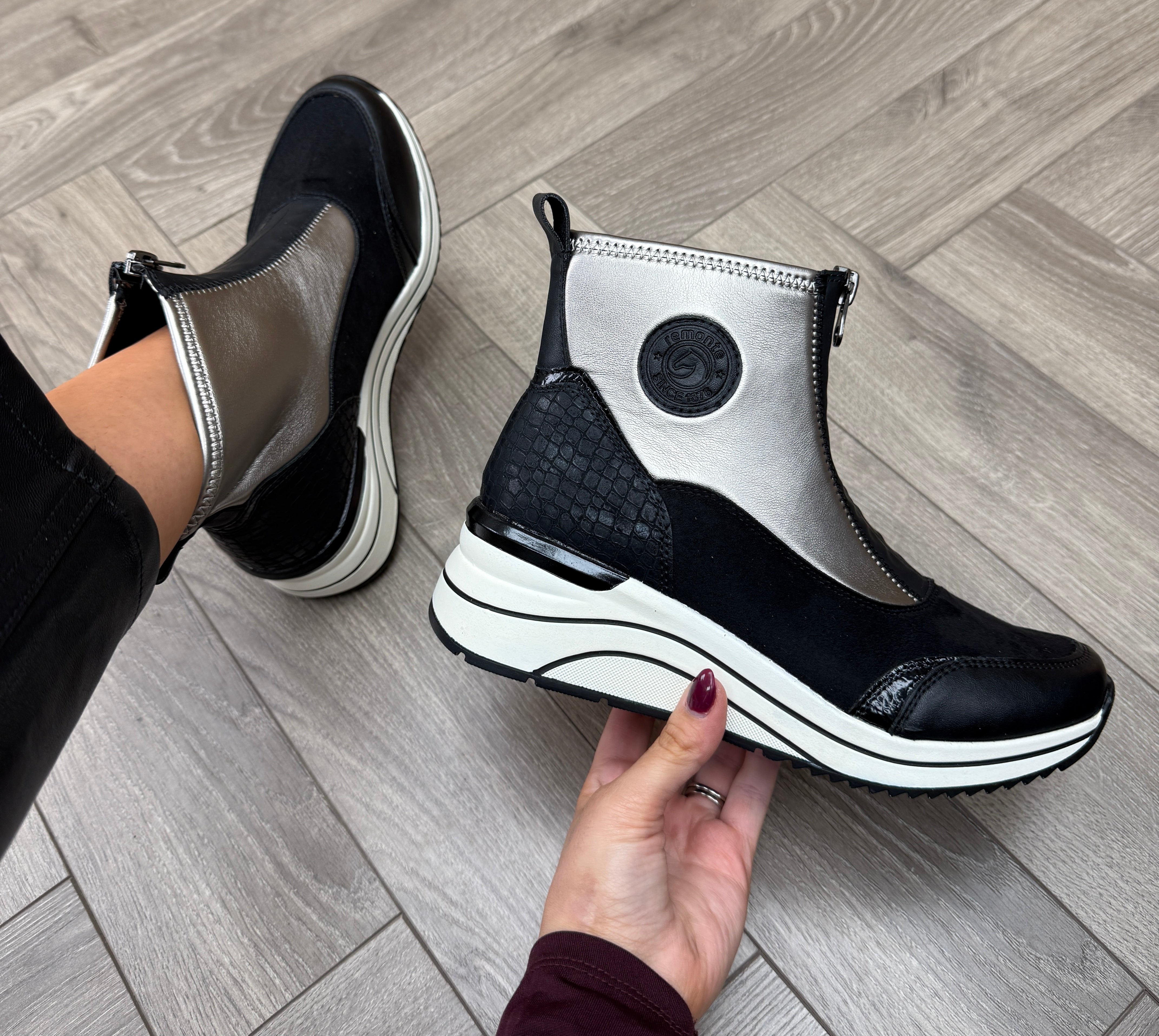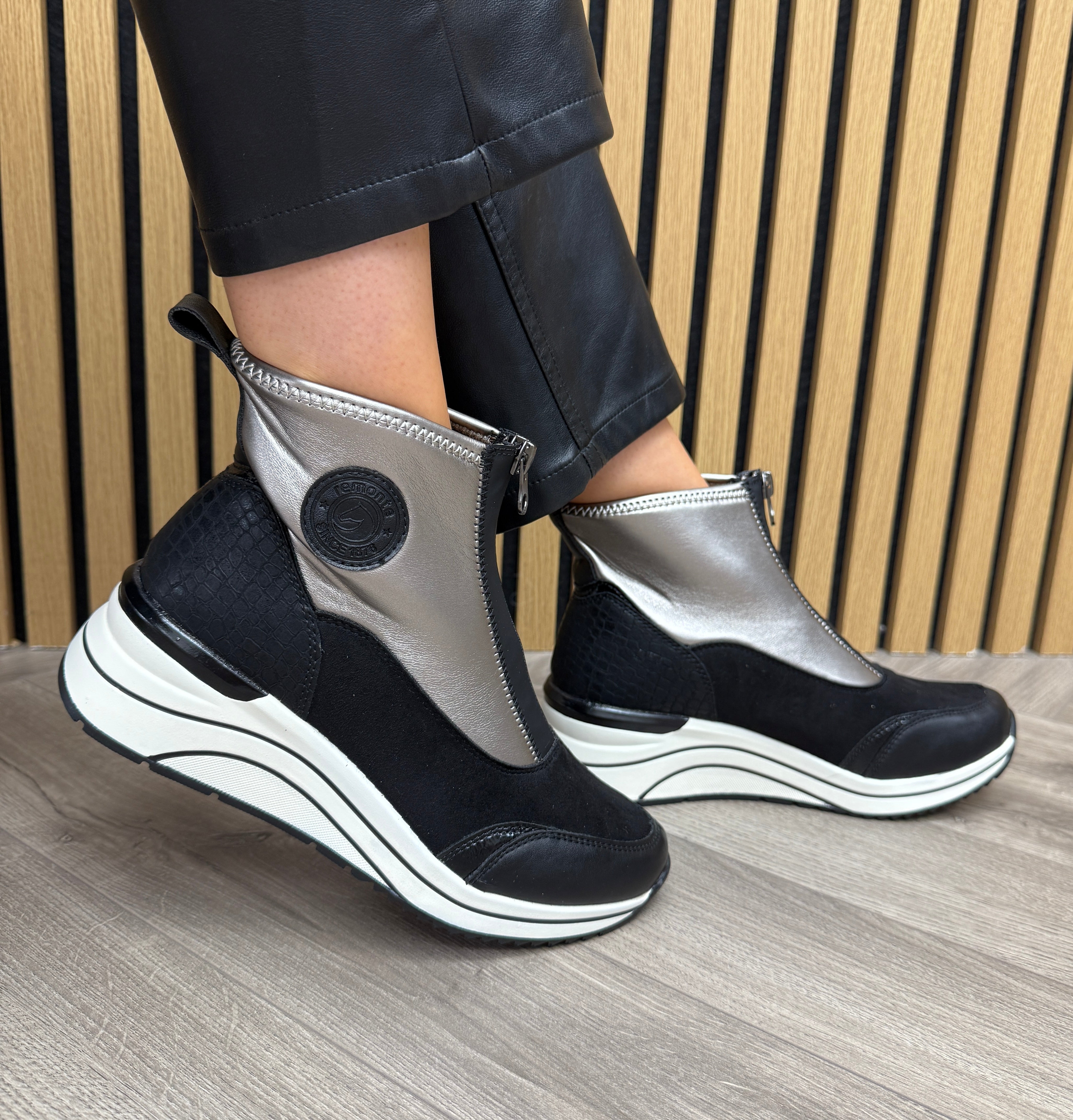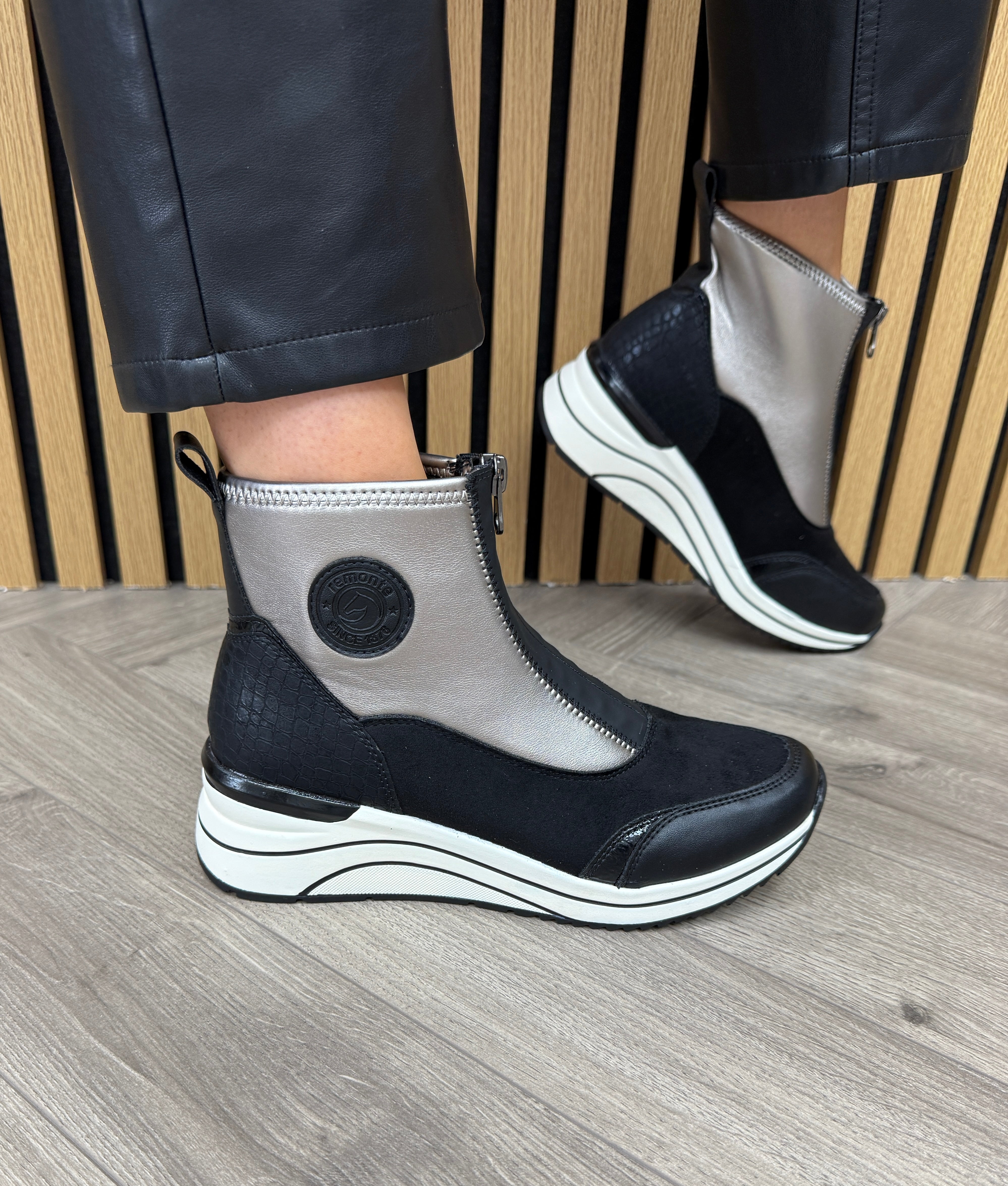 Remonte D0T78-03 Front Zip Trainer Boot (RE19)- Schwarz Combi