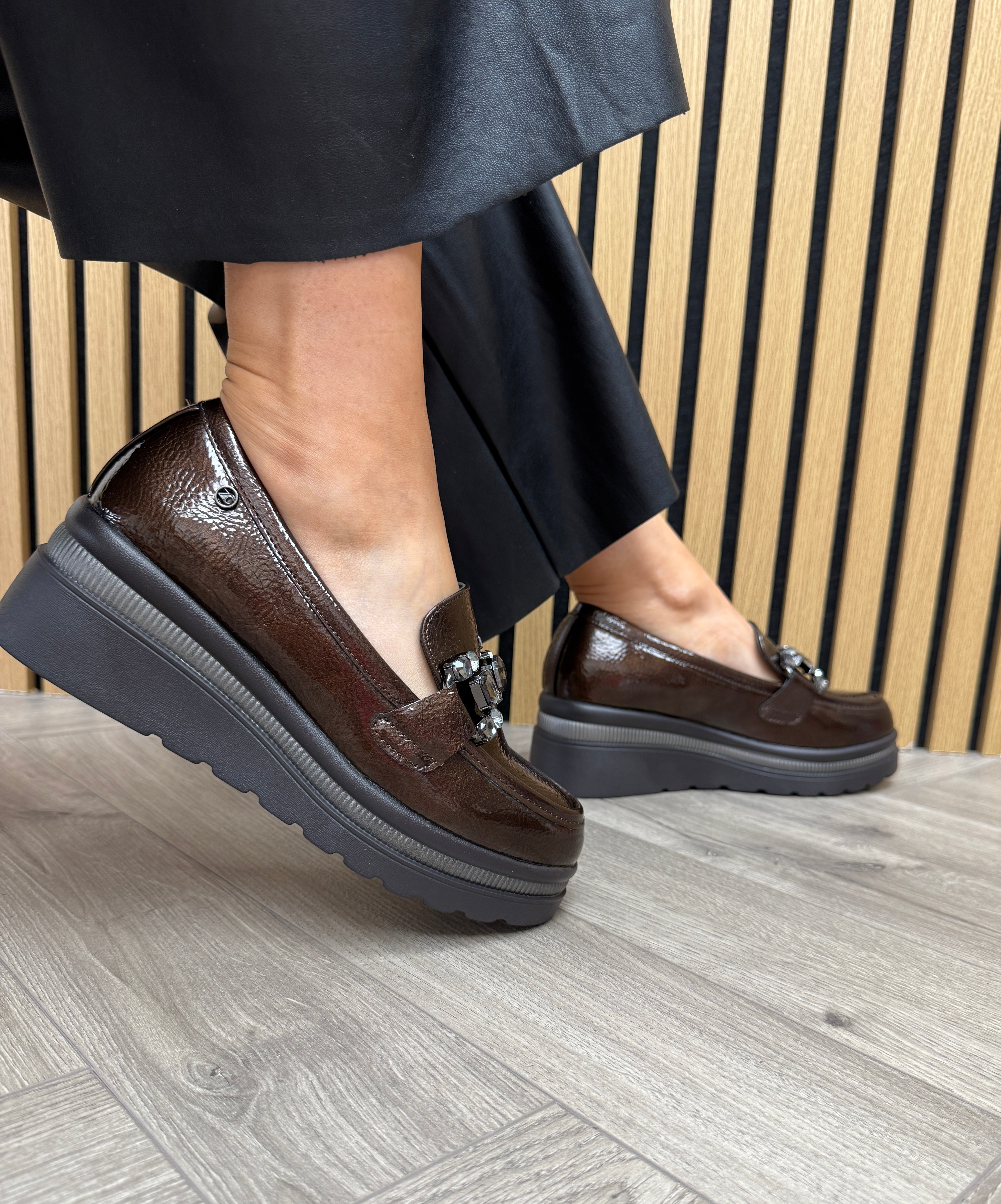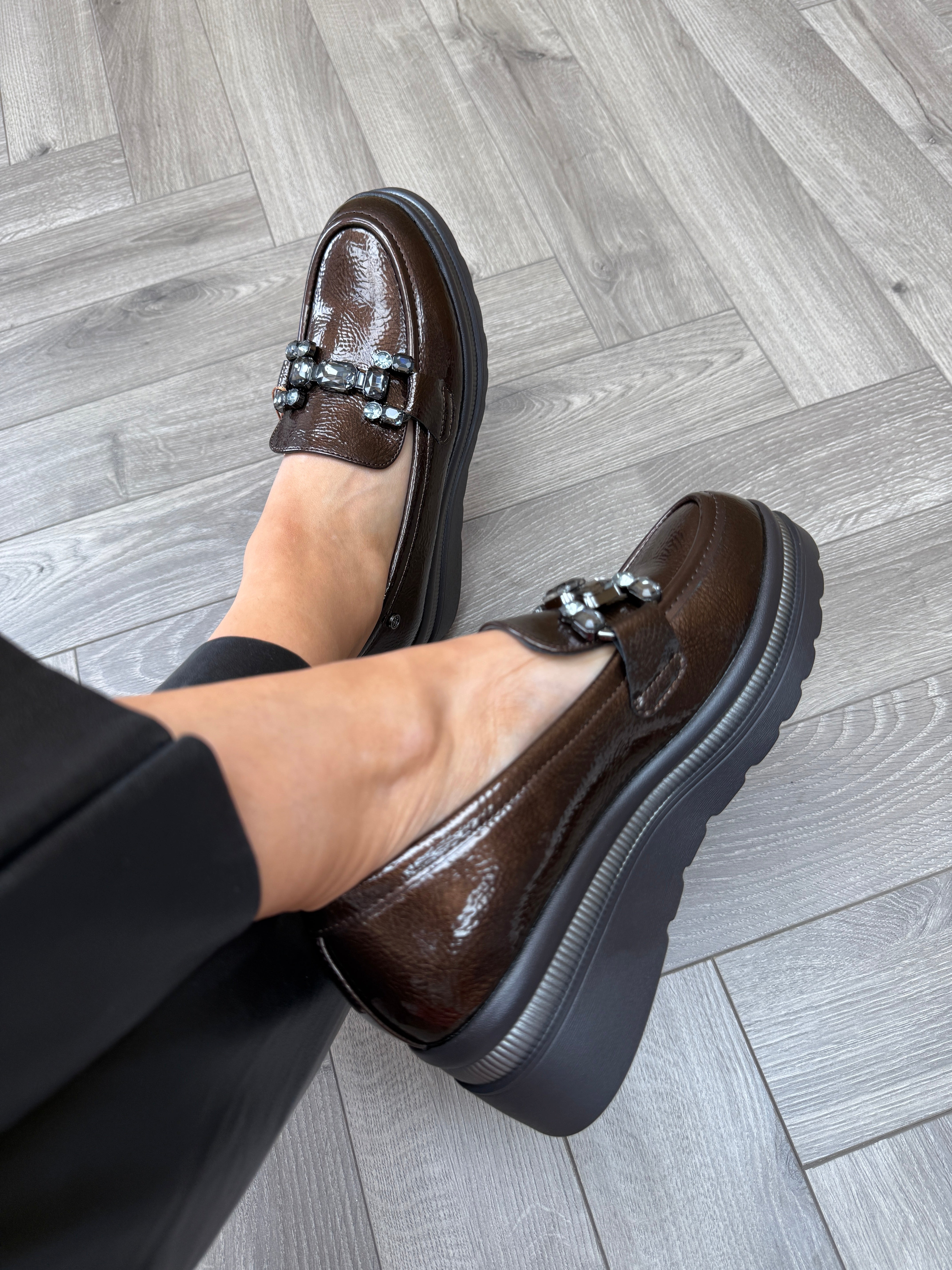 Zanni & Co (AW25) ‘Tarsus One’ Patent Wedge Loafer With Diamanté Buckle - Burnt Topaz (Z21AW)