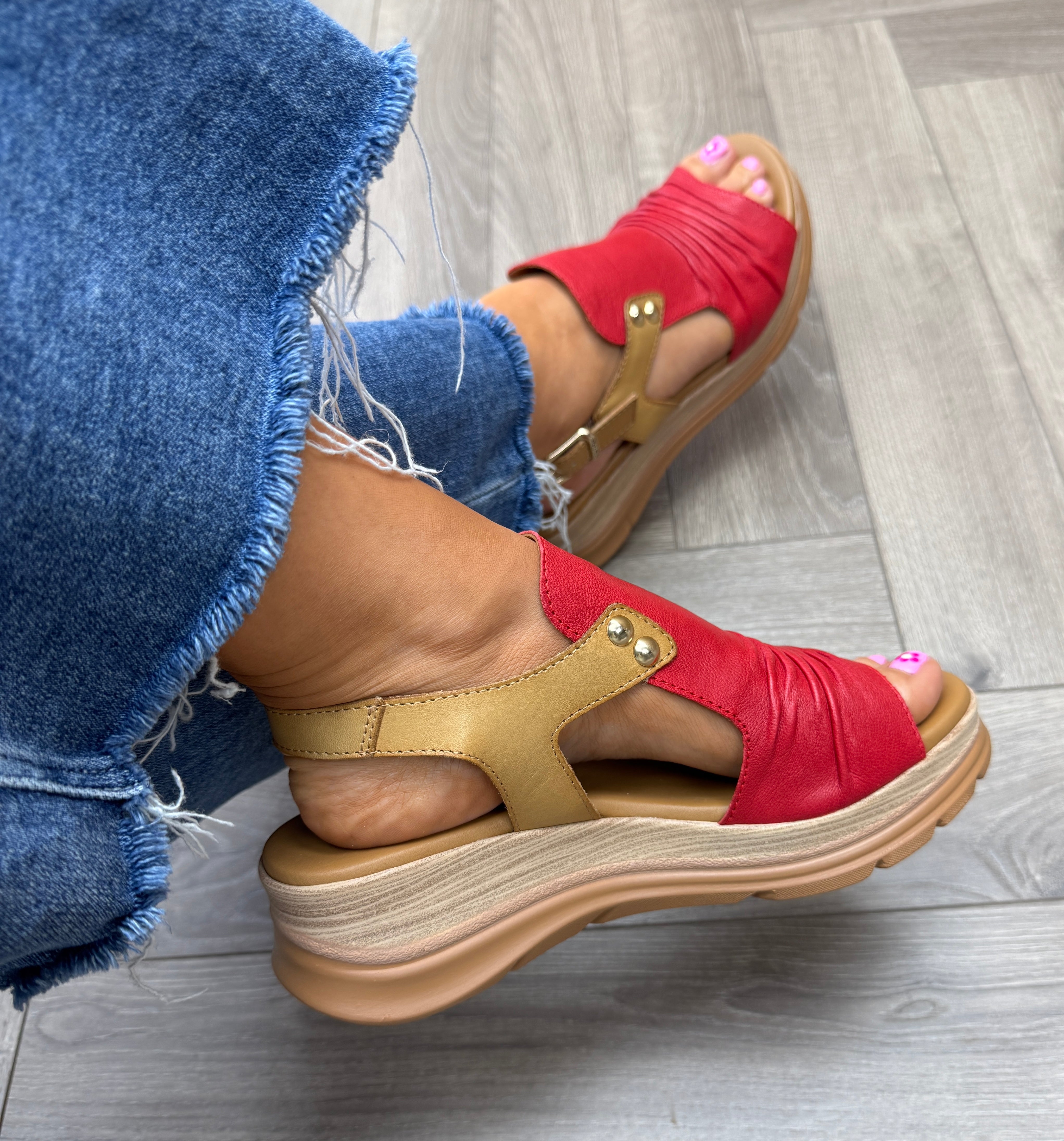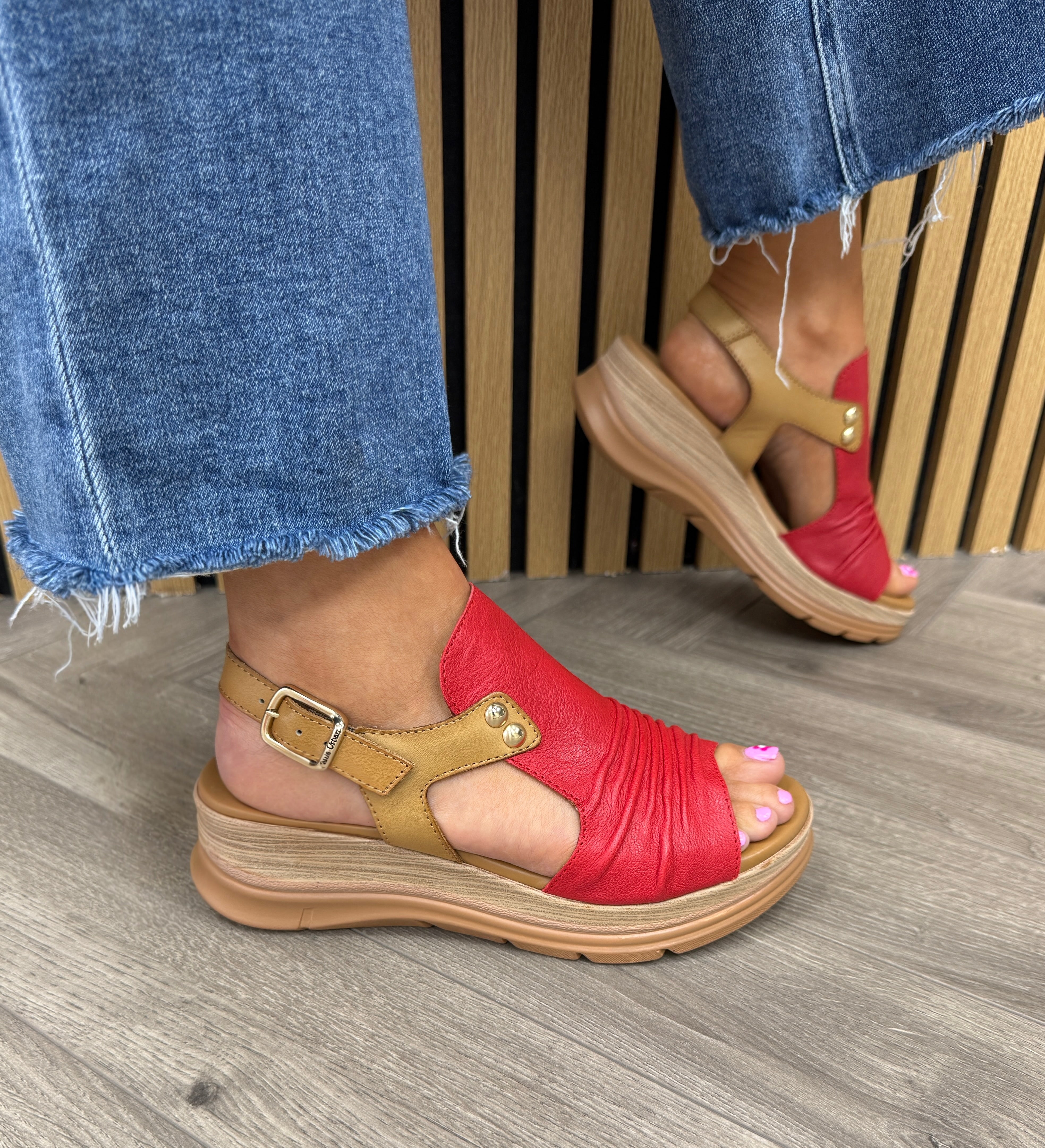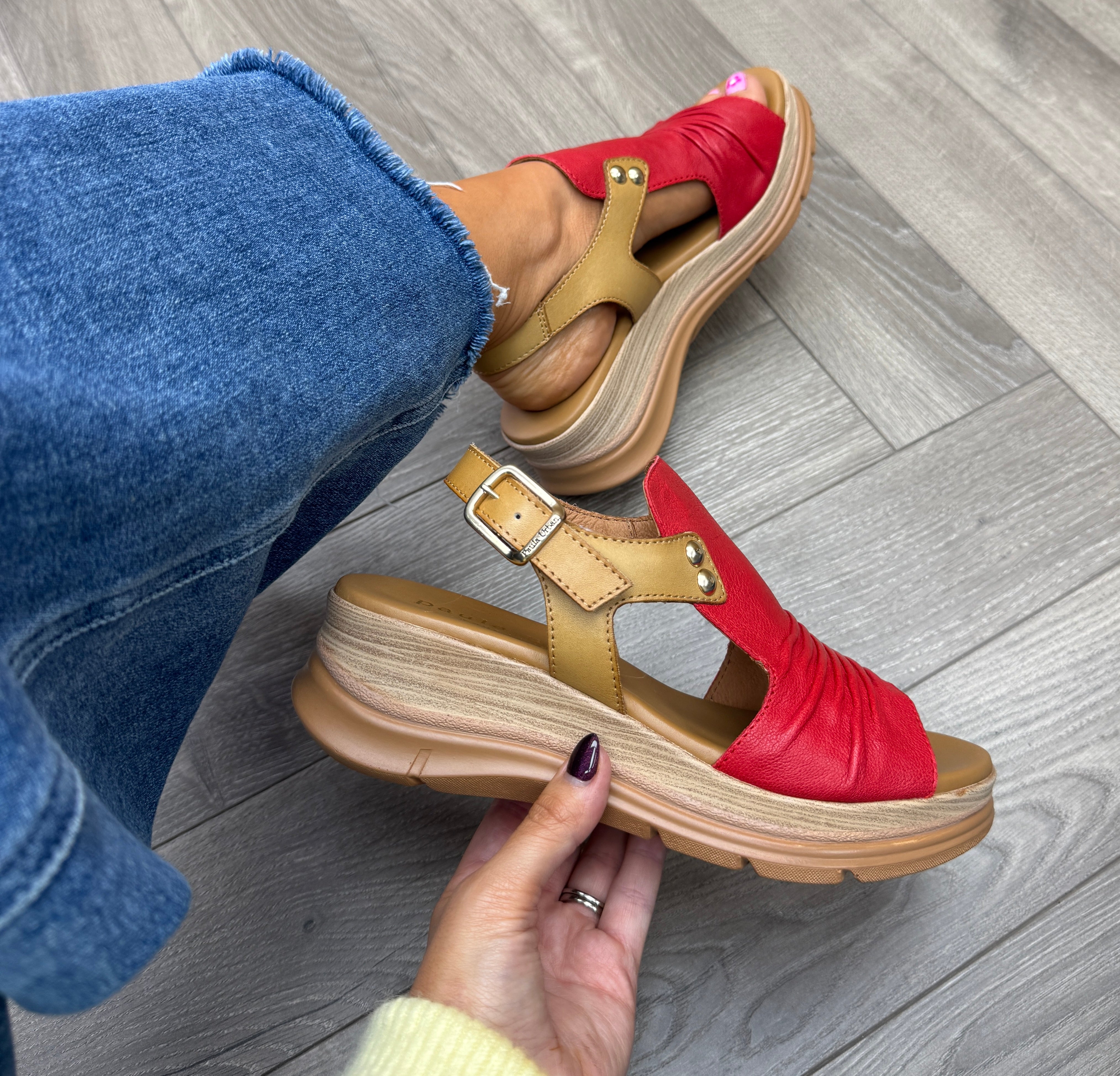 Paula Urban (SS26) ‘24-17’ Sunset Elevated Leather Sandal - Rojo/Bangla Camel (PU13)