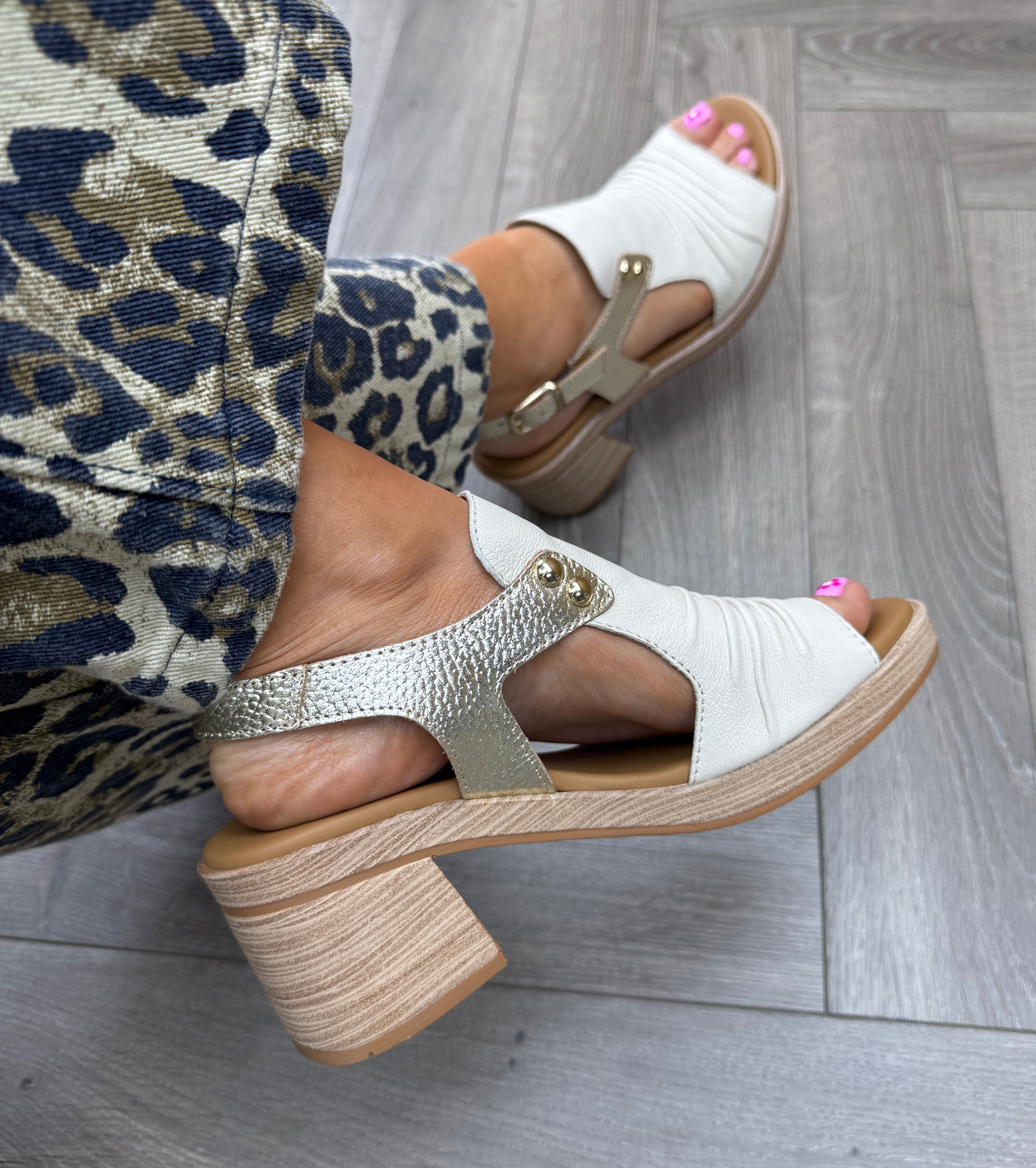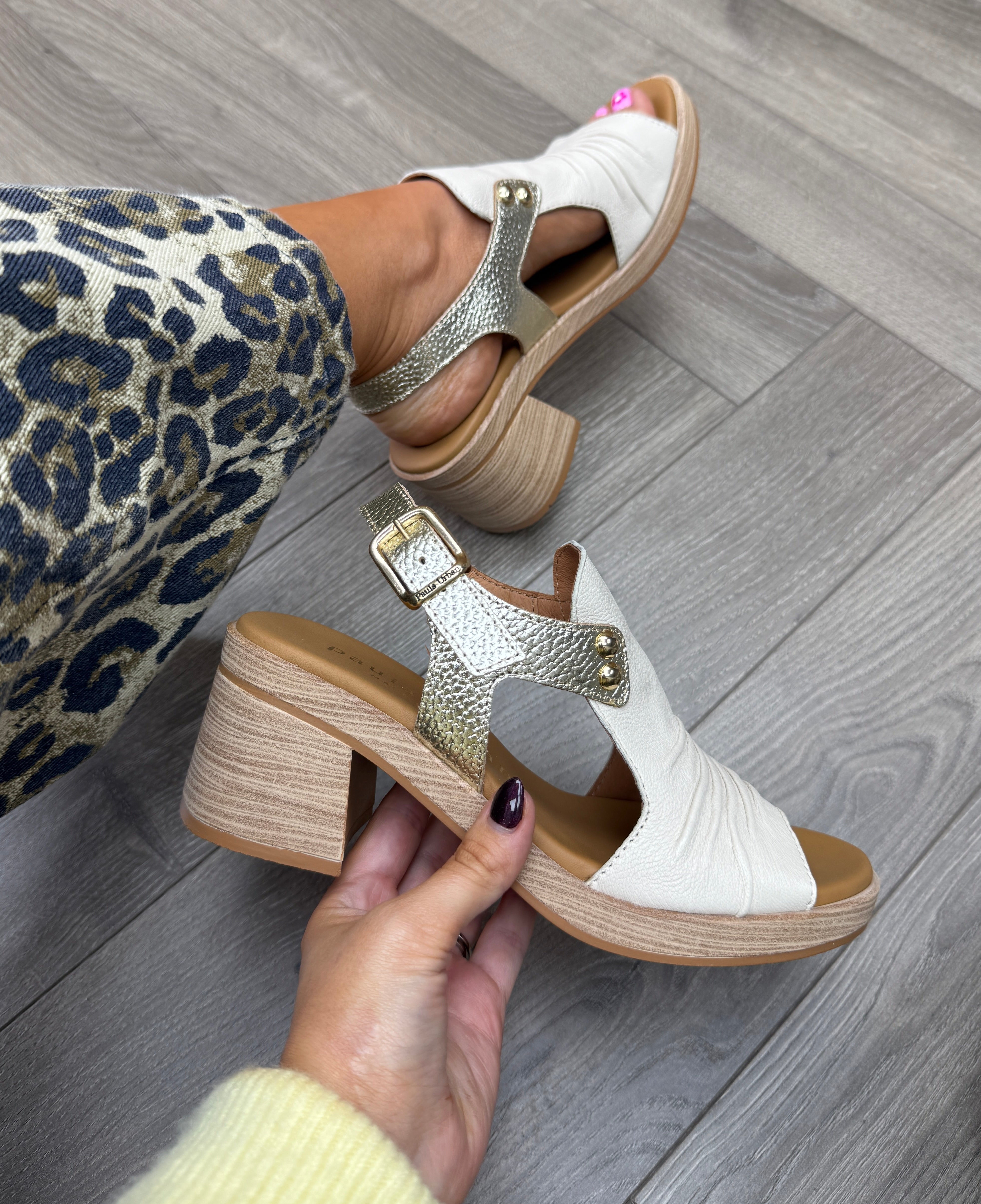 Paula Urban (SS26) ‘34-17’ Sunset Heeled Leather Sandal -Off/Bogota Platino (PU11)