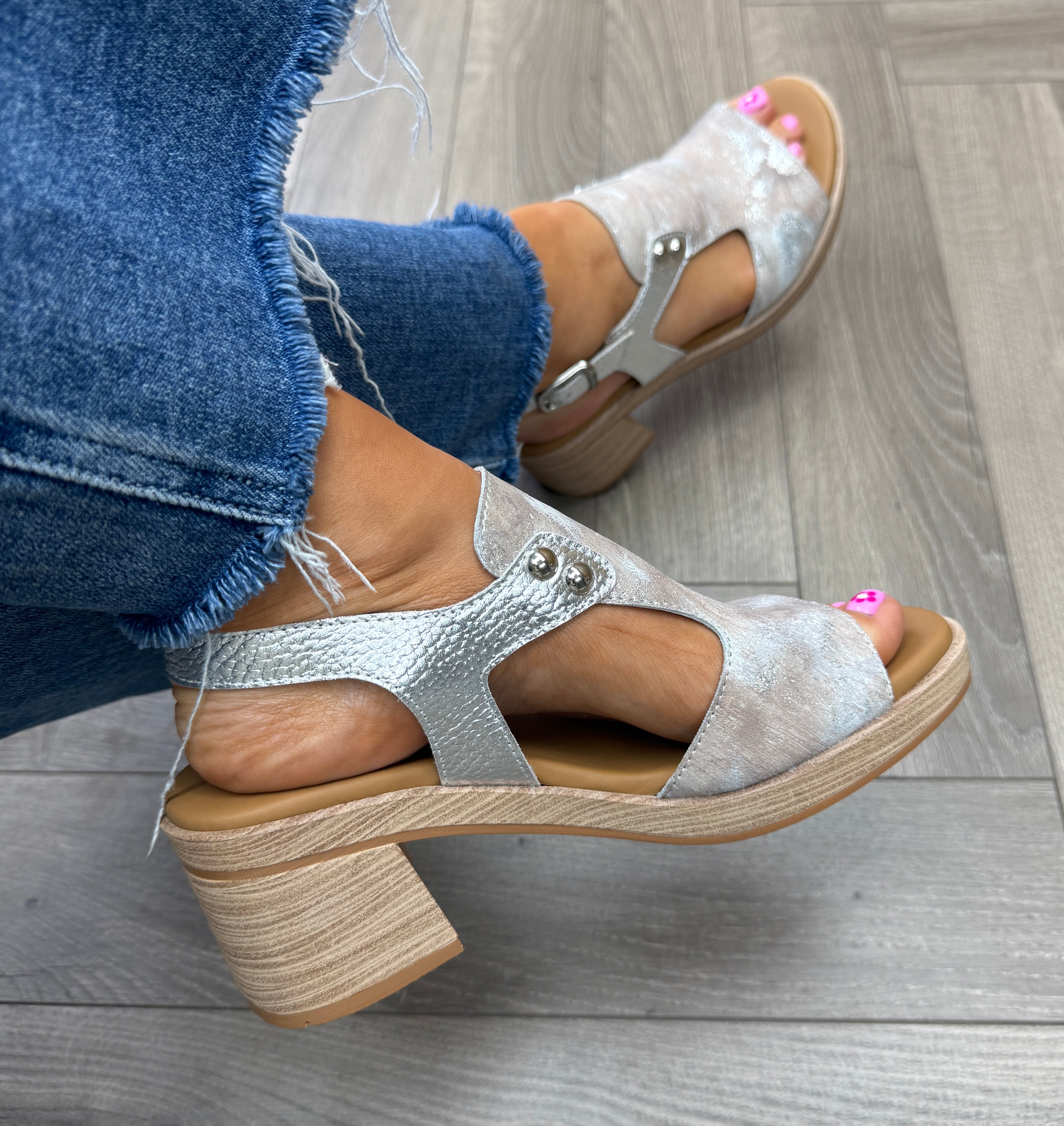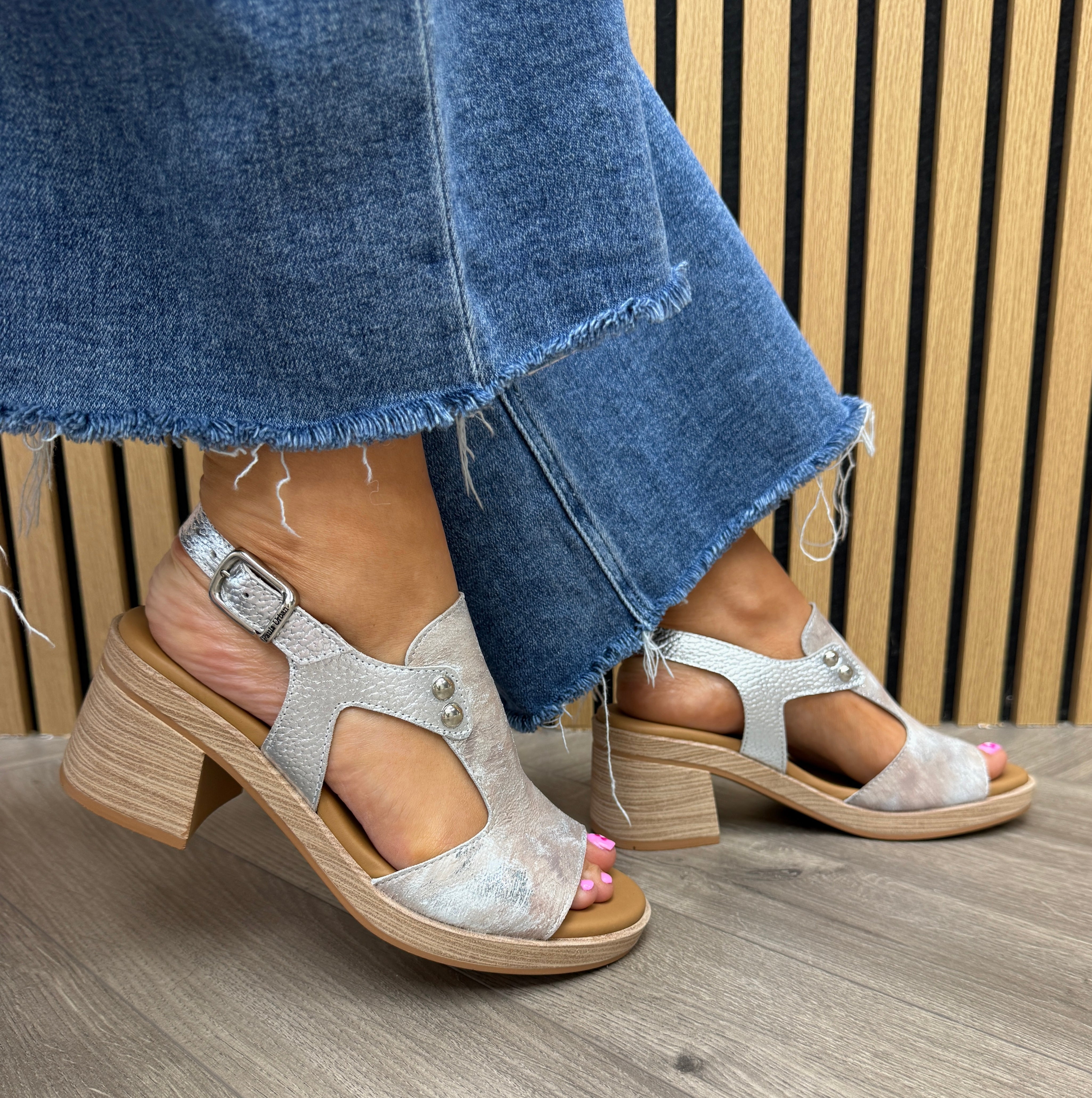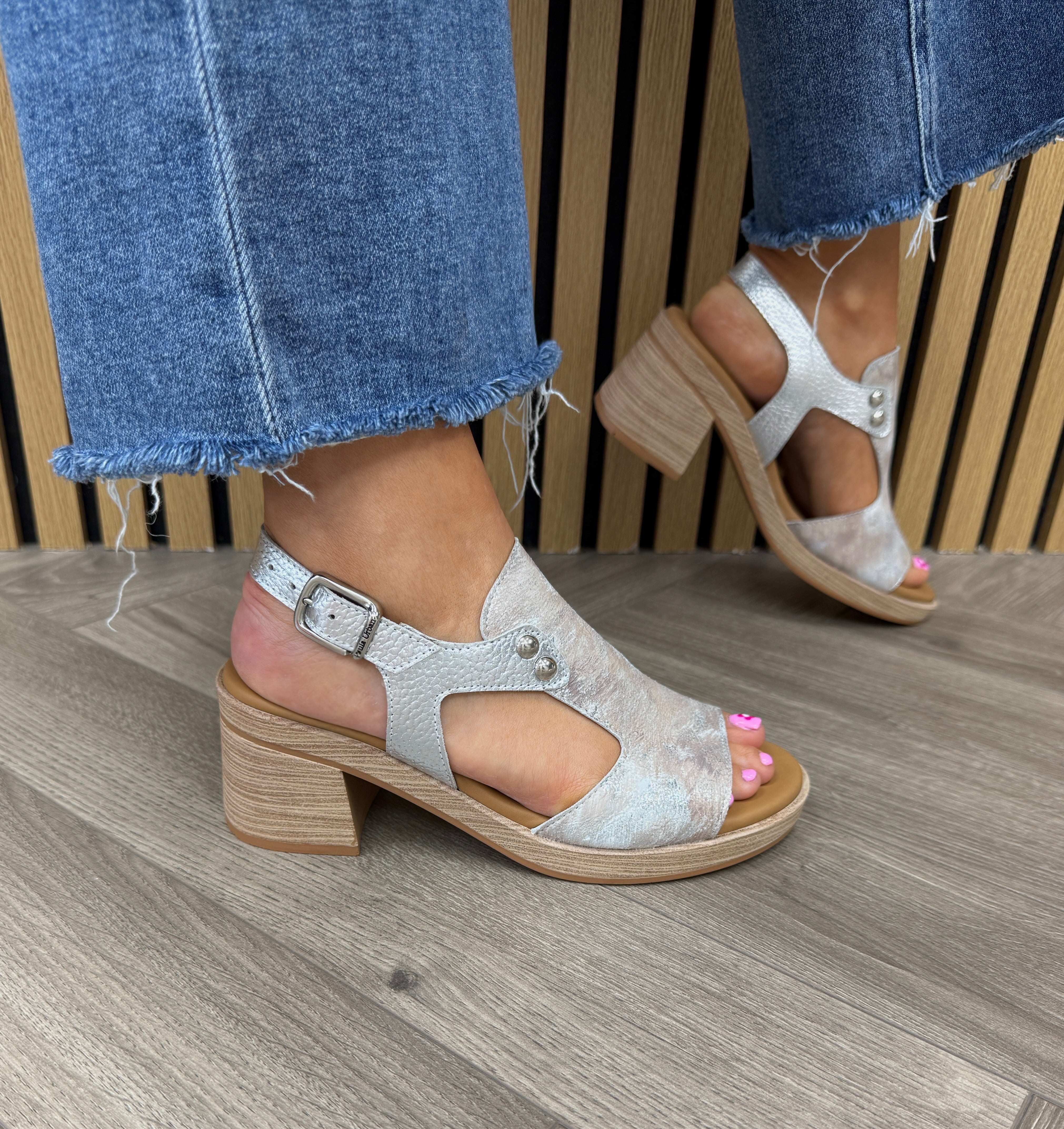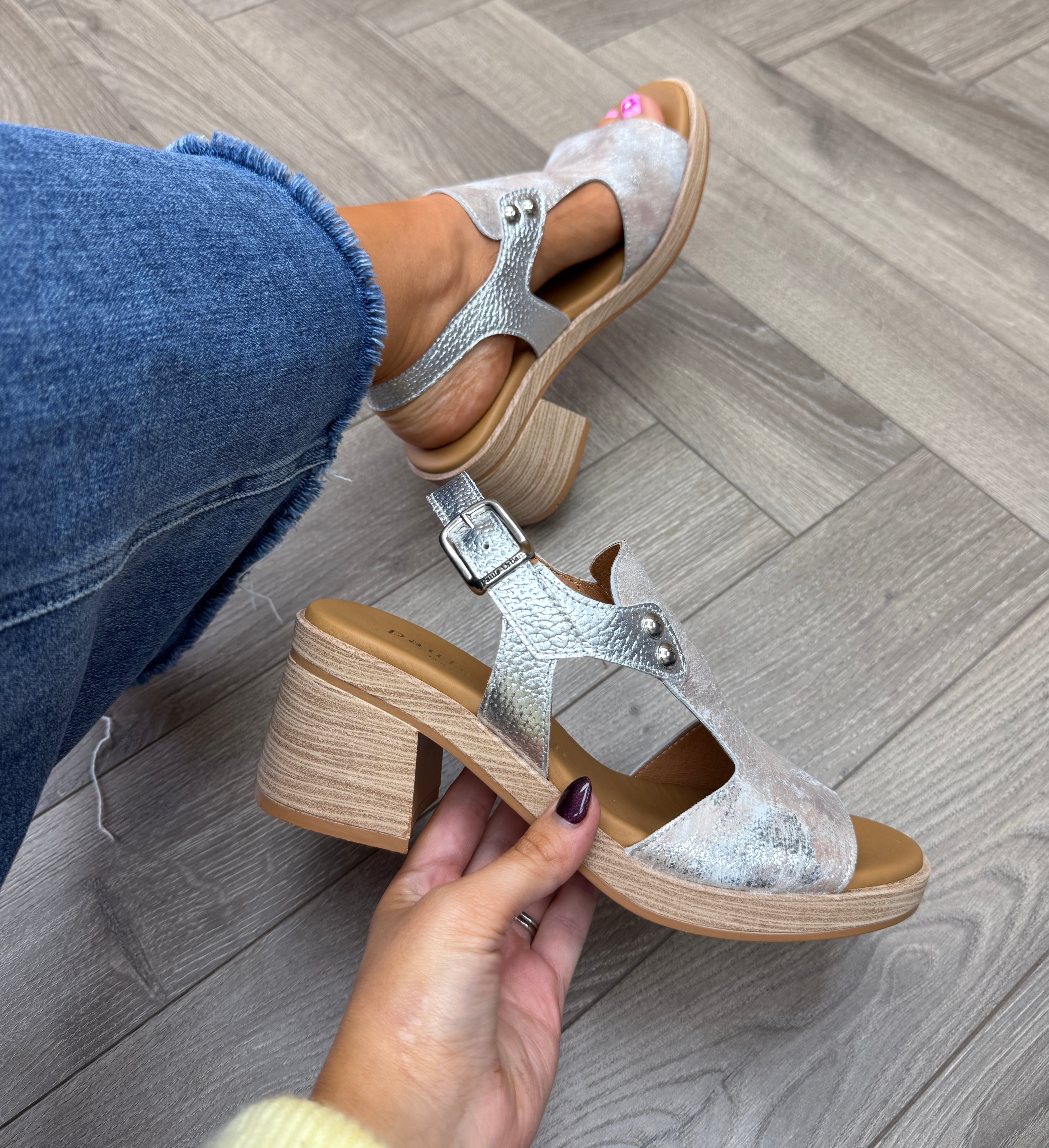 Paula Urban (SS26) ‘34-2008’ Heeled Leather Metallic Sanal - Ibiza Natural-Bogota Plata (PU6)