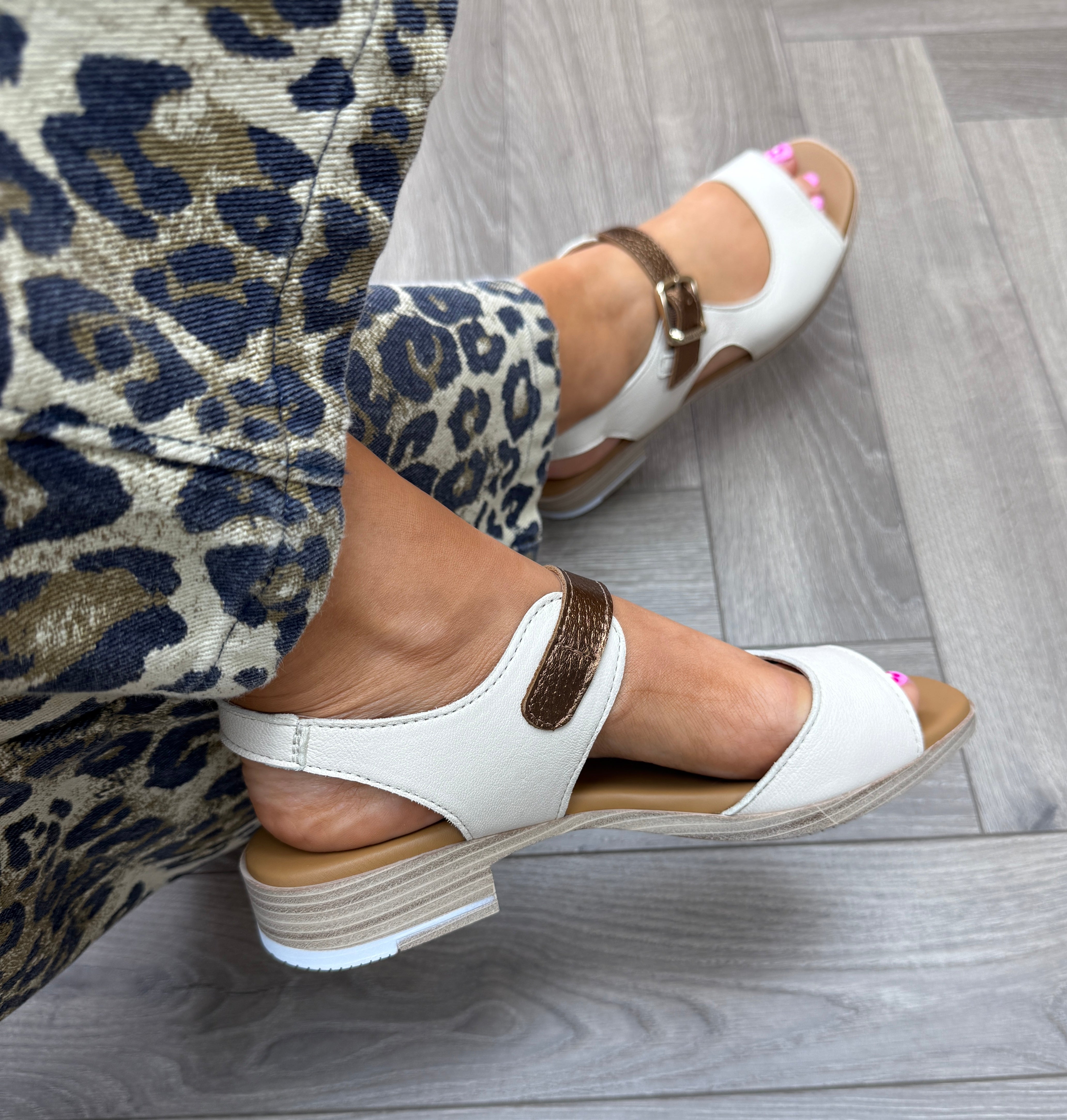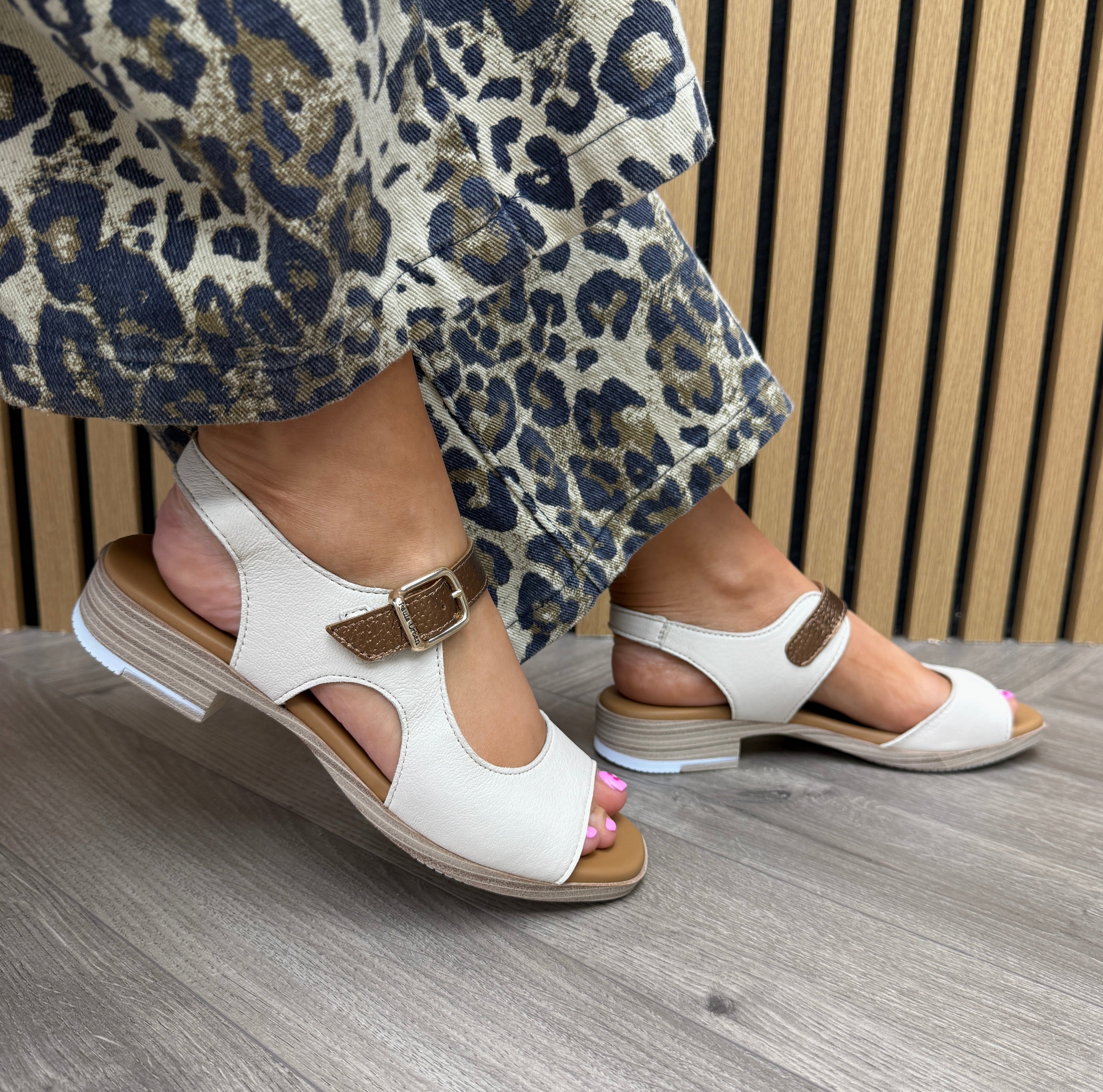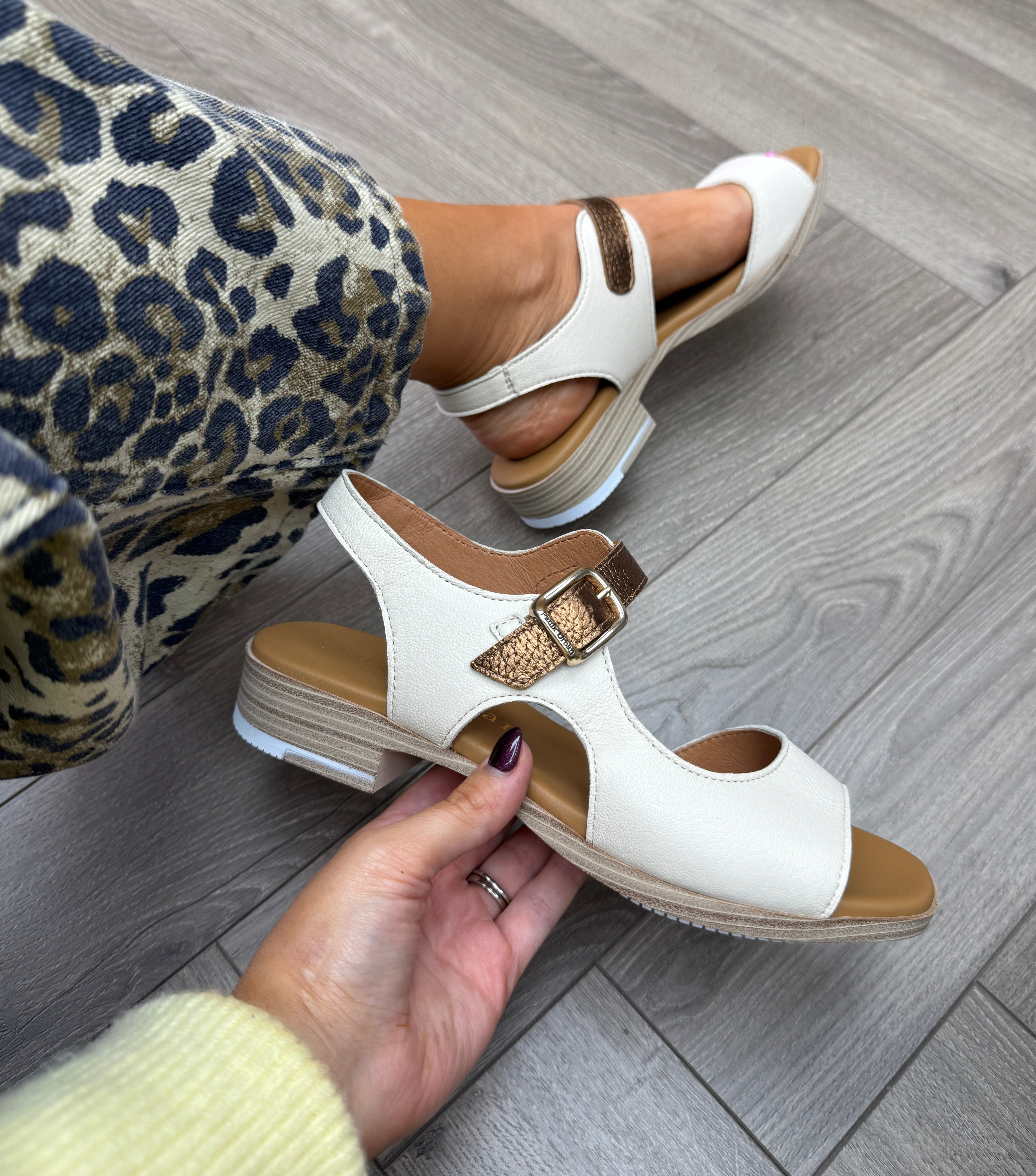 Paula Urban (SS26) ‘9-780’ Sunset Leather Cut-Out Sandal With Bronze Strap - Off-Feroe Fumo (PU4)
