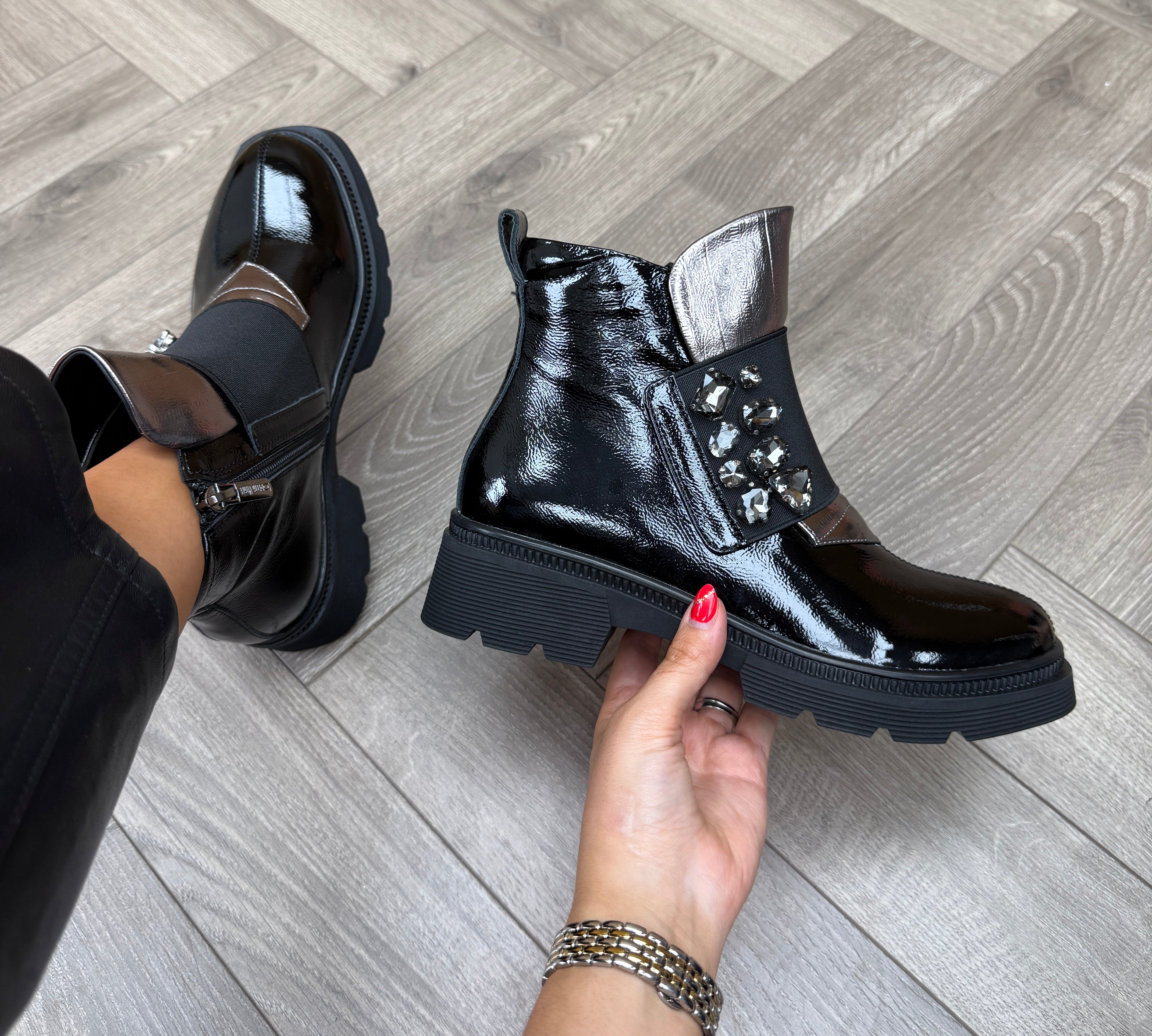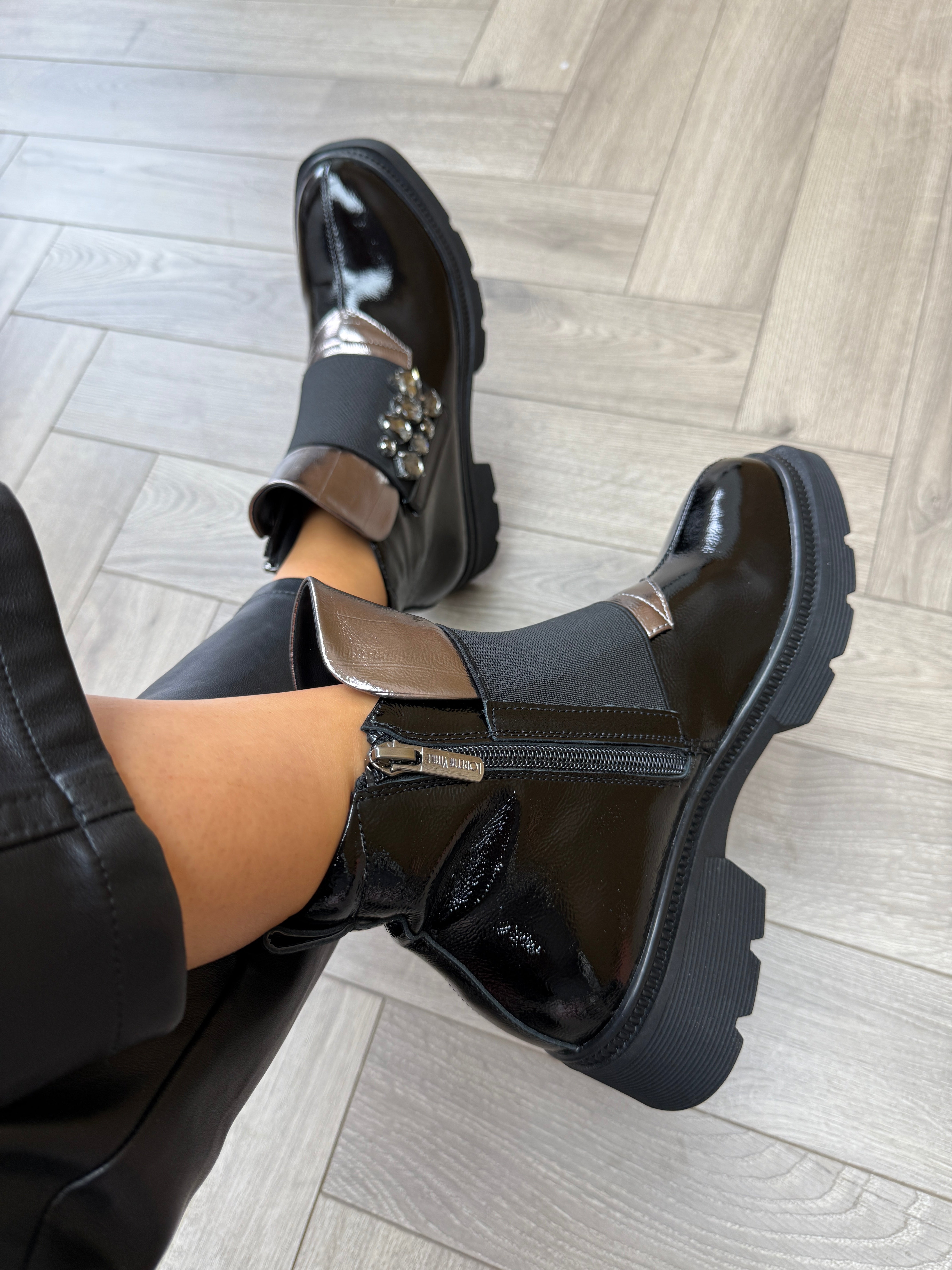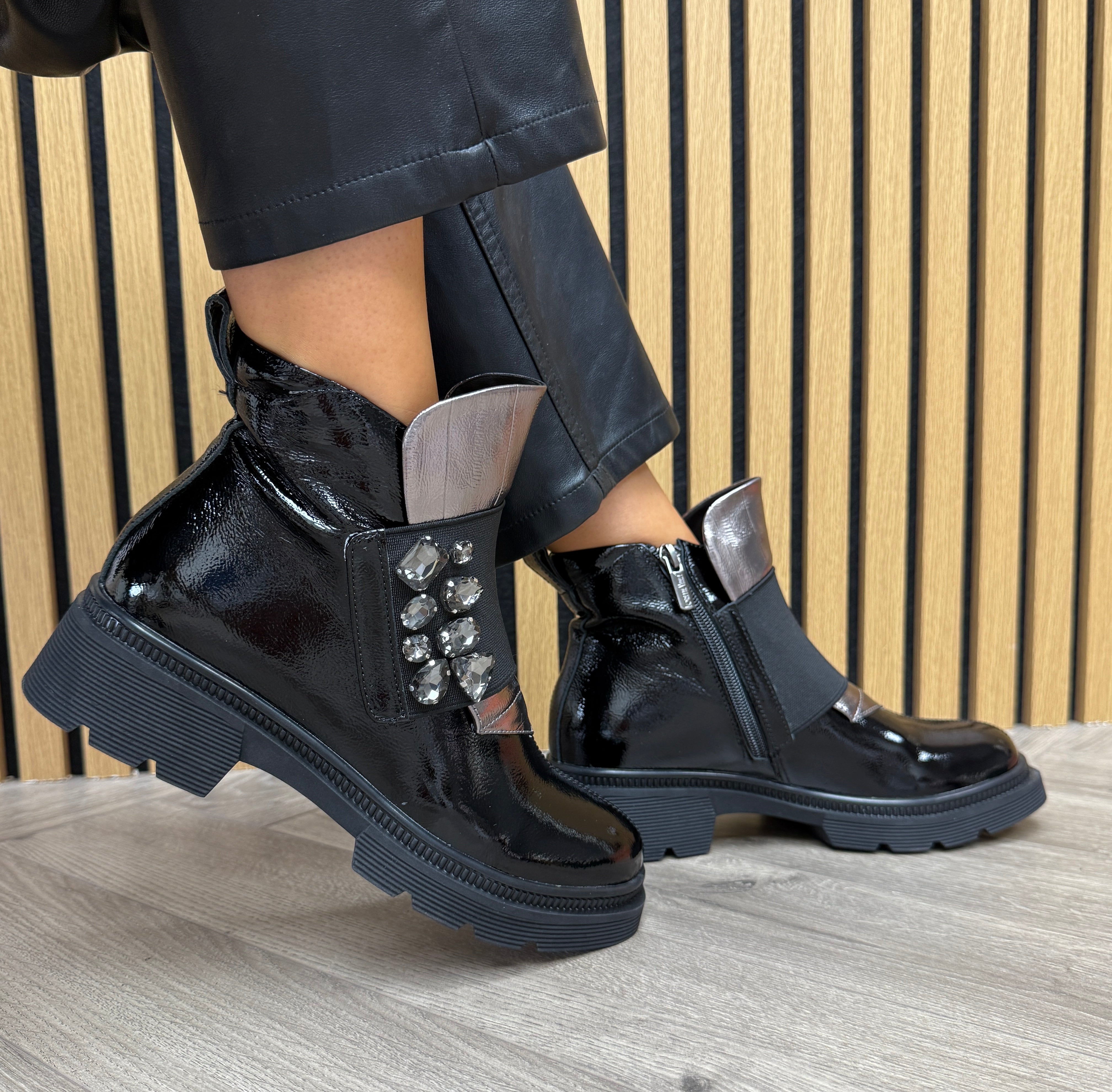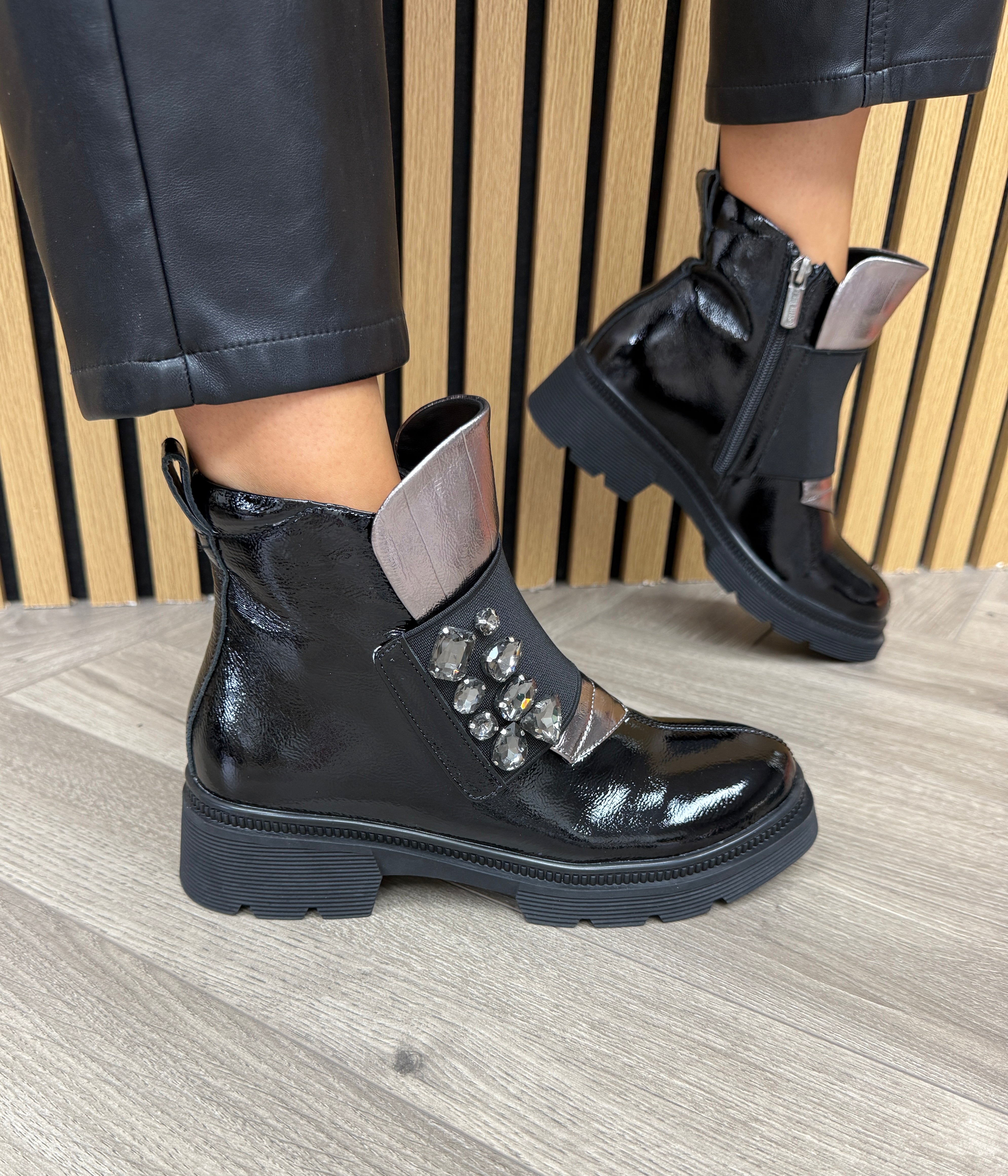Loretta Vitale C3874A Patent Boot With Diamonds - Gun-Black (LV4AW)