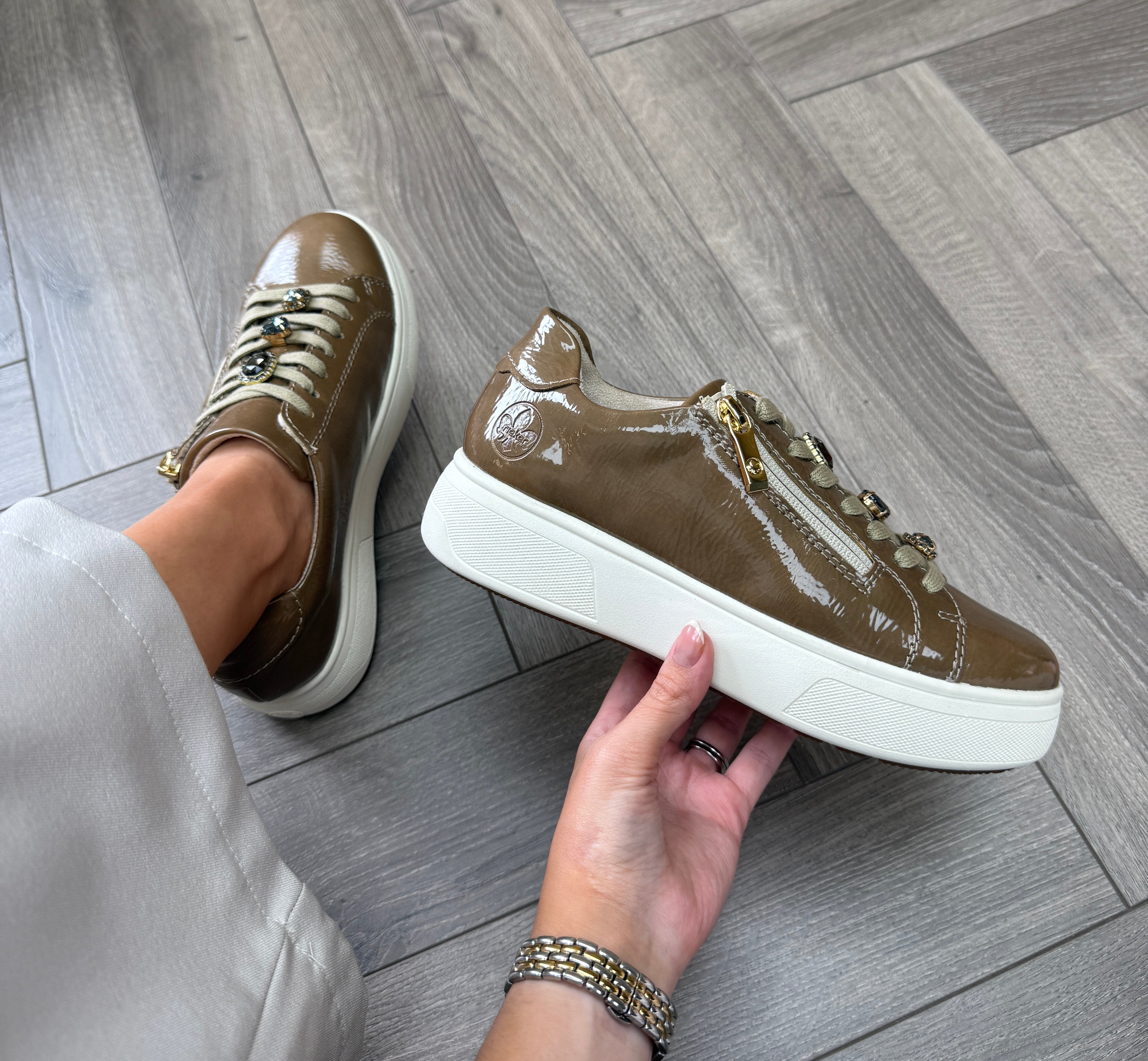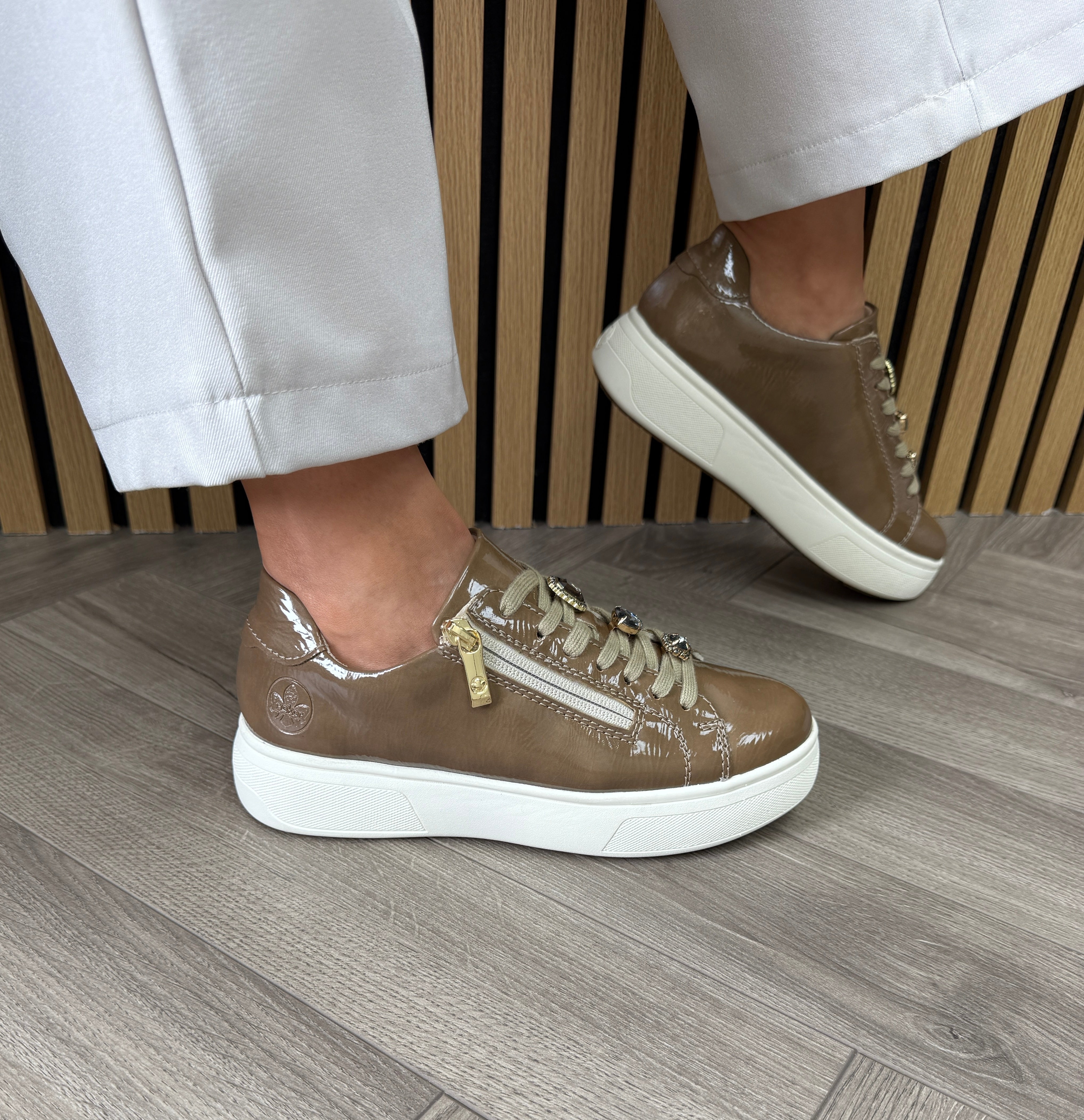 Rieker (AW25) M7702-64 Patented Platform Trainer With Diamantés - Beige (RAW23)