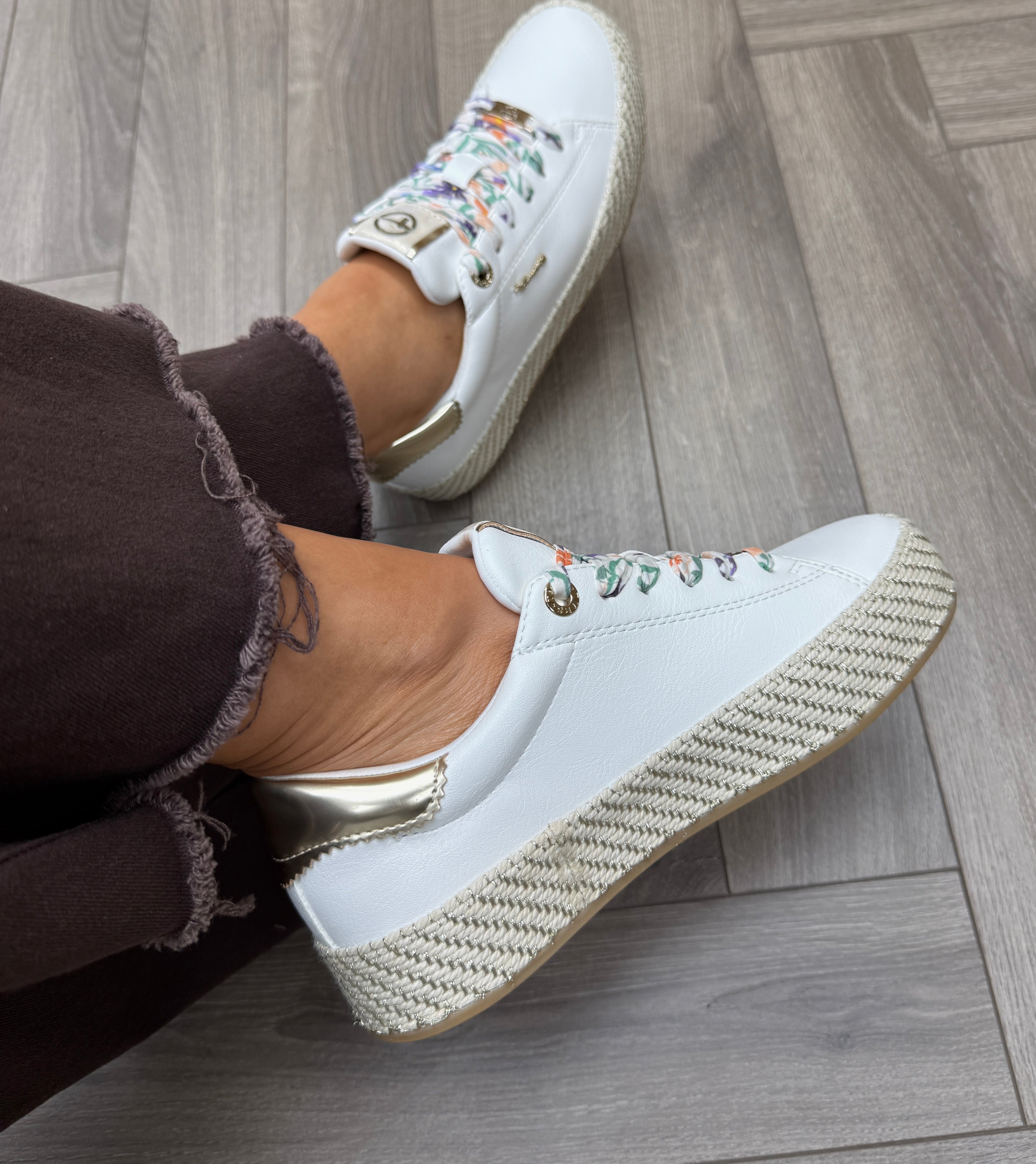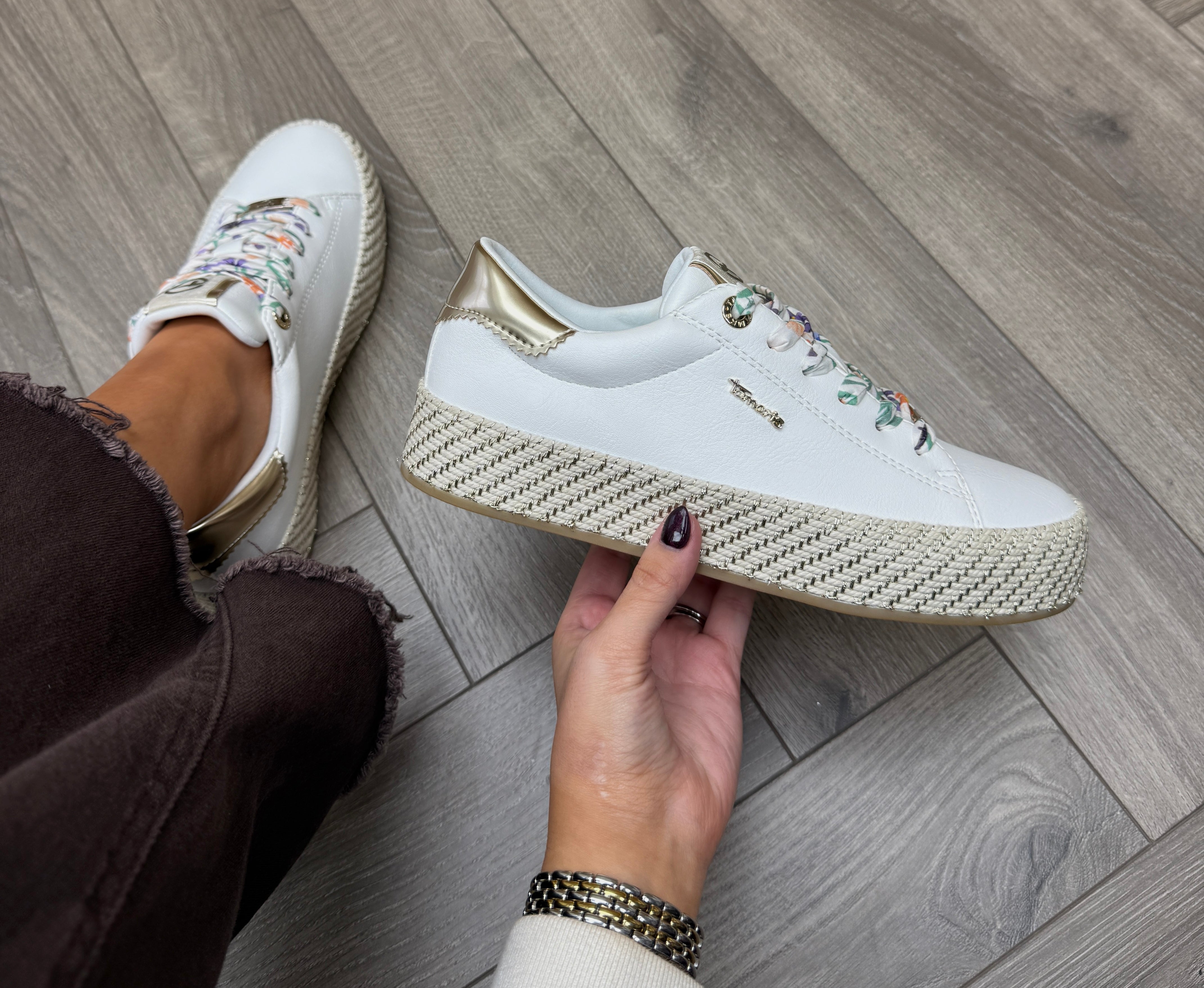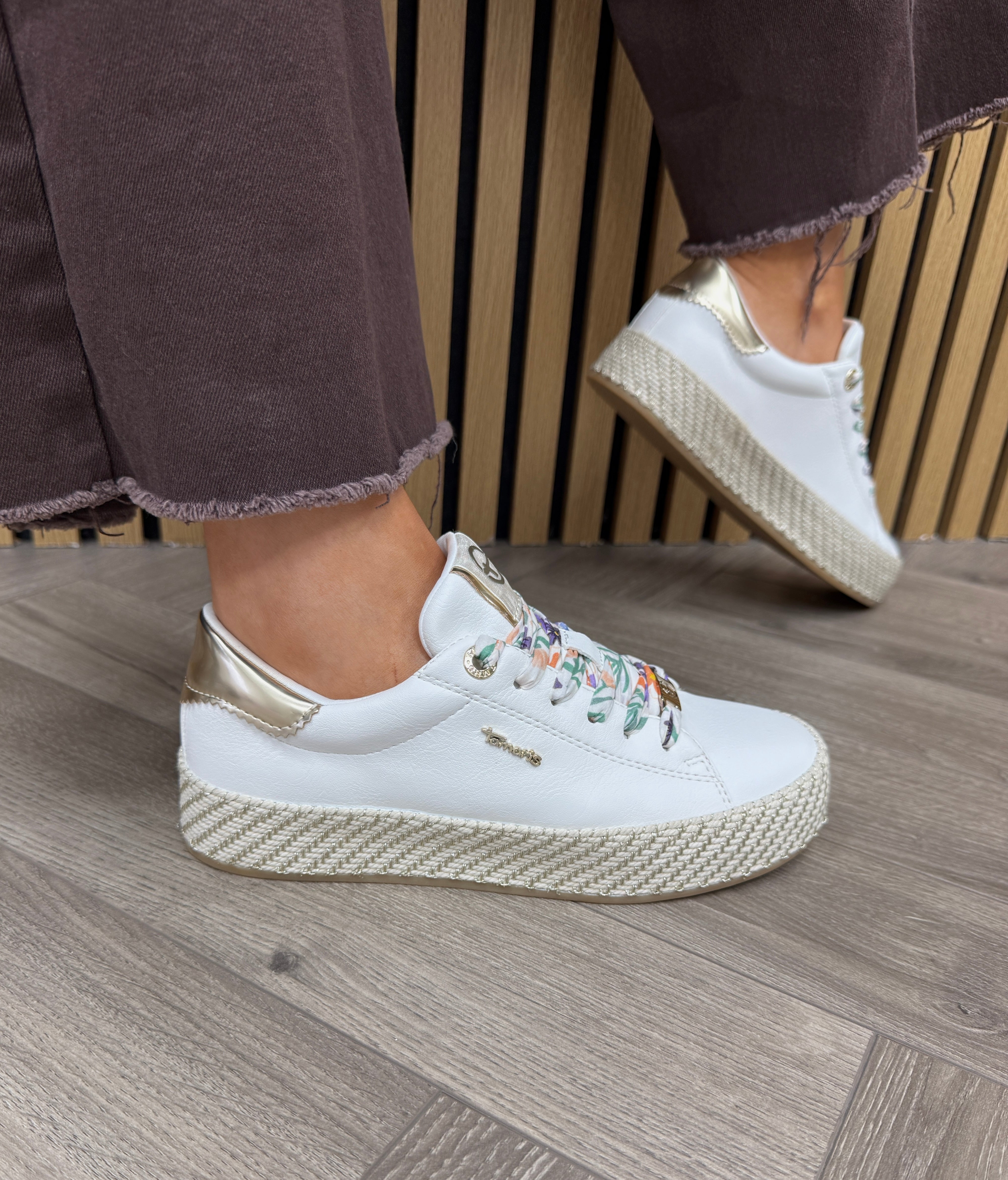 Tamaris (SS26) 1-23713-42 Woven Sole Trainer With Flower Lace - White (TA17)